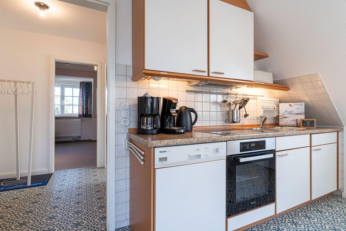 Willkommen in unserer liebevoll eingerichteten Ferienwohnung für 4 Personen auf zwei Etagen im oberen Teil des Hauses. Auf 68 Quadratmetern erwartet Sie Behaglichkeit und Komfort in jedem Raum. Das Schlafzimmer bietet ein gemütliches Doppelbett (2 x 90 cm x 200 cm) mit Lattenrost, während der Wohnbereich mit einer bequemen Sitzecke, einem Flachbildfernseher, einem Radio und einem Telefon ausgestattet ist. In der voll ausgestatteten Küche mit Geschirr, Kaffeemaschine, Toaster, Geschirrspüler, Kühlschrank mit Gefrierfach und Induktionsherd mit Backofen können Sie köstliche Mahlzeiten zubereiten und diese am Esstisch für vier Personen genießen. Das moderne Badezimmer verfügt über eine Dusche und ein WC. Der Balkon mit Gartenmöbeln lädt zum Entspannen an der frischen Luft ein. Im schönen Schlafzimmer im Dachgeschoss erwarten Sie zwei weitere Einzelbetten (90 cm x 200 cm) und ein herrlicher Blick über den Ordinger Deich. Eine Waschmaschine und ein Trockner im Keller können gegen eine Gebühr genutzt werden. Bettwäsche und Handtücher sind inklusive, ebenso ein Kinderhochstuhl und ein Kinderbett bei Bedarf. Außerdem steht Ihnen ein Abstellraum und ein Parkplatz zur Verfügung. Jetzt gibt es auch ein abschließbares Gartenhaus für Ihre wertvollen Fahrräder, z.B. E-Bikes. Bitte beachten Sie, dass aus hygienischen Gründen Haustiere jeglicher Art und das Rauchen in der Wohnung nicht gestattet sind.