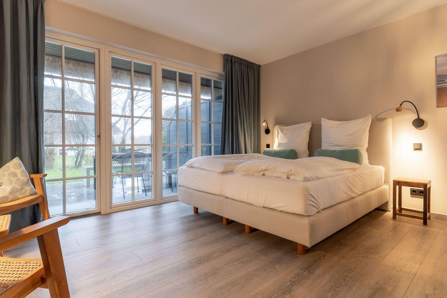 Das wunderschöne, lichtdurchflutete Appartement "Beach Lodge 1" in dem 2022 komplett renovierten "Reethaus Beach Lodge" verfügt über ca. 30 m² Wohnfläche und einer gemütlichen Terrasse.