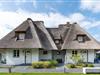 Der Blick in die gepflegte Grünanlage und auf das reetgedeckte Haus sind einfach herrlich und locken nach draußen.