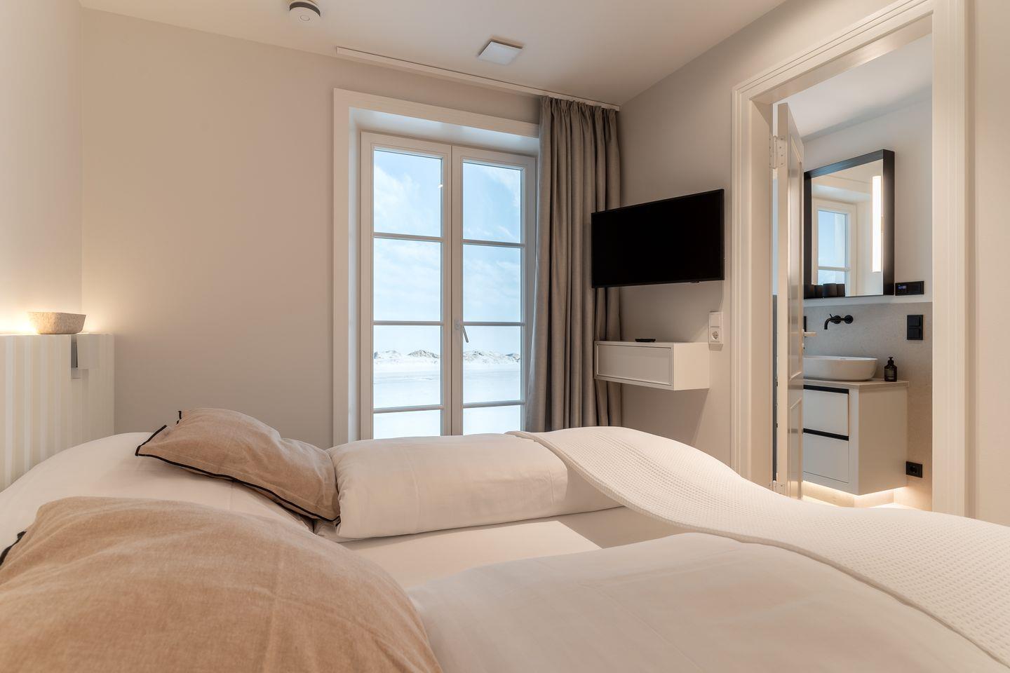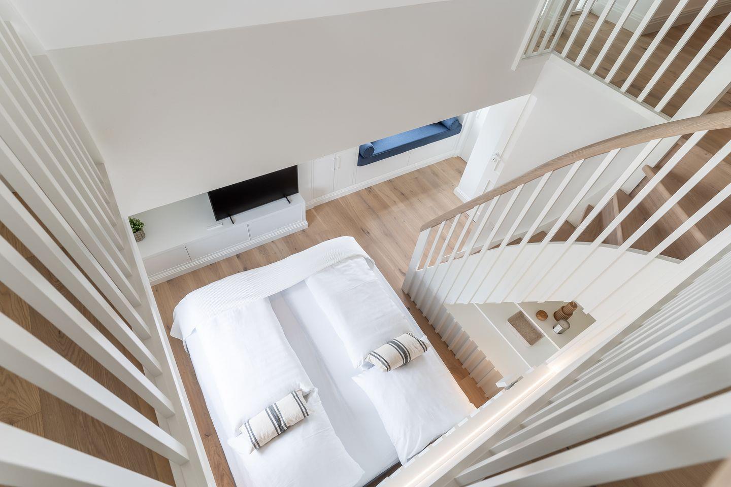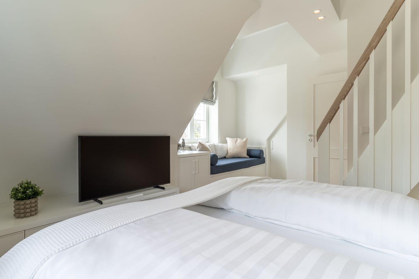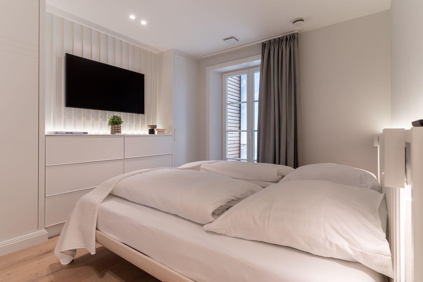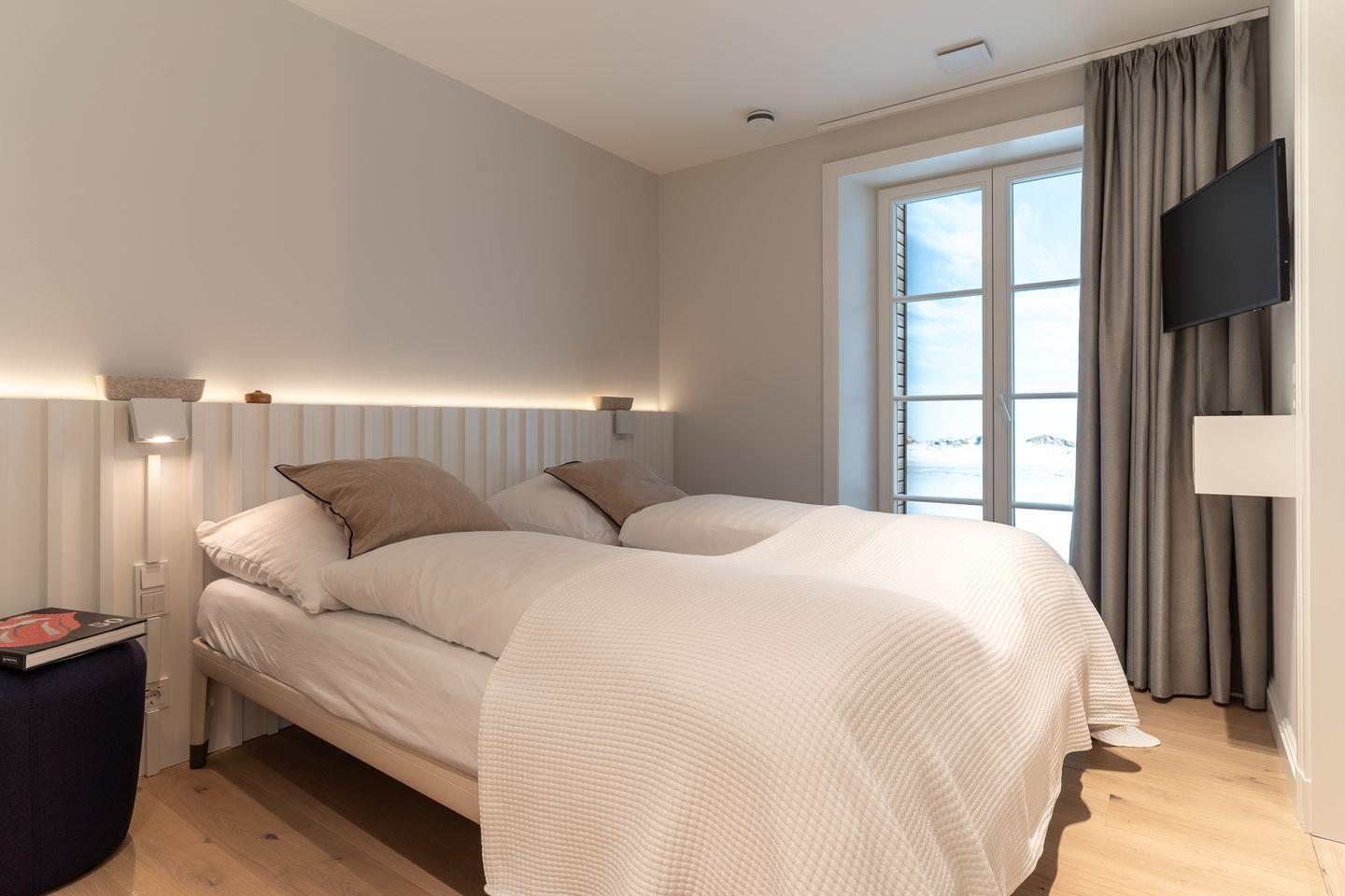 Auf dieser Ebene befinden sich zwei weitere Schlafzimmer, die mit je einem Doppelbett (190 x 200 cm), Kleiderschrank und TV ausgestattet sind.