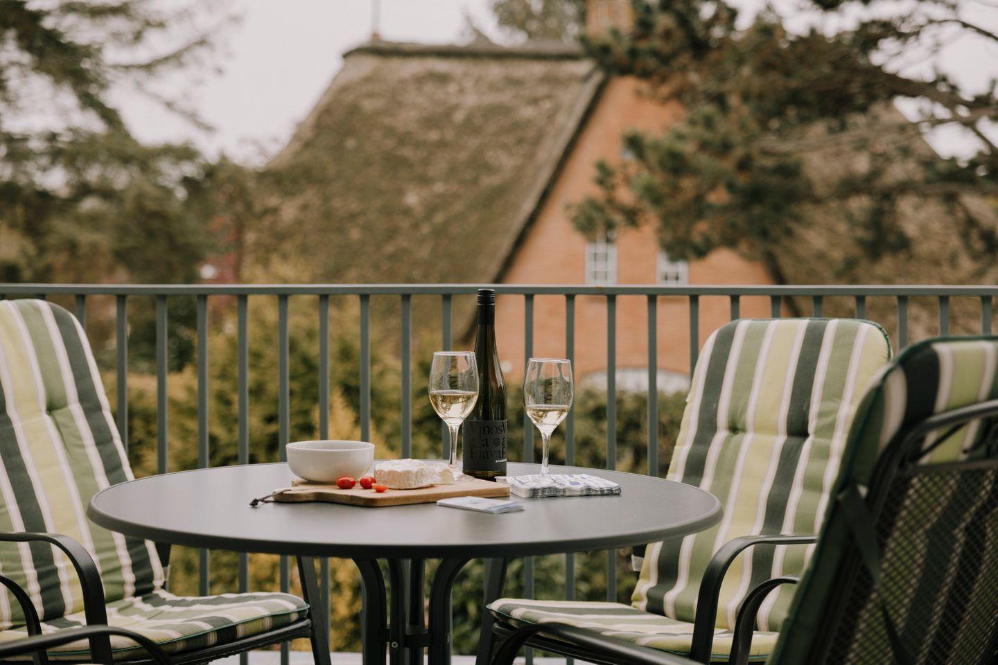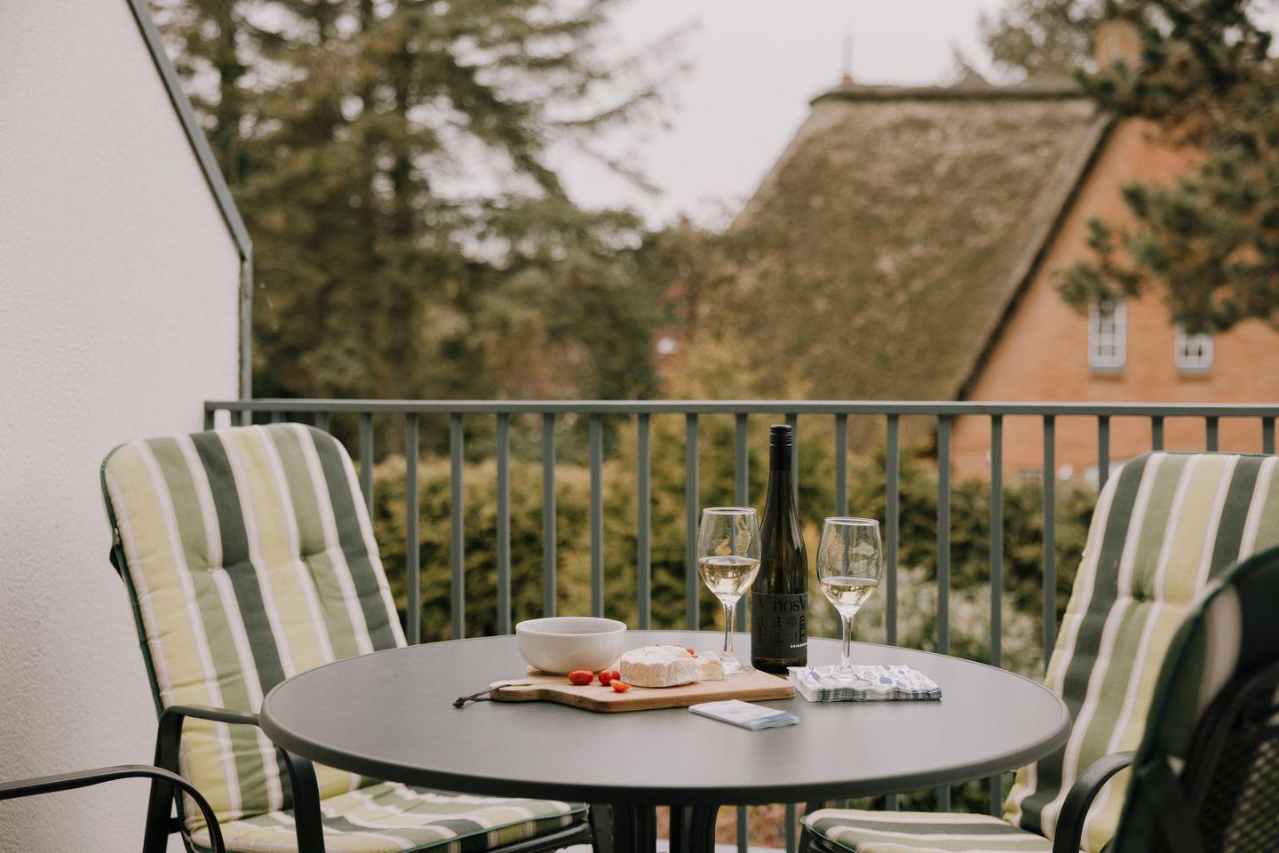 Südwestbalkon mit Sitzmöbeln