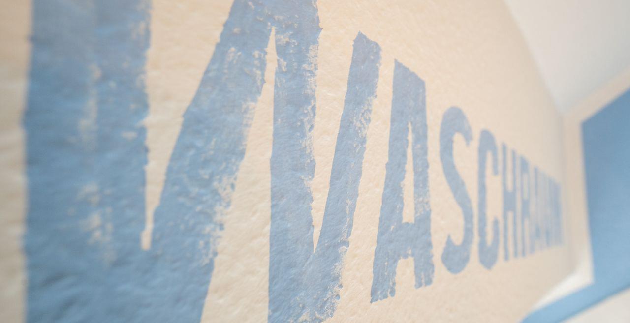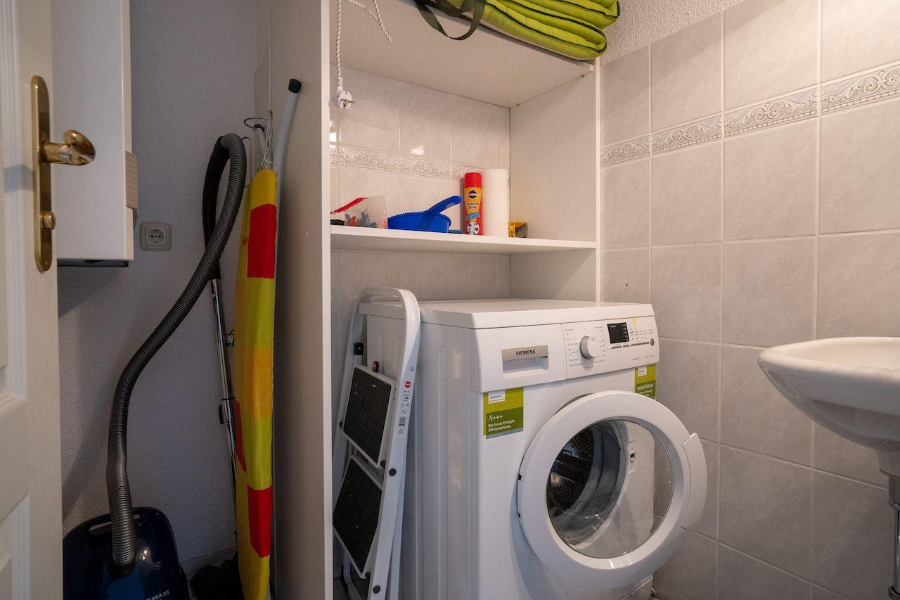Abstellraum mit Waschmaschine, Bügelbrett, Bügeleisen, Staubsauger