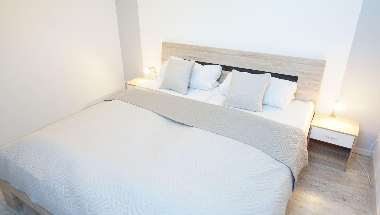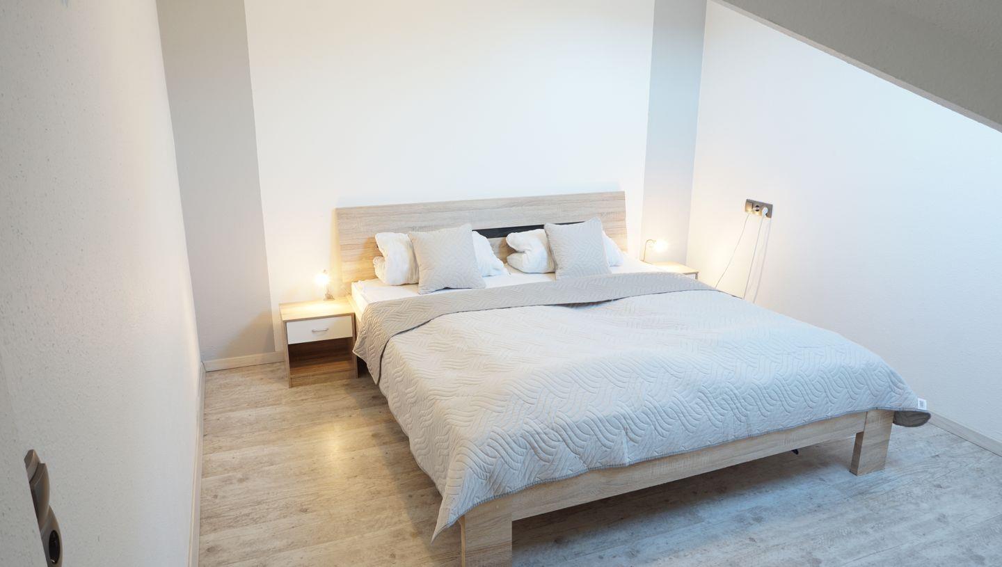 Schlafzimmer mit Doppelbett (180 x 200 cm) und Einzelbett (90x 190 cm)