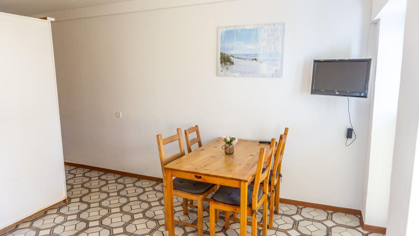 Wohnbereich: Schlafsofa, Essbereich, SAT-TV