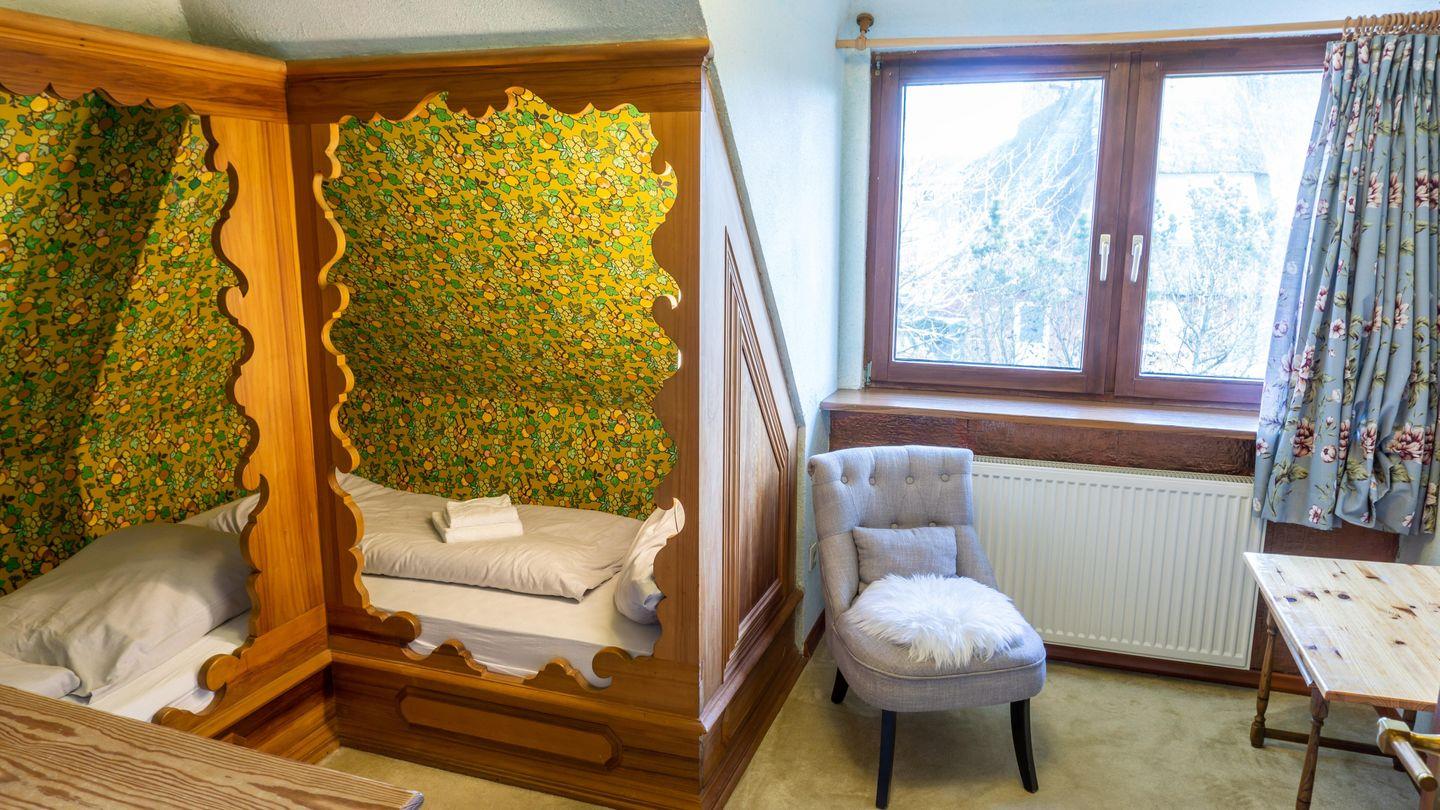 Schlafzimmer mit 2 Alkovenbetten (über Eck, 90 x 200 cm), Kommode