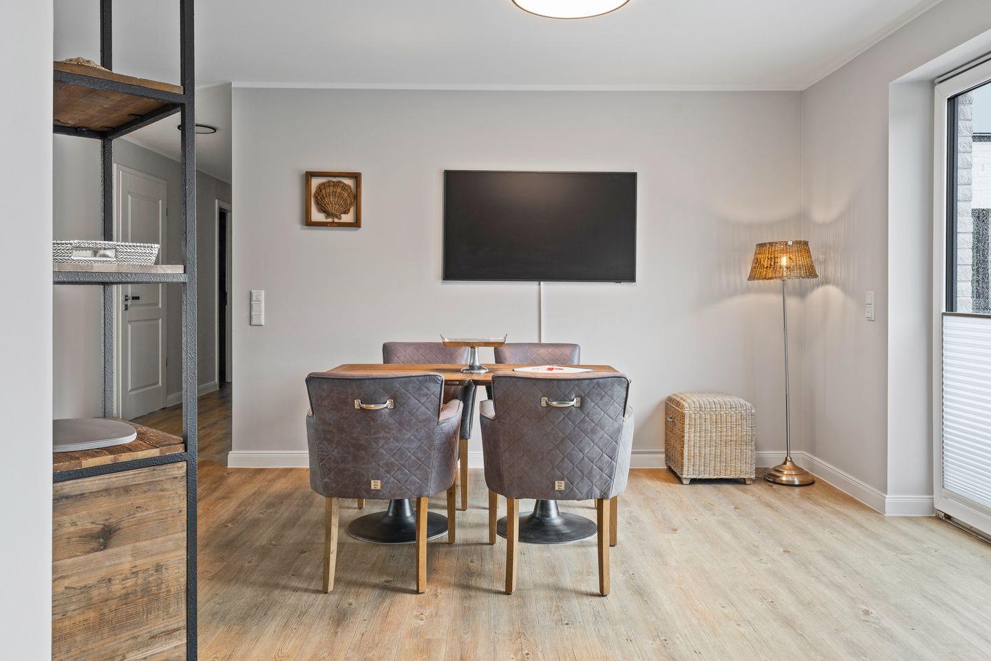Ein weiteres Highlight dieser Ferienwohnung ist der hübsche Balkon, auf dem Sie entspannte Stunden genießen können. Lassen Sie sich von der frischen Nordseeluft inspirieren, während Sie Ihre Morgenkaffee oder einen Sundowner am Abend auf dem Balkon genießen.