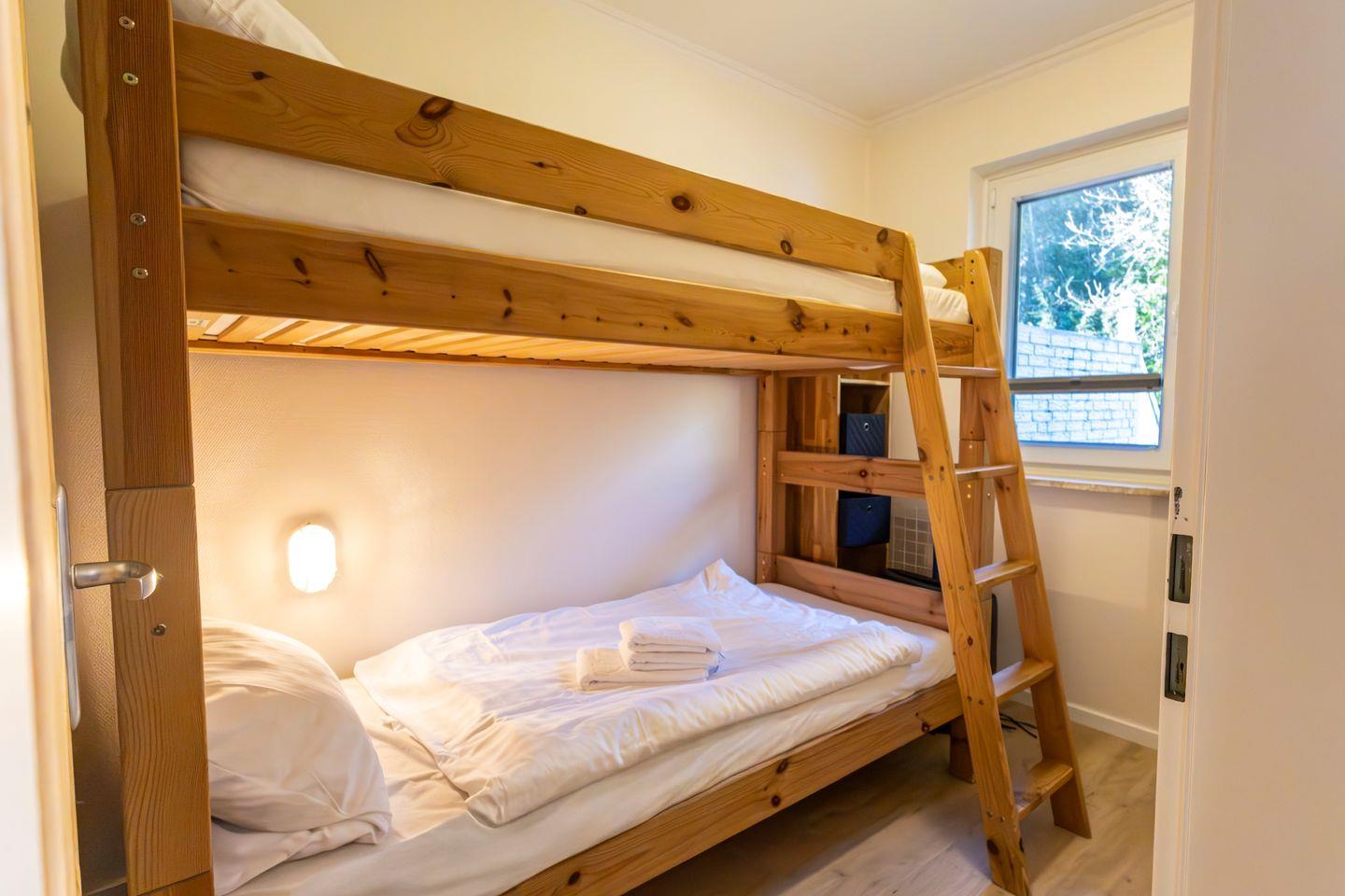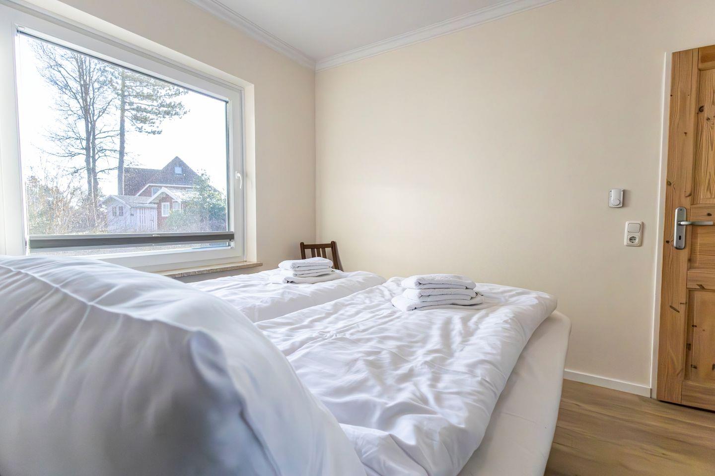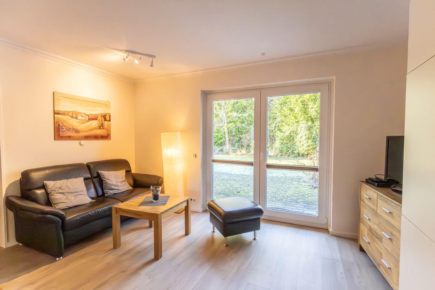 Das modern und funktional eingerichtete Appartement eignet sich aufgrund seiner Aufteilung optimal für bis zu vier Personen. Zur Verfügung steht ein separates Schlafzimmer, das Rückzug und Erholung ermöglicht. Neben dem komfortablen Schlafbereich finden Sie im Wohnzimmer eine zusätzliche Schlafmöglichkeit, ausgestattet mit einem gemütlichen Sofa und ausreichend Sichtschutz an allen Fenstern.