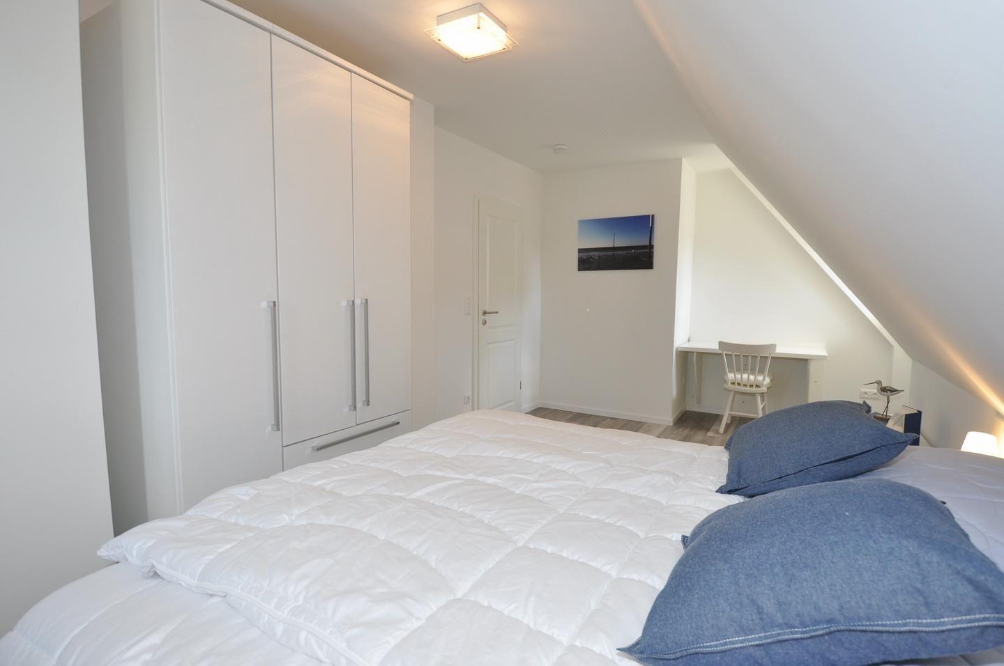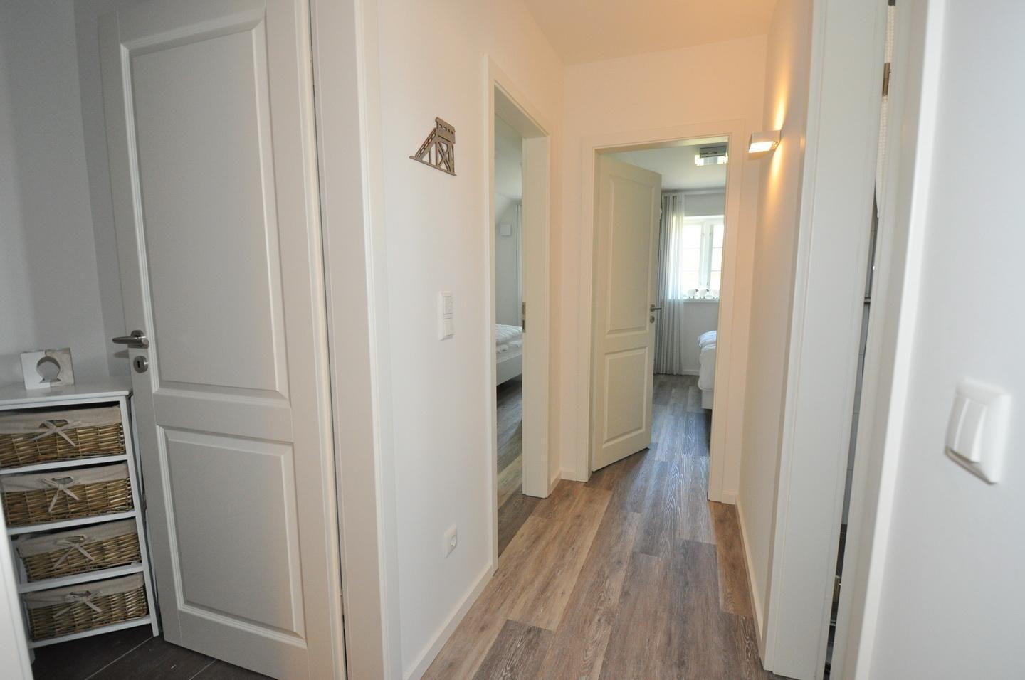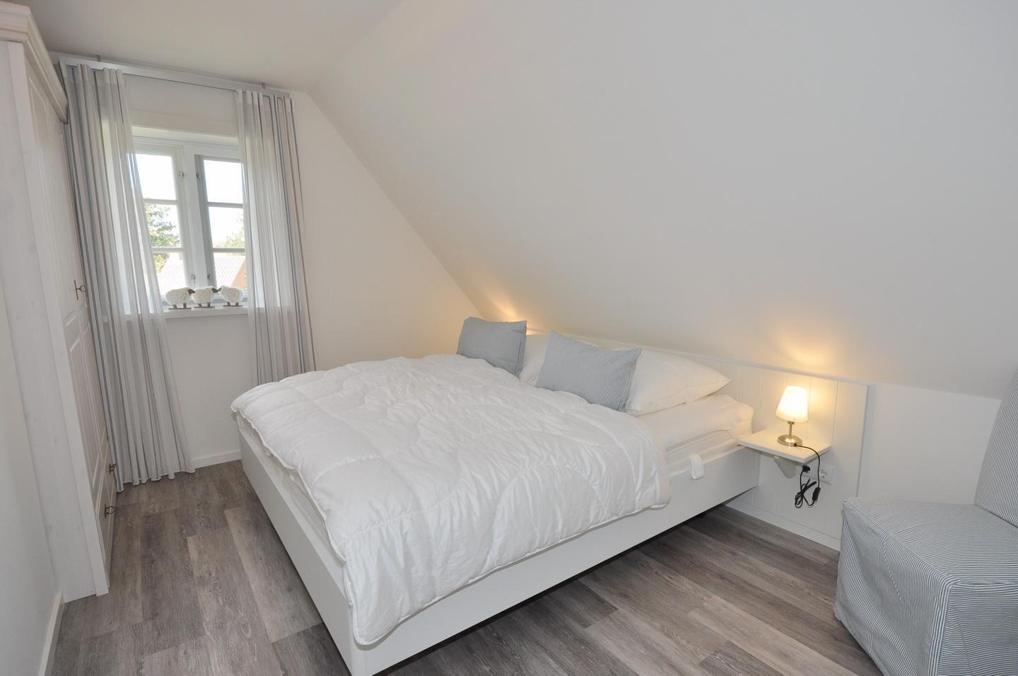 Die Schlafzimmer sind mit Plissees und Insektenschutzgittern ausgestattet. Auf beiden Etagen sorgt eine Fußbodenheizung für ein angenehmes Raumklima.