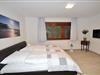Eingangsbereich mit Zugang zur offenen Küche, Wohnraum mit Essbereich und Zugang zur Terrasse (Westausrichtung), ein Schlafzimmer mit Doppelbett (180 x 200 cm - Einzelmatratzen) und Duschwannenbad en Suite, ein Schlafzimmer mit Doppelbett (160 x 200 cm - Einzelmatratzen), ein separates Duschbad, ein Hauswirtschaftsraum