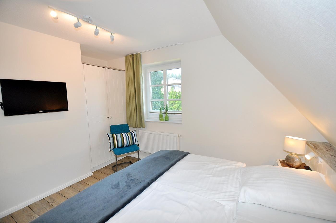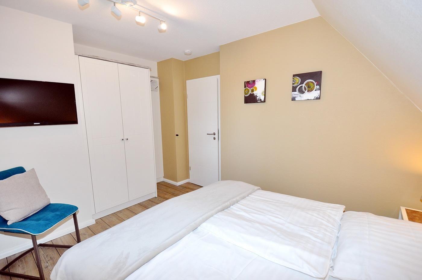 Dachgeschoss: ein Schlafzimmer mit 2 Einzelbetten (je 90 x 200 cm) und TV
