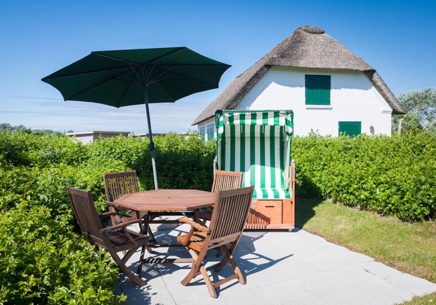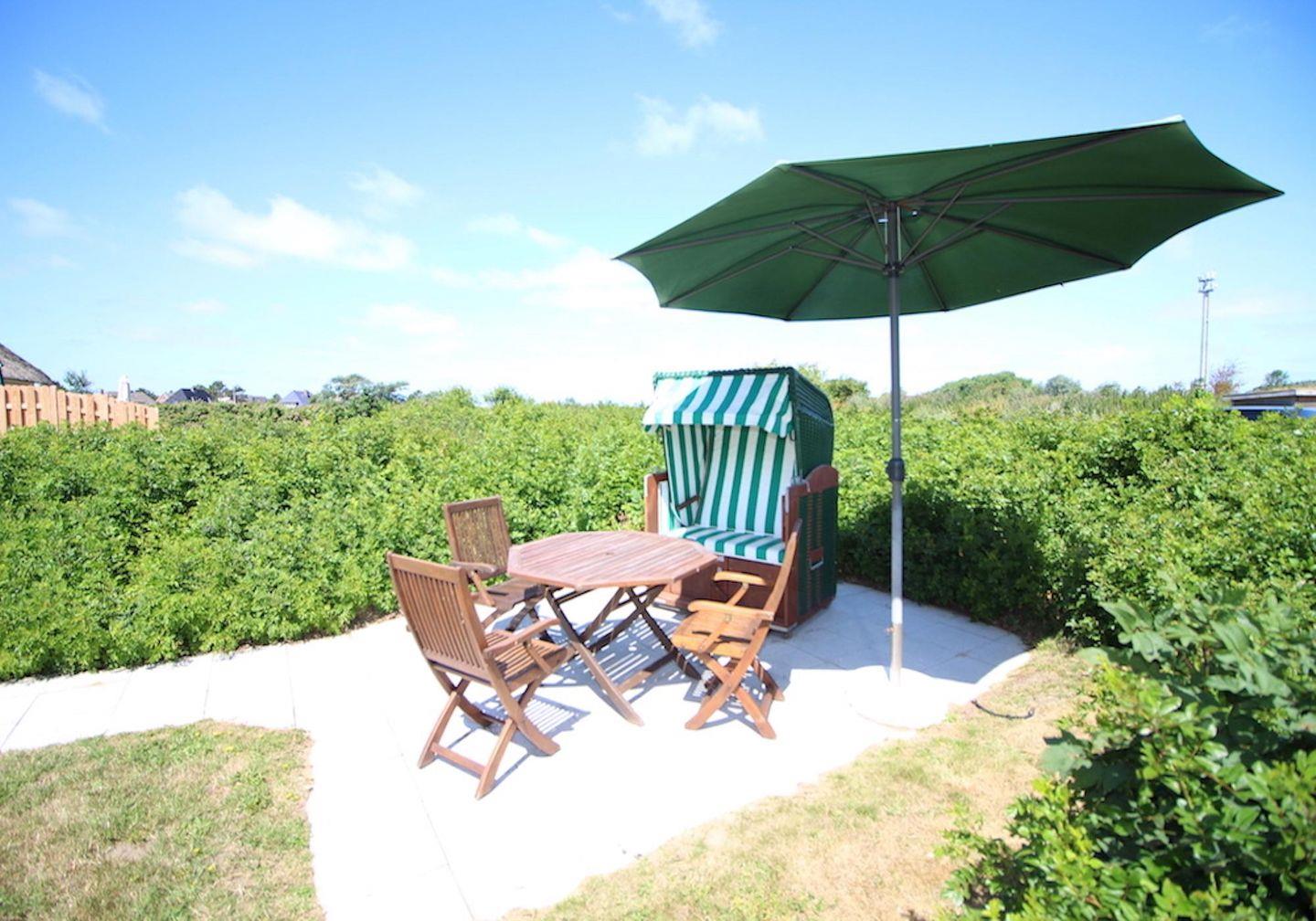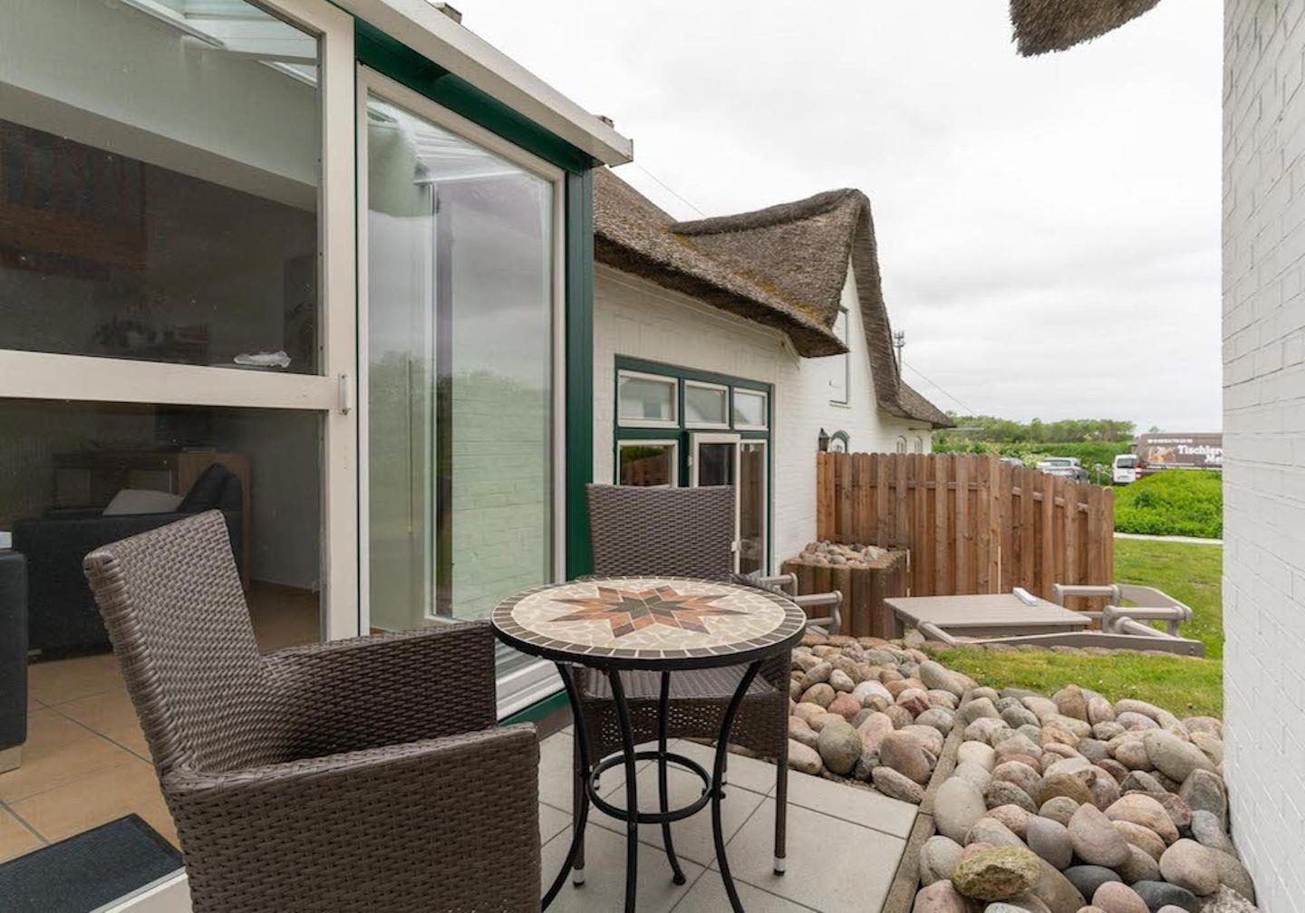 Das wunderschöne Appartement unter Reet wurde mit modernen Möbeln ausgestattet und bietet großzügigen Platz für 3 Personen. Das Grundstück mit Stellplatz wurde mit hübschen Pflanzen angelegt. Auf der Terrasse mit Gartenmöbeln, umgeben von Schafwiesen und Pferdekoppeln, kann man herrlich entspannen und die Ruhe genießen. Zusätzlich hat Ihre Wohnung noch eine weitere sonnige Terrasse im Grünem mit Standkorb und Gartenmöbeln. Das Appartement befindet sich im Erdgeschoss und erstreckt sich über 2 Etagen. Es verfügt über ca. 60 m² Wohnfläche und teilt sich wie folgt auf: Auf der ersten Etage befindet sich ein großzügiger Wohnraum mit einer offenen Küche und einem gemütlichen Essbereich. Die Küche ist voll ausgestattet. Ein separates Duschbad bietet jeden Komfort. Über eine Holztreppe gelangt man zur Schlafgalerie im Dachgeschoss. Das stilvolle Schlafzimmer verfügt über ein 1,8 x 2,0 m Bett. Eine weitere Person kann auf der Schlafcouch 1,4 x 2,0 m im Wohnzimmer entspannen. Kostenlose W-LAN Nutzung.