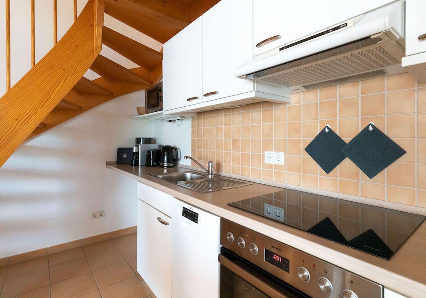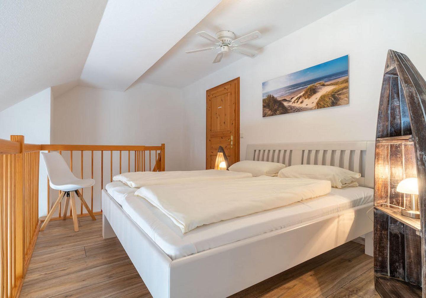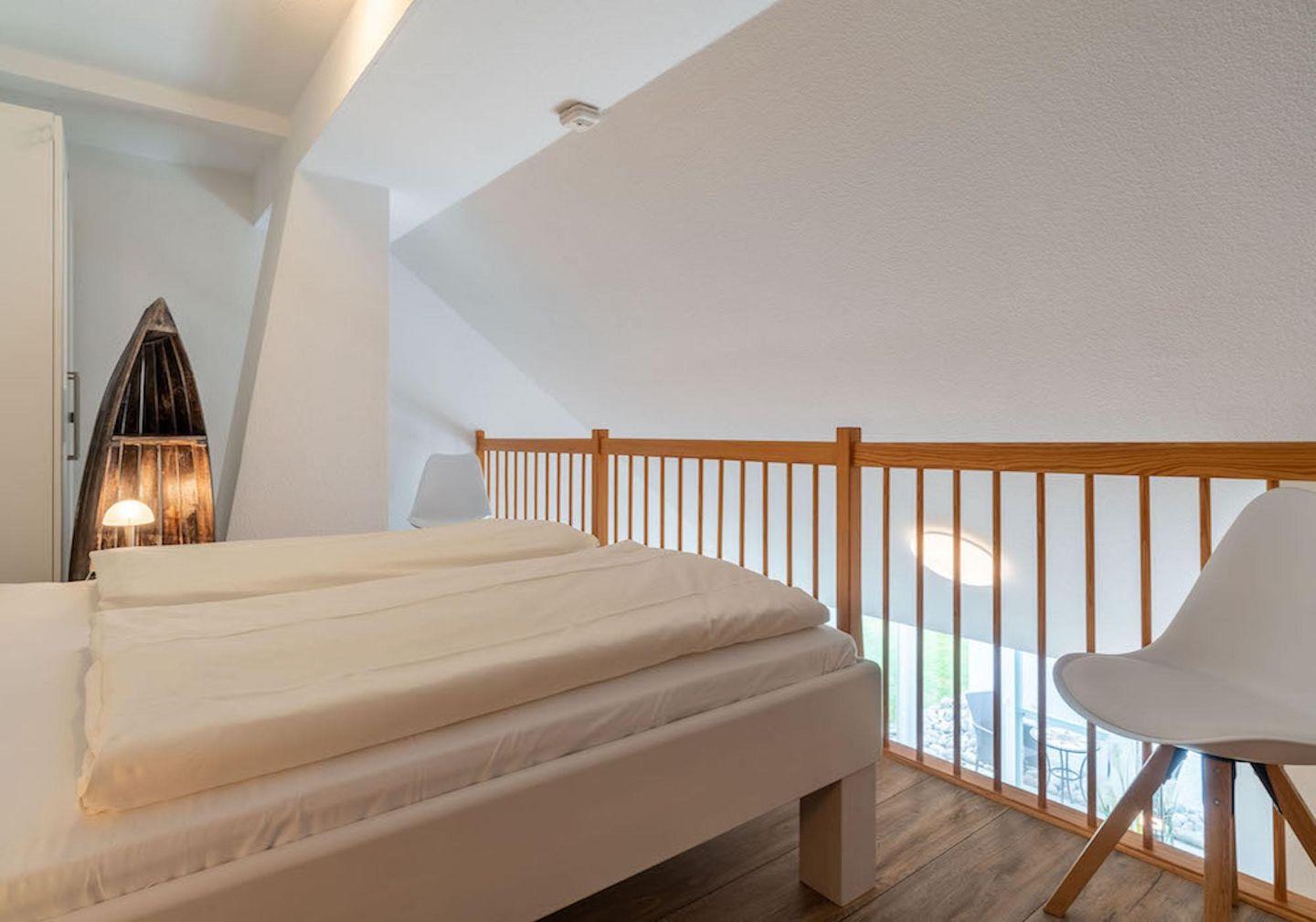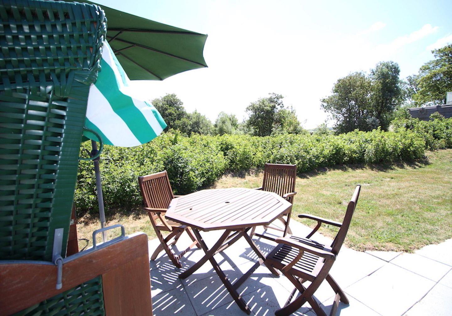 Das wunderschöne Appartement unter Reet wurde mit modernen Möbeln ausgestattet und bietet großzügigen Platz für 3 Personen. Das Grundstück mit Stellplatz wurde mit hübschen Pflanzen angelegt. Auf der Terrasse mit Gartenmöbeln, umgeben von Schafwiesen und Pferdekoppeln, kann man herrlich entspannen und die Ruhe genießen. Zusätzlich hat Ihre Wohnung noch eine weitere sonnige Terrasse im Grünem mit Standkorb und Gartenmöbeln. Das Appartement befindet sich im Erdgeschoss und erstreckt sich über 2 Etagen. Es verfügt über ca. 60 m² Wohnfläche und teilt sich wie folgt auf: Auf der ersten Etage befindet sich ein großzügiger Wohnraum mit einer offenen Küche und einem gemütlichen Essbereich. Die Küche ist voll ausgestattet. Ein separates Duschbad bietet jeden Komfort. Über eine Holztreppe gelangt man zur Schlafgalerie im Dachgeschoss. Das stilvolle Schlafzimmer verfügt über ein 1,8 x 2,0 m Bett. Eine weitere Person kann auf der Schlafcouch 1,4 x 2,0 m im Wohnzimmer entspannen. Kostenlose W-LAN Nutzung.