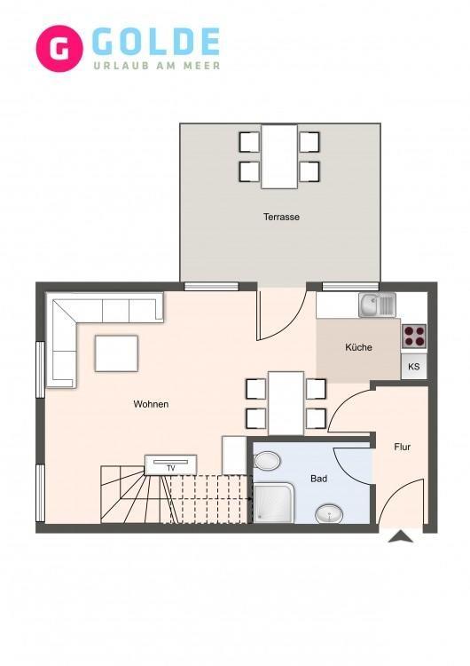 Das wunderschöne Apartment unter Reet wurde mit modernen Möbeln ausgestattet und bietet großzügigen Platz für 2 Personen. Das Grundstück mit Stellplatz wurde mit hübschen Pflanzen angelegt. Auf der Sonnenterrasse mit Gartenmöbeln und Strandkorb, umgeben von Schafwiesen und Pferdekoppeln, kann man herrlich ausspannen und die Ruhe genießen. Das Appartement befindet sich im Erdgeschoss über 2 Etagen. Es verfügt über ca. 60 m² Wohnfläche und teilt sich wie folgt auf: Auf der ersten Etage befindet sich ein großzügiger Wohnraum mit einer offenen Küche und einem gemütlichen Essbereich. Die Küche ist voll ausgestattet. Ein separates Duschbad bietet jeden Komfort. Über eine Holztreppe gelangt man zur Schlafgalerie im Dachgeschoss. Das Schlafzimmer verfügt über ein 1,8 x 2,0 m Bett. Kostenlose W-LAN Nutzung.