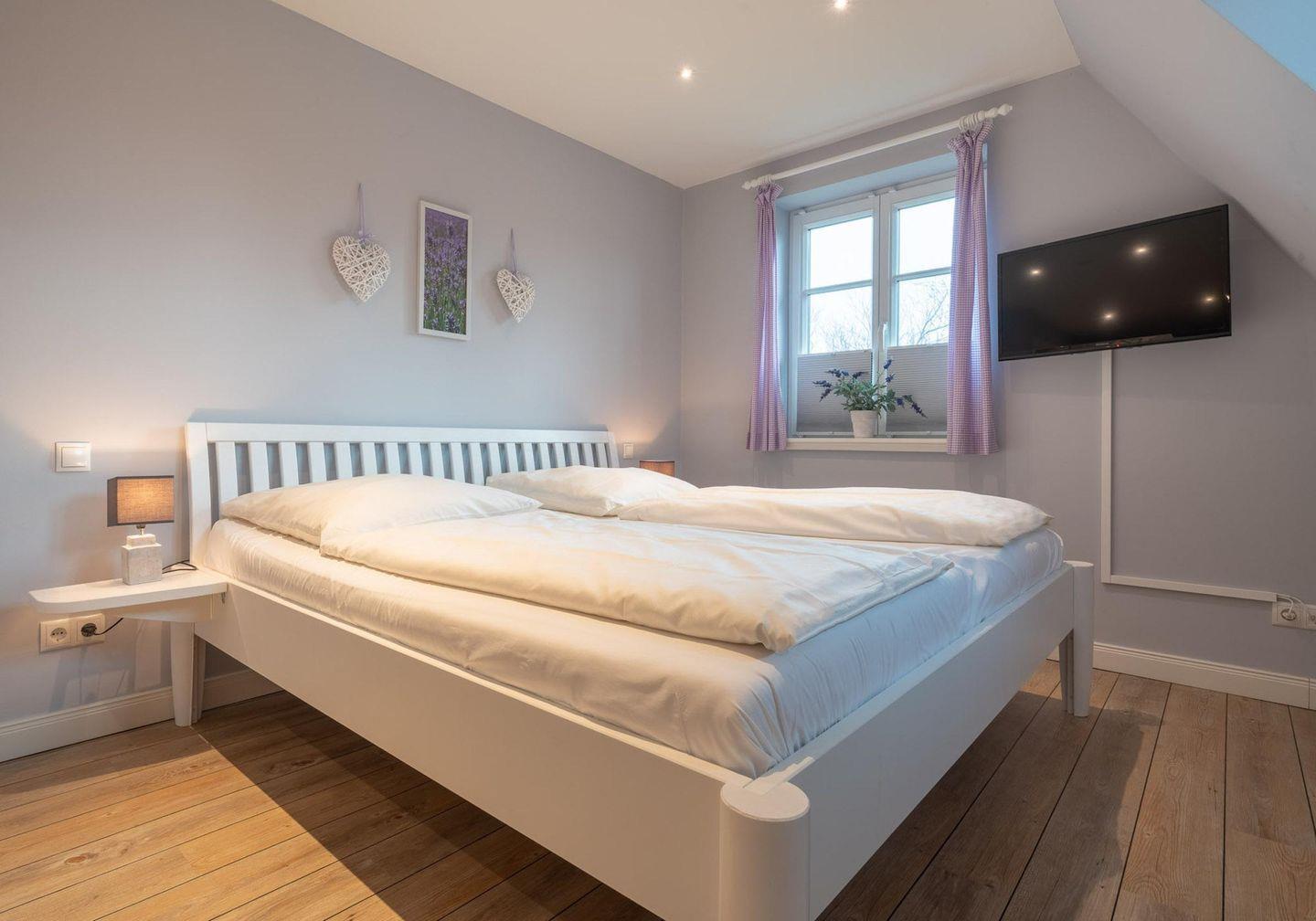 In den 4 Schlafzimmern warten gemütliche Doppelbetten auf Sie. Vom großzügigen 2 × 2m Bett, über die ordentliche 1,8 × 2m Koje bis zu den beiden kuscheligeren 1,4 × 2 m Betten.