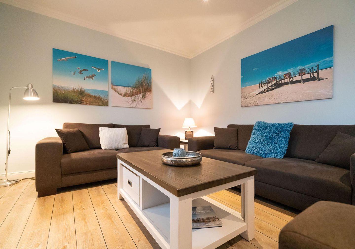 Die luxuriöse Haushälfte unter Reet wurde mit exklusiven Möbeln ausgestattet und bietet großzügigen Platz für 6 Personen. Das Grundstück mit Stellplatz und 2 Terrassen inklusive Gartenmöbeln und Strandkorb wurde mit hübschen Pflanzen und einem Friesenwall angelegt. Das Haus verfügt über ca. 120 m² Wohnfläche und teilt sich wie folgt auf: