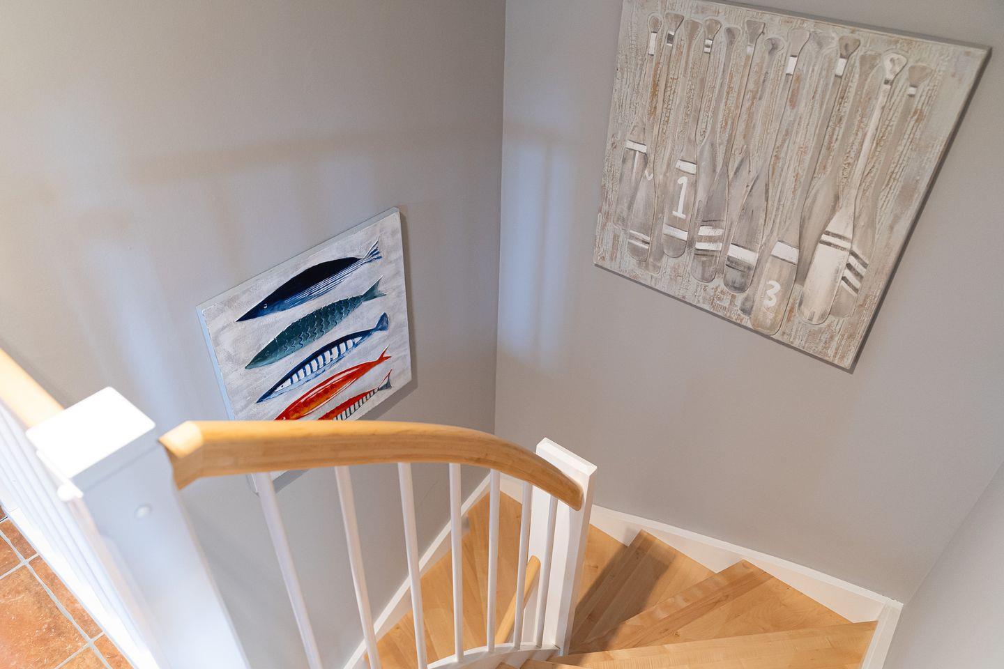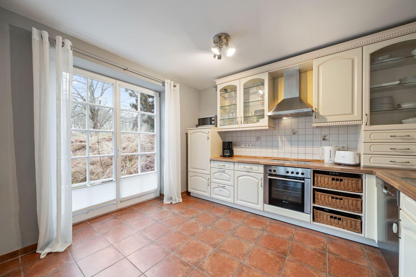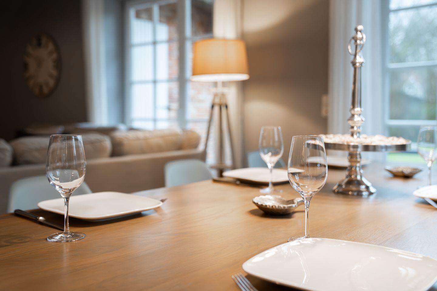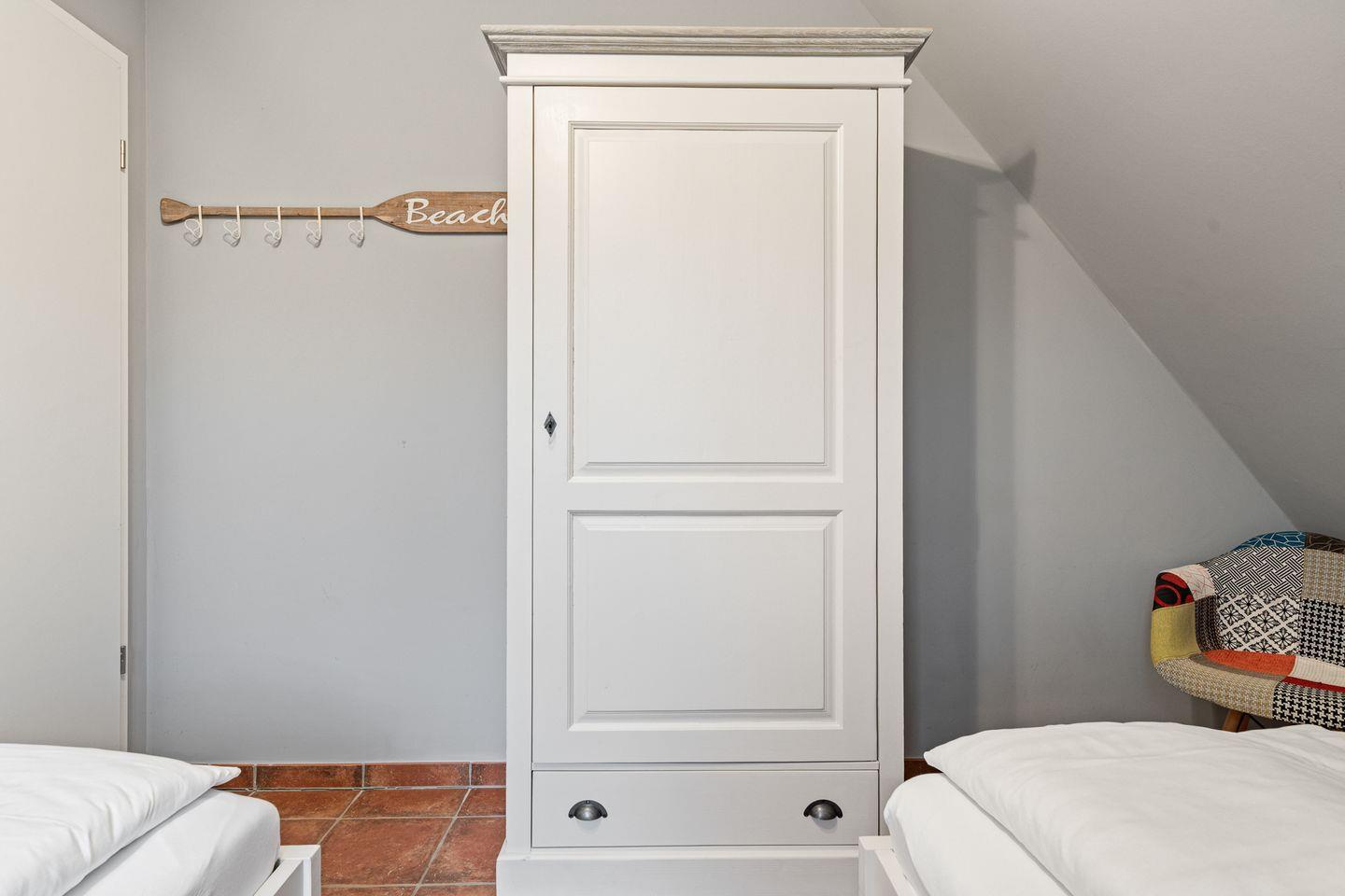 Im Erdgeschoss befindet sich der wunderschöne Wohnraum mit einem gemütlichen Essbereich und Zugang zu 2 Terrassen. Die offene Wohnküche ist mit allen wichtigen Geräten voll ausgestattet und lädt zum gemeinsamen Kochen ein. Ebenso ist im Erdgeschoss ein geräumiger Flur und ein Gäste WC. Im Obergeschoss befinden sich zwei Schlafzimmer. Eines mit einem Doppelbett und großem Kleiderschrank und ein weiteres mit 3 Schlafplätzen, einem Doppelbett und einem Einzelbett. Außerdem ist im Obergeschoss ein geräumiges Vollbad mit Eckbadewanne. Zusätzlicher Luxus im Obergeschoss ist ein weiteres Gäste-WC.