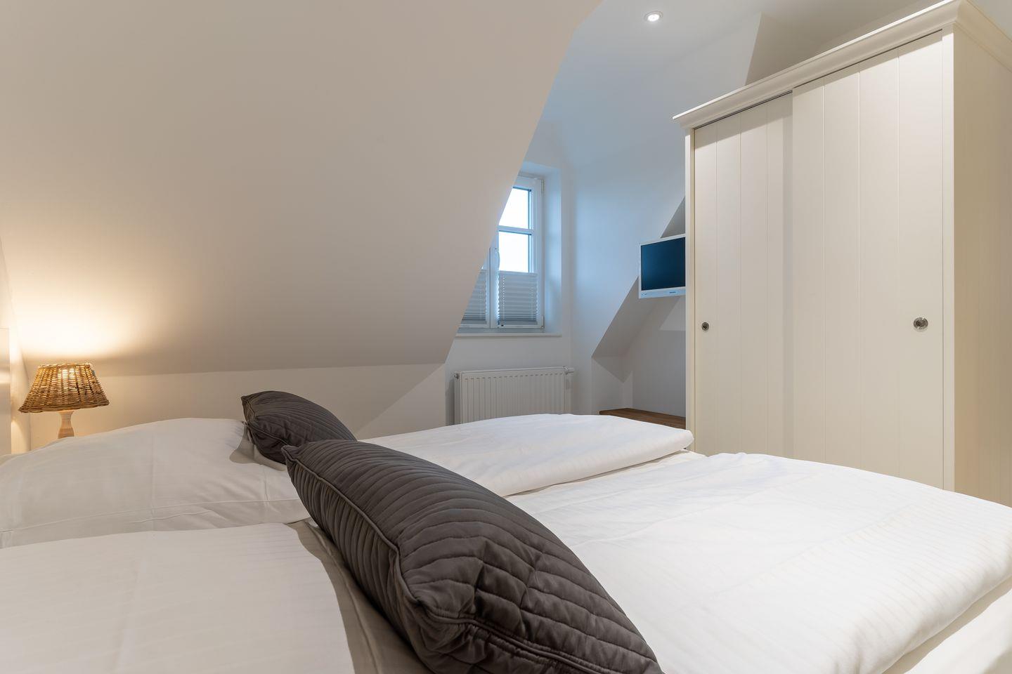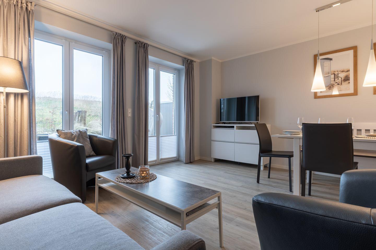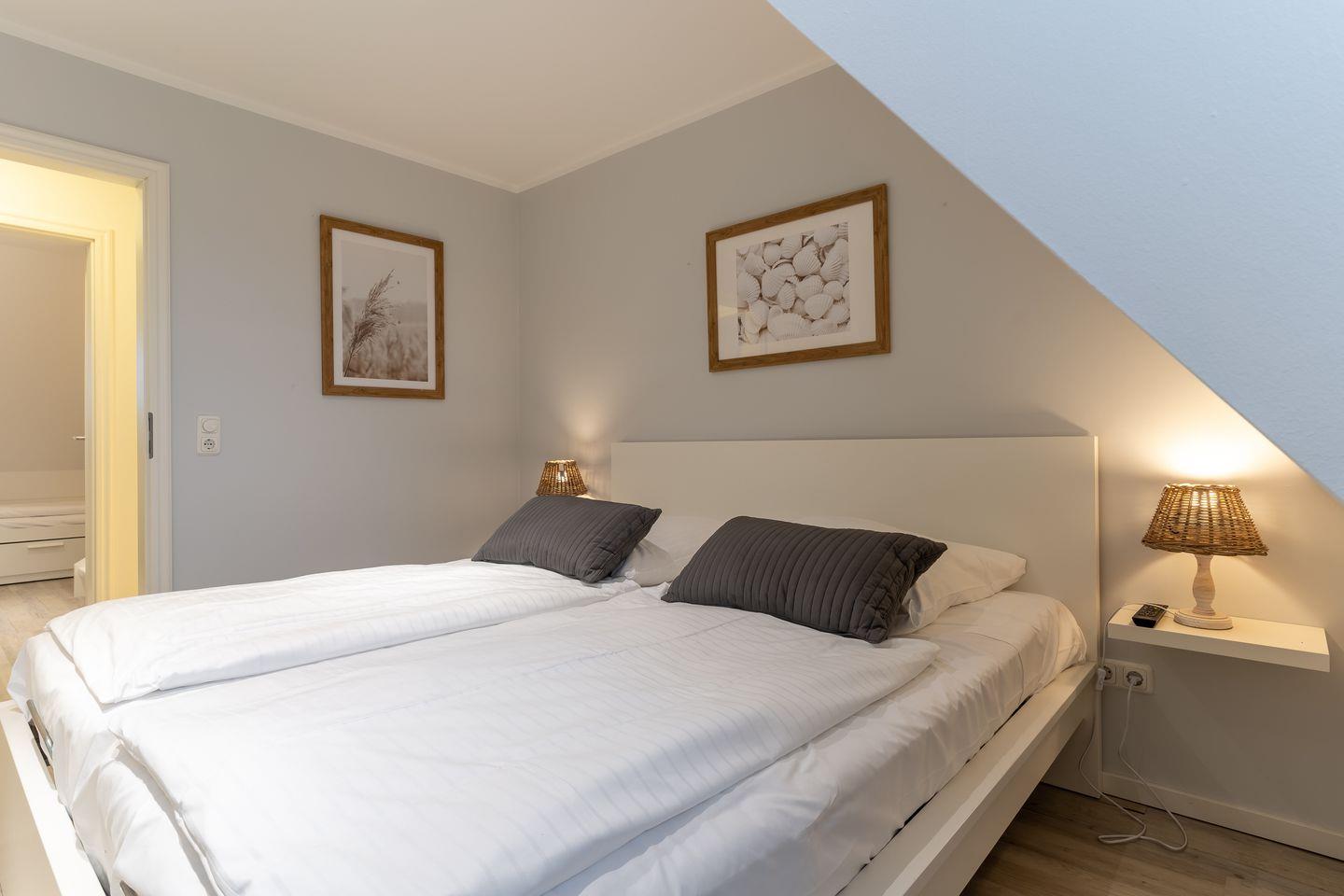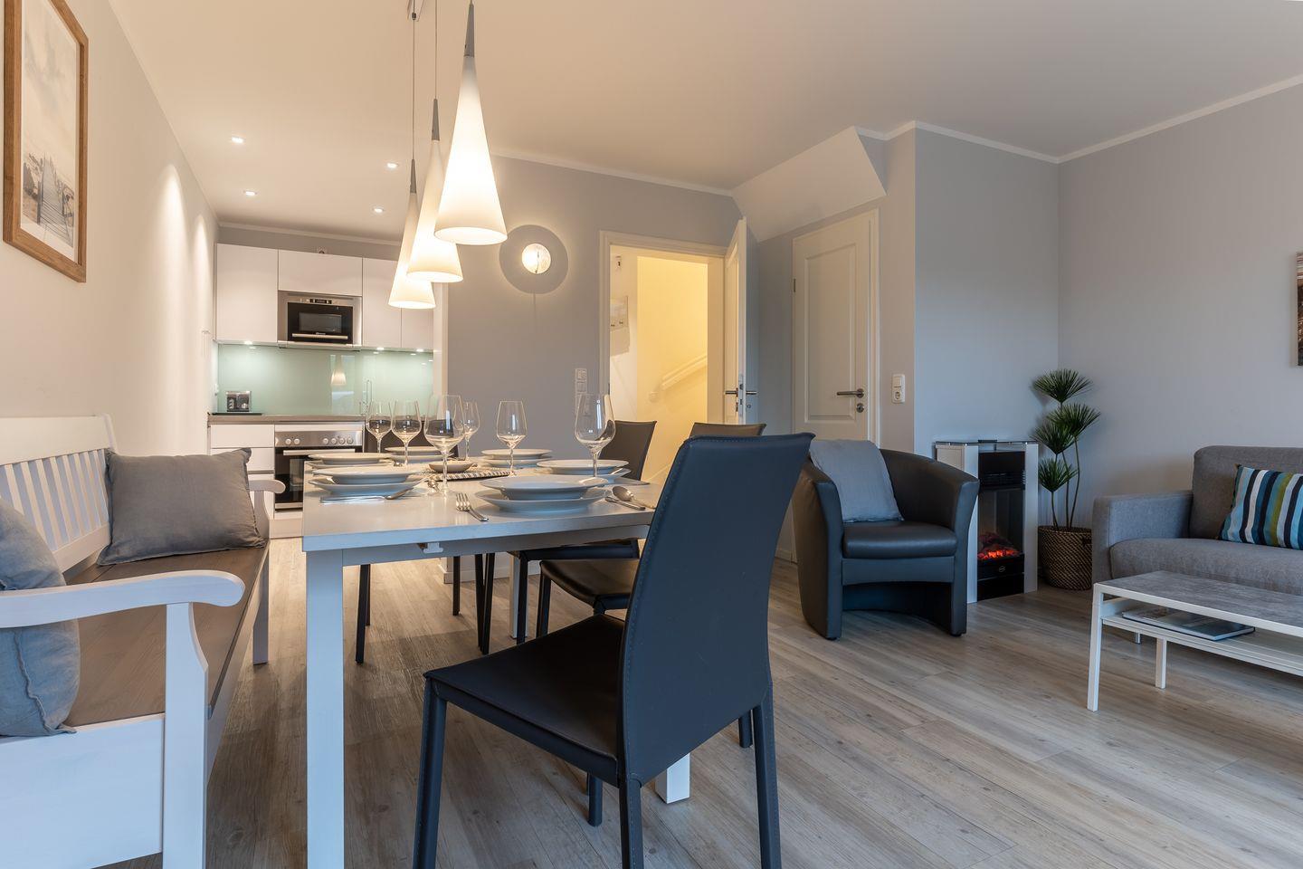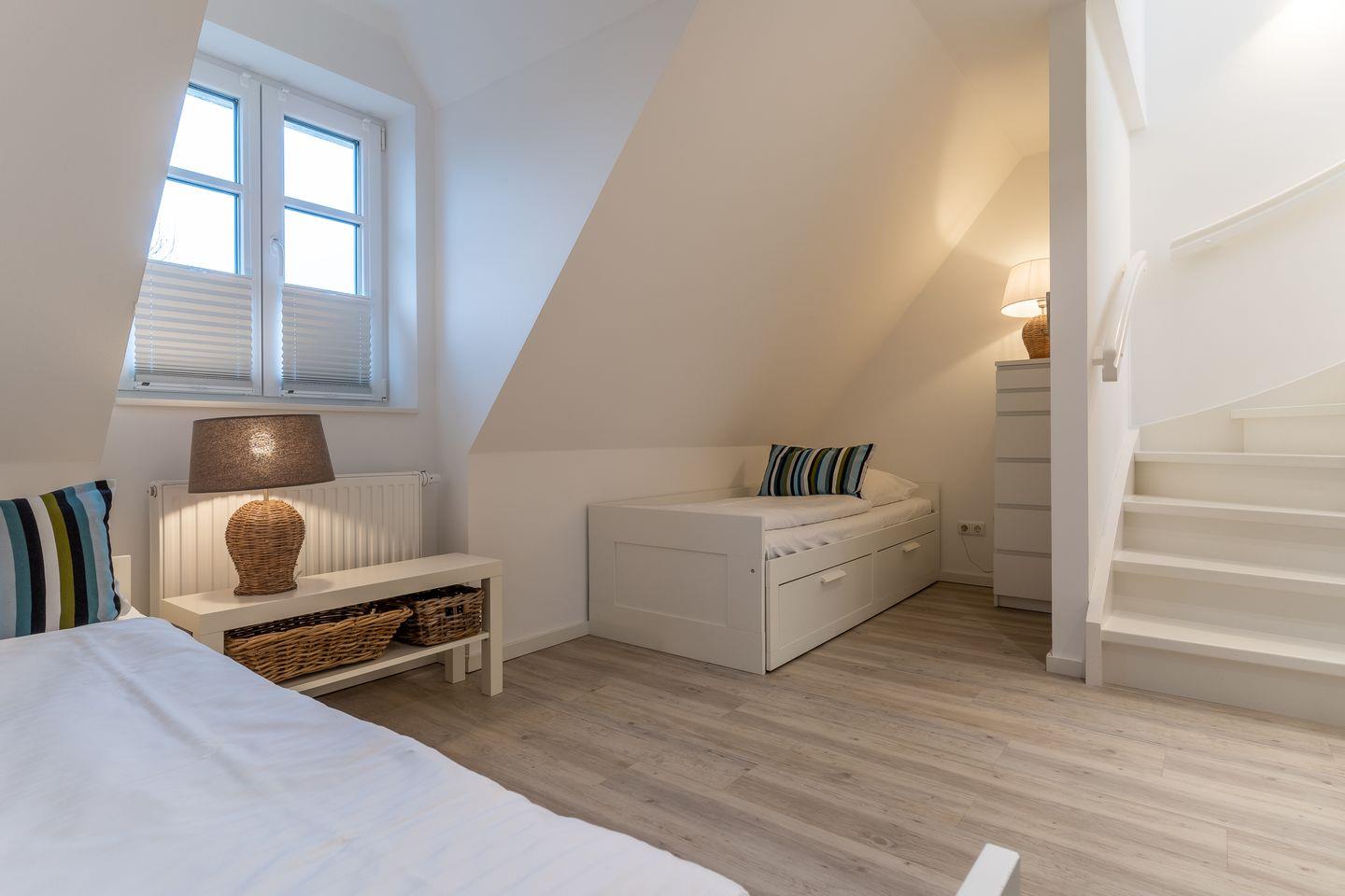 Die luxuriöse Mittelhausscheibe mit Garten, gemütlicher Terrasse und traumhaften Blick über den Deich befindet sich direkt am Ordinger Hauptstrand. Das Haus verfügt über ca. 84 m² Wohnfläche und teilt sich wie folgt auf: Im Erdgeschoss befindet sich der Wohnraum mit einer offenen Wohnküche und einem gemütlichen Essbereich. Ein Elektrokamin im Wohnraum bietet ruhevolle Entspannung. Die Küche ist mit hochwertigen Geräten und edlem Geschirr voll ausgestattet. Im Erdgeschoss ist ebenso ein Gäste WC, ein Flur mit Garderobe, ein Abstellraum unter der Treppe und Hauswirtschaftsraum mit Waschmaschine. Über eine Holztreppe gelangt man in das Obergeschoss mit zwei großzügigen Schlafzimmern, eines mit einem Doppelbett und das Andere mit 2 Einzelbetten. Ebenso ist im OG noch ein geräumiges Duschbad. Über eine weitere Holztreppe geht es vom Doppelzimmer der Einzelbetten ins Dachgeschoss mit gemütlichem Schlafsofa für 2 Personen. Hier kann man mit einem traumhaftem Weitblick bis zum Wasser herrlich entspannen oder übernachten. Mit viel Liebe zum Detail wurde großen Wert auf die Inneneinrichtung gelegt. Das ganze Haus verfügt über große Fenster und somit ist jeder Raum herrlich lichtdurchflutet.