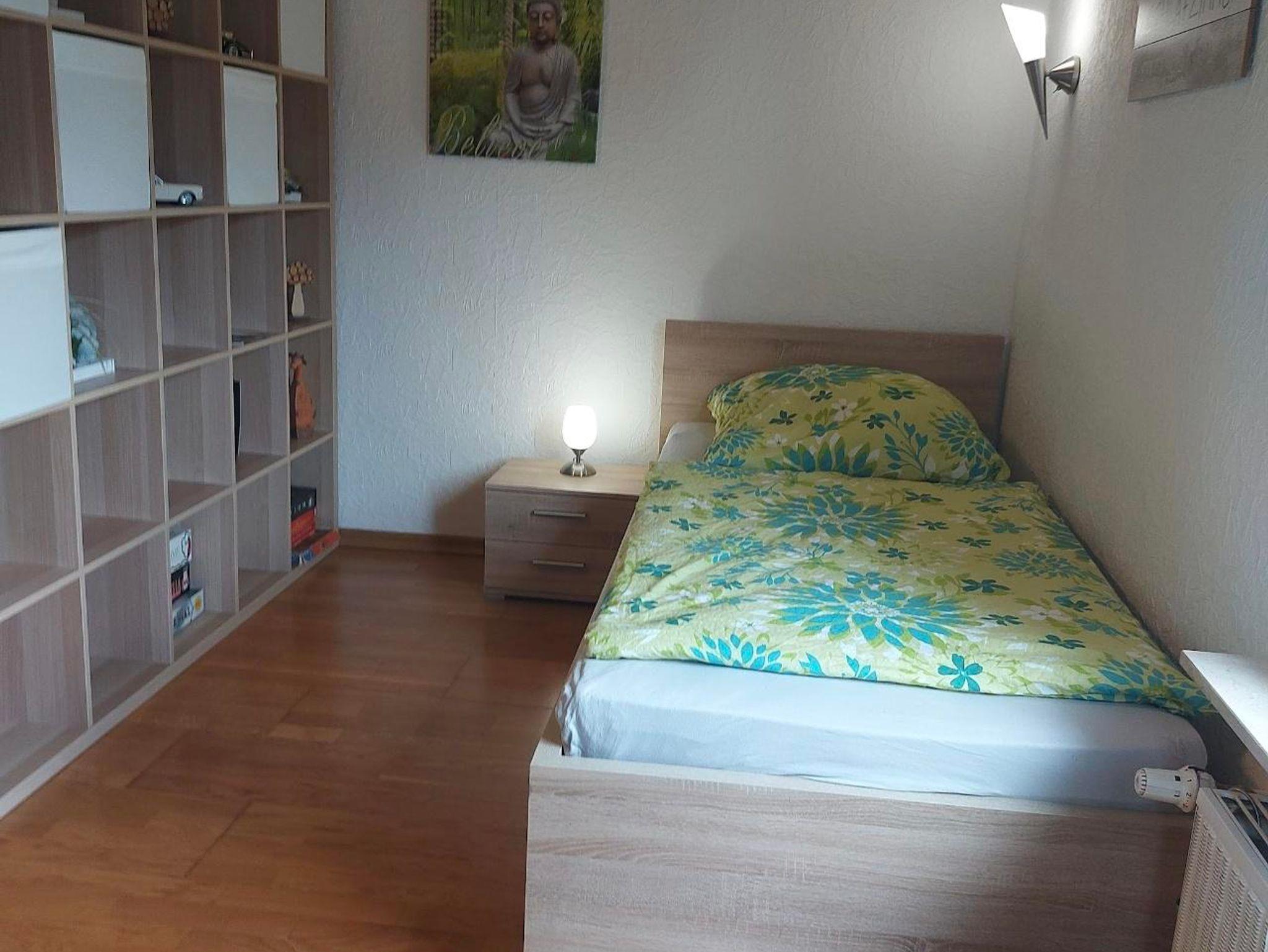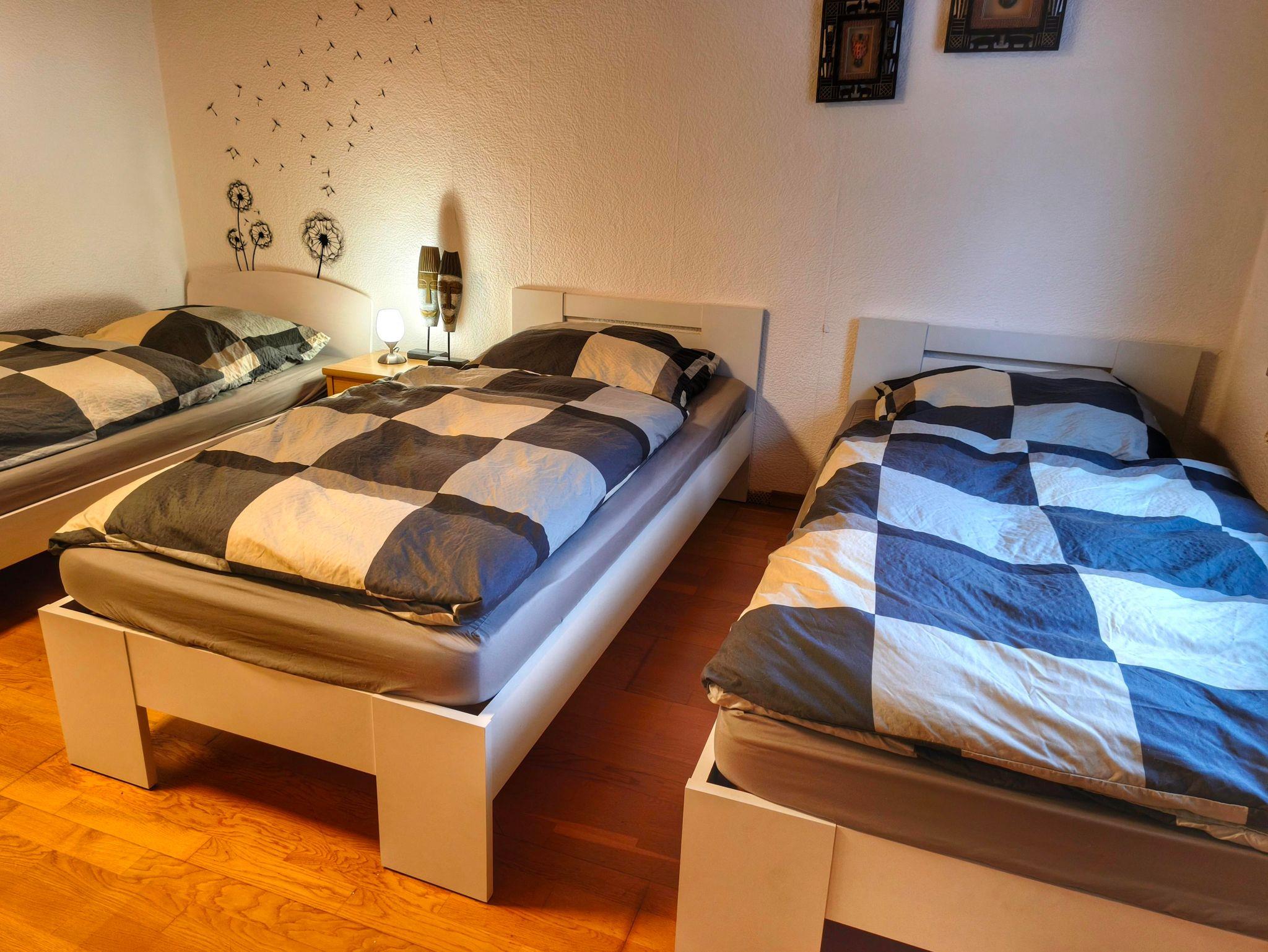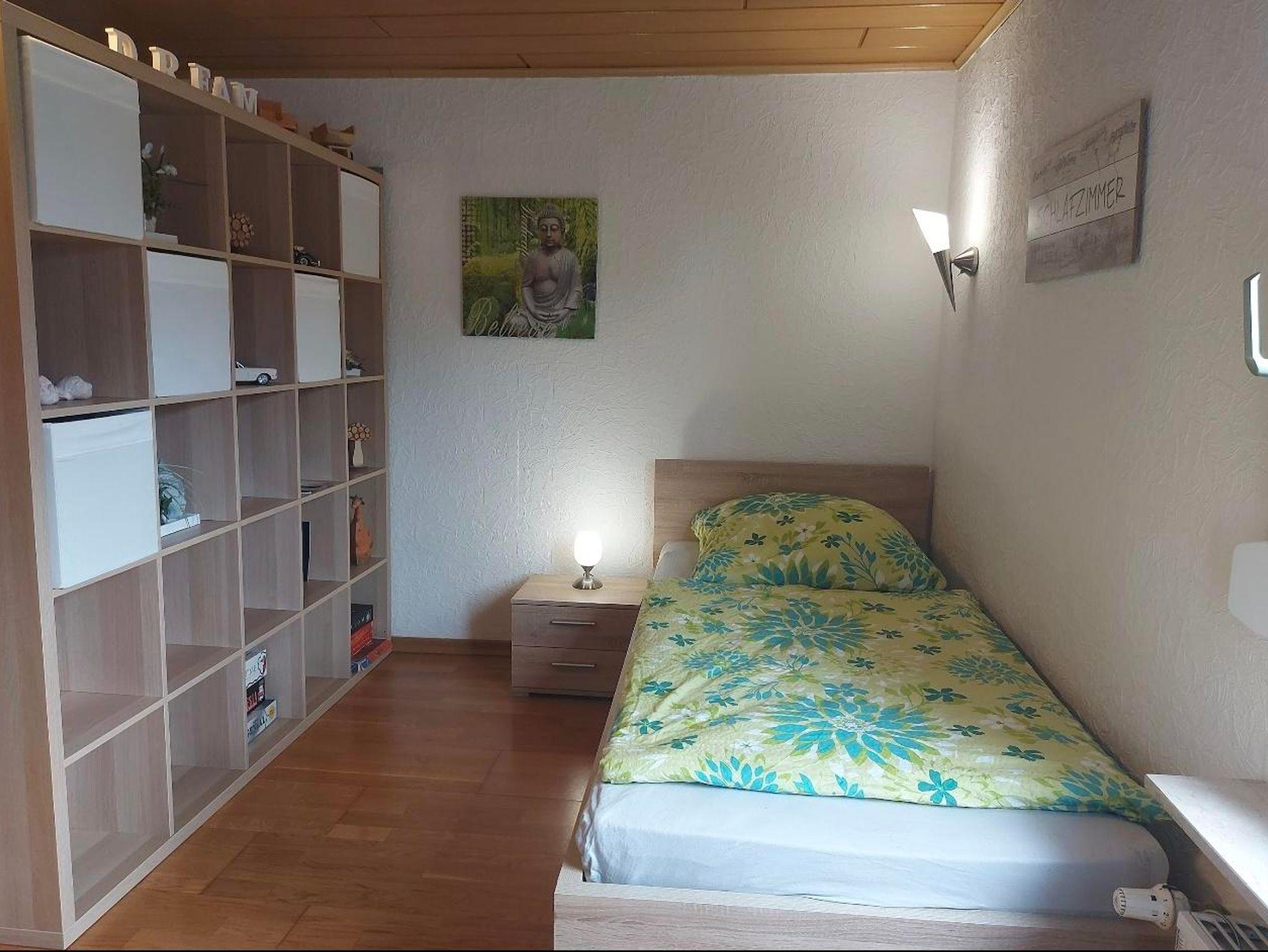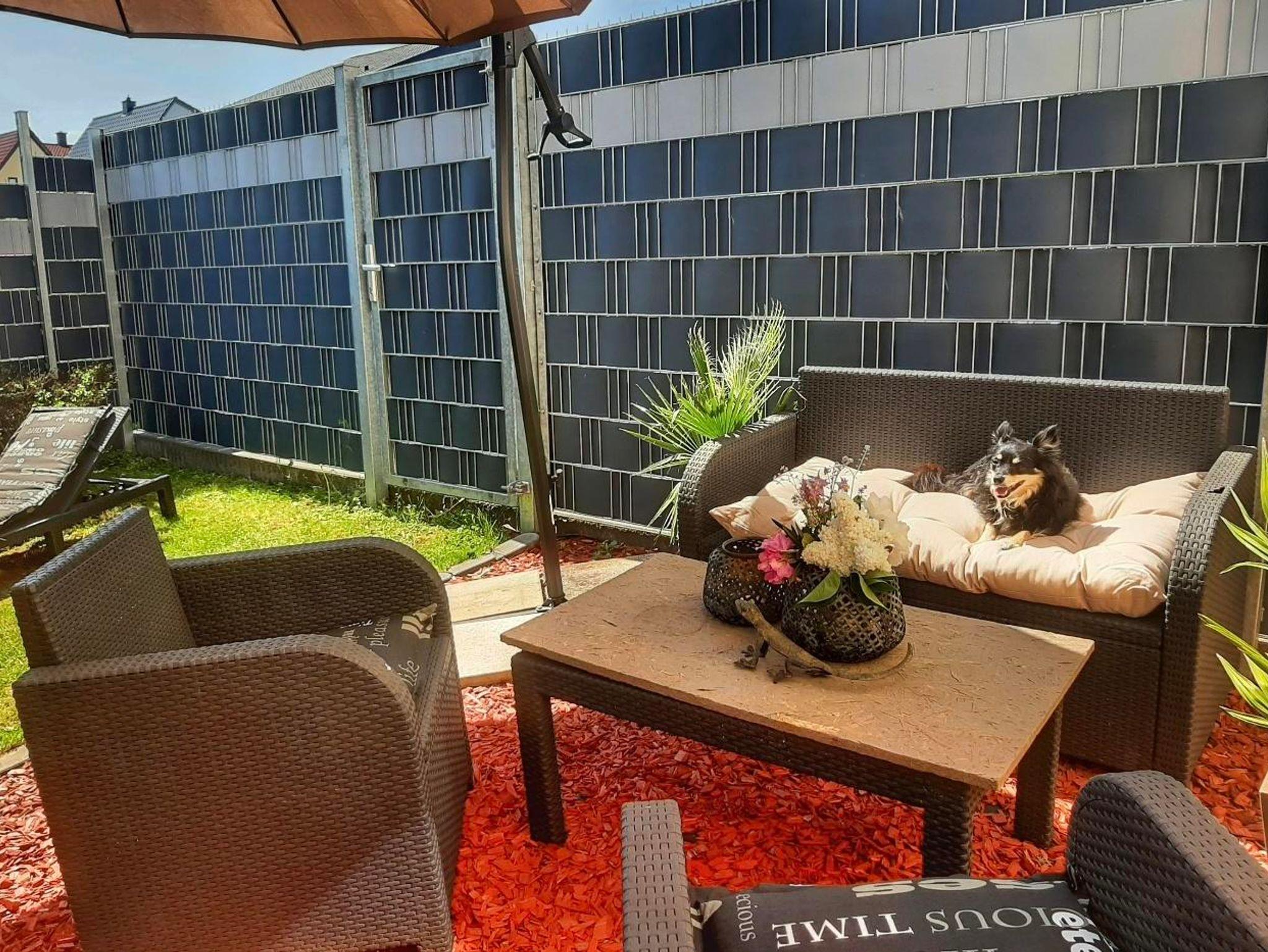 Wohnung in der 1. Etage eines Zweifamilienhauses Eingezäunter Garten Grill und Aufstellpool (Pool wird von beiden Wohnparteien genutzt) Haustiere auf Anfrage Waldrandlage 3 Schlafzimmer: 1 Zimmer mit 2 Einzelbetten/ Fernseher 1 Zimmer mit 1 Einzelbett 1 Zimmer mit 3 Einzellbetten 1 Bad mit Dusche und Eckbadewanne 1 Wohnzimmer , Fernseher 1 voll ausgestattete Küche mit Backofen, Geschirrspüler, Kaffeemaschine, Toaster, Wasserkocher, Mikrowelle, Kühlgefrierkombination Balkon Balkonmöbel Handtücher Bettwäsche Kostenlose Parkmöglichkeiten direkt vorm Haus Einkaufsmöglichkeiten direkt vor Ort.