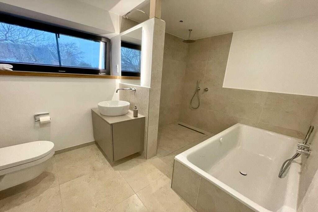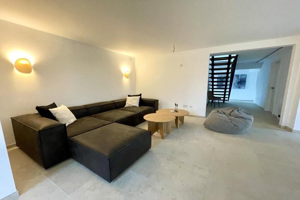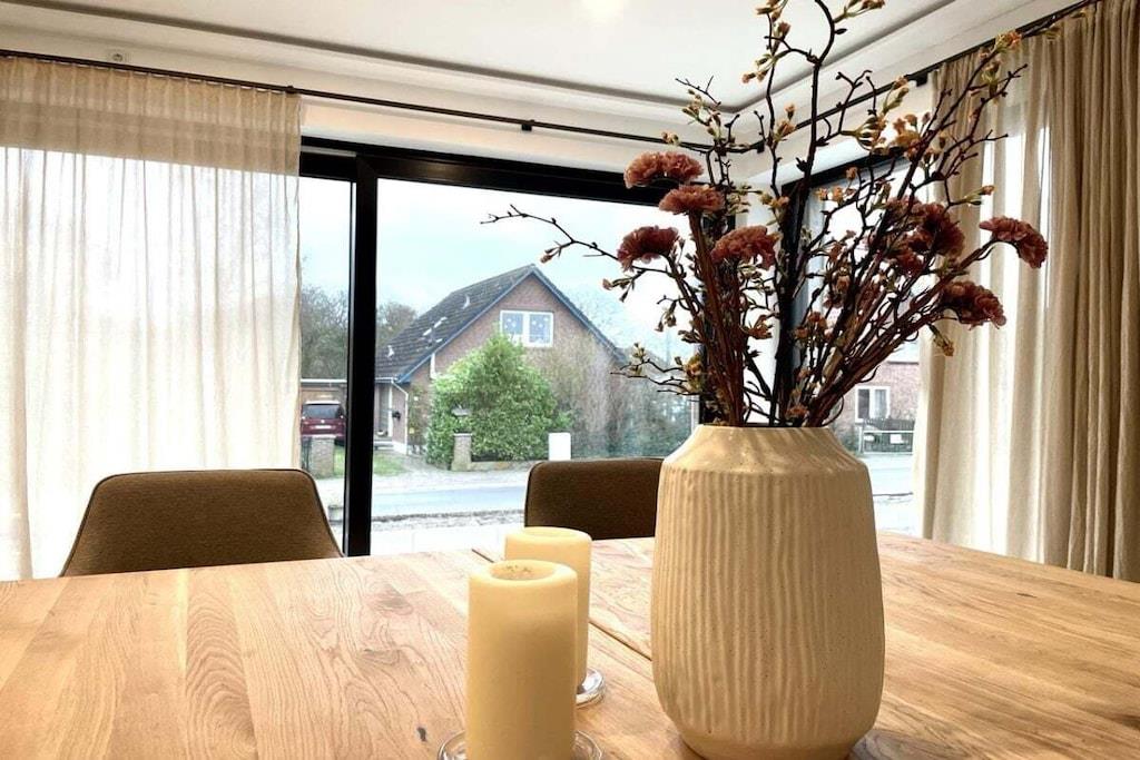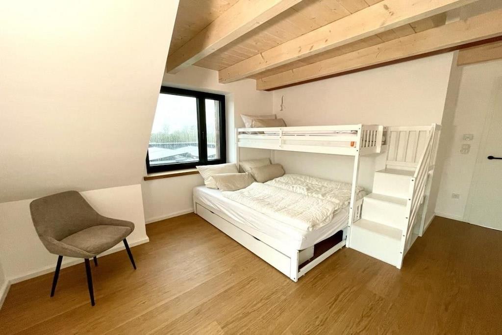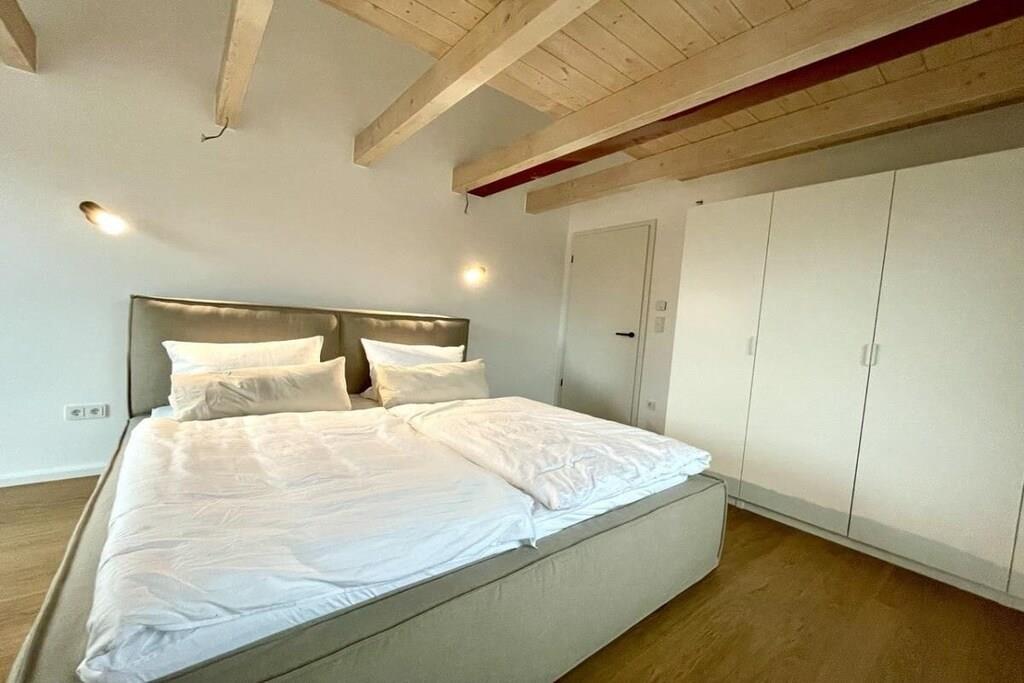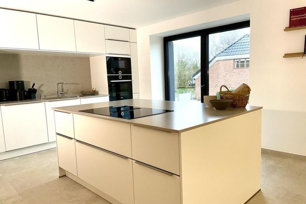 Luksusferiehuset "DS11" lader intet tilbage at ønske. Denne fuldstændig renoverede bygning består af hovedhuset og en ekstra ferielejlighed, der kan bookes separat. Følgende faciliteter venter dig i "DS11": Gulvvarme i alle værelser Mørklægningsgardiner med elektriske skodder i soveværelserne og persienner i opholdsstuen Køkken af høj kvalitet med ismaskine og stor induktionskogeplade med integreret emhætte Massive egetræsmøbler Åbne bjælkelofter med en vidunderlig rummelighed på øverste etage Du træder ind i huset gennem den imponerende entré. I stueetagen finder du en meget rummelig opholds- og spisestue med åbent køkken og en stor skydedør i glas, der fører ud til den sydvestvendte terrasse. I stueetagen er der også et luksuriøst badeværelse med stort badekar og bruser. Desuden (endnu ikke afbilledet) er der i stueetagen et lille soveværelse med en enkeltseng og et hjemmekontorområde. Ovenpå er der tre soveværelser. Soveværelse 1 har en stor familieseng med boxmadras, der måler 240x200 cm. Det andet soveværelse indeholder en køjeseng, hvis underkøje kan udvides til 180x200 cm. Det tredje soveværelse er møbleret med en seng på 180x200 cm. Huset, inklusive haveanlæg, vil være færdigt senest den 1. april 2025.