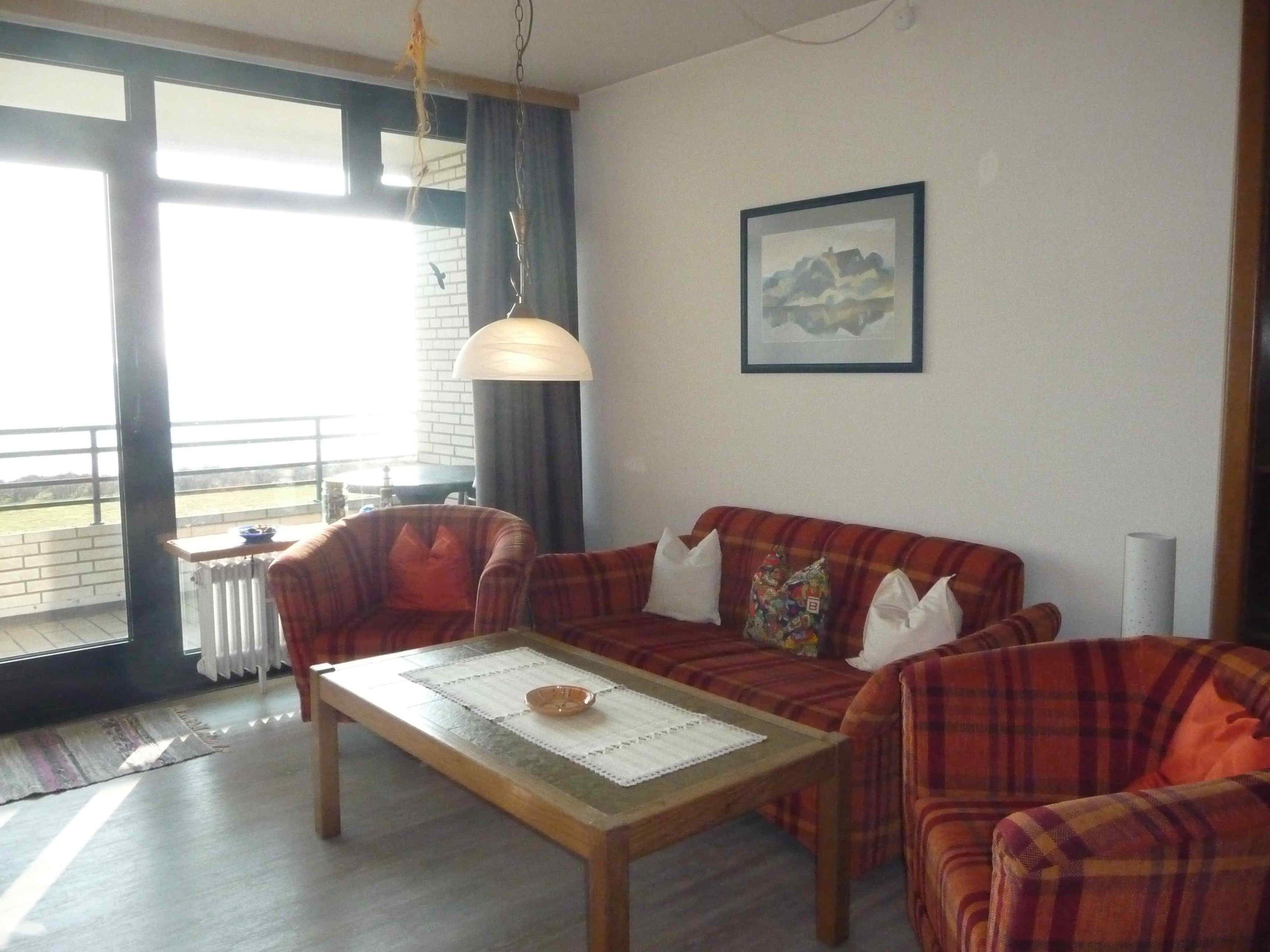 Die gemütliche Ferienwohnung befindet sich im 1. Stock des Apartmenthauses. Im gemütlichen Wohnbereich erwarten Sie bequeme Sitzgarnituren. Die Couch lässt sich auch mit wenigen Handgriffen zu einer Schlafcouch umklappen. Der gegenüberliegende Fernseher sorgt für Unterhaltung. Ein Radio ist ebenfalls vorhanden.