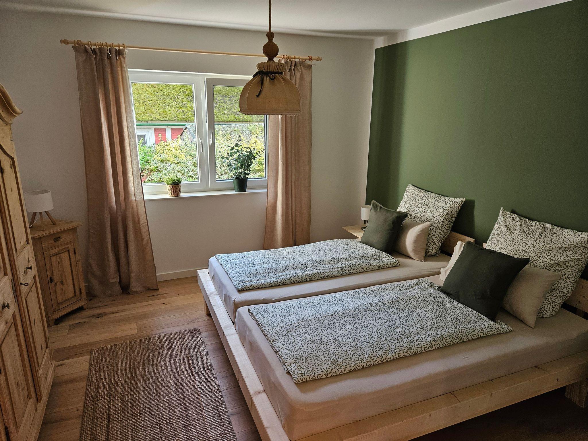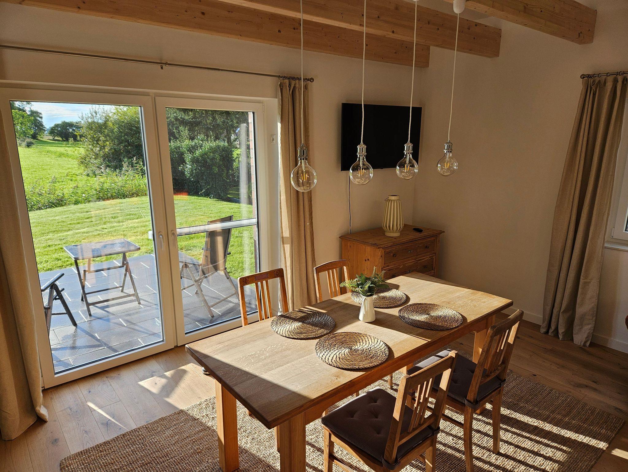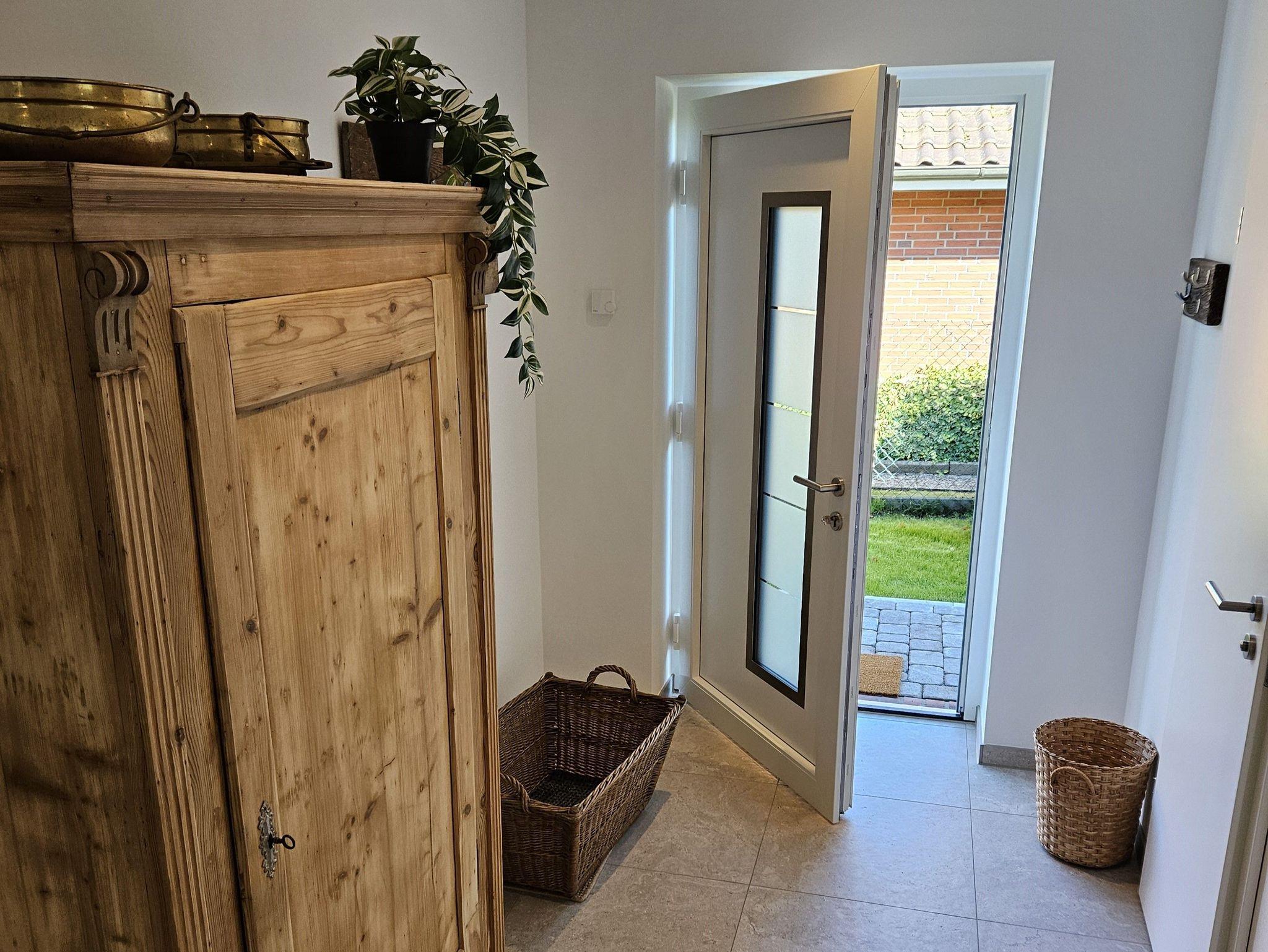 Ganz neu erbautes, freistehendes Ferienhaus auf einem abgeschlossenen Grundstück. Wohnfläche ca. 90 m², zwei separate Schlafzimmer mit jeweils einem Doppelbett (davon einmal Boxspring). Großes Badezimmer mit ebenerdiger Dusche, WC und Waschtisch. Gäste-WC mit Handwaschbecken. Offener Küchenbereich mit Kühlschrank, Gefriereinheit, Geschirrspüler, Backofen, Mikrowelle und Kochinsel mit Induktionsherd und Absaugung, Kaffeemaschine, Wasserkocher, Toaster usw. Angrenzender Wohn- und Essbereich mit (Schlaf-) Couch, großem Esstisch, SAT-TV und W-LAN im ganzen Haus. Sonnenterrasse mit Gartenmöbeln, Sonnenschirm und Grillmöglichkeit. Zwei PKW-Stellplätze und verschließbarer Abstellraum für Fahrräder.