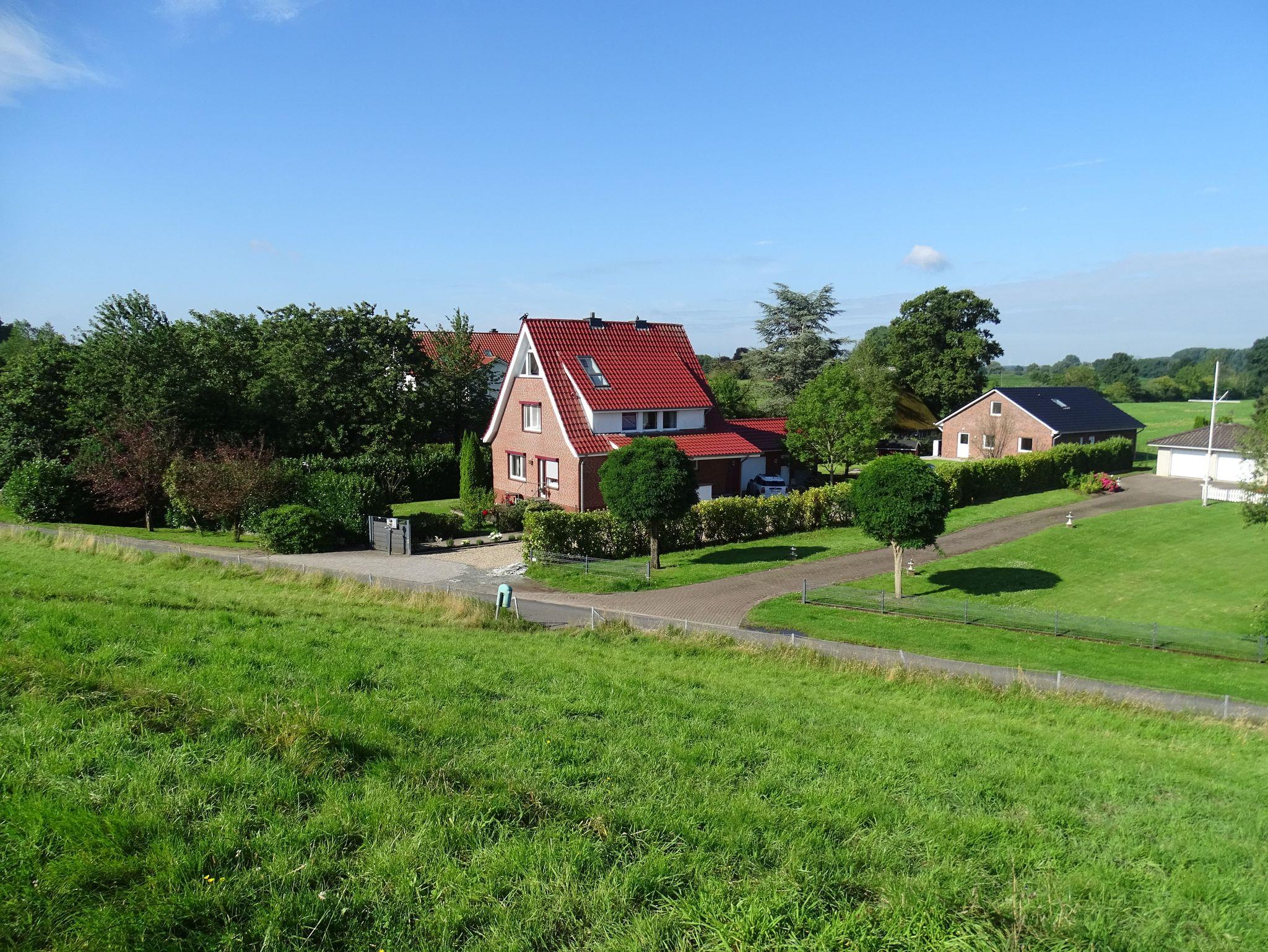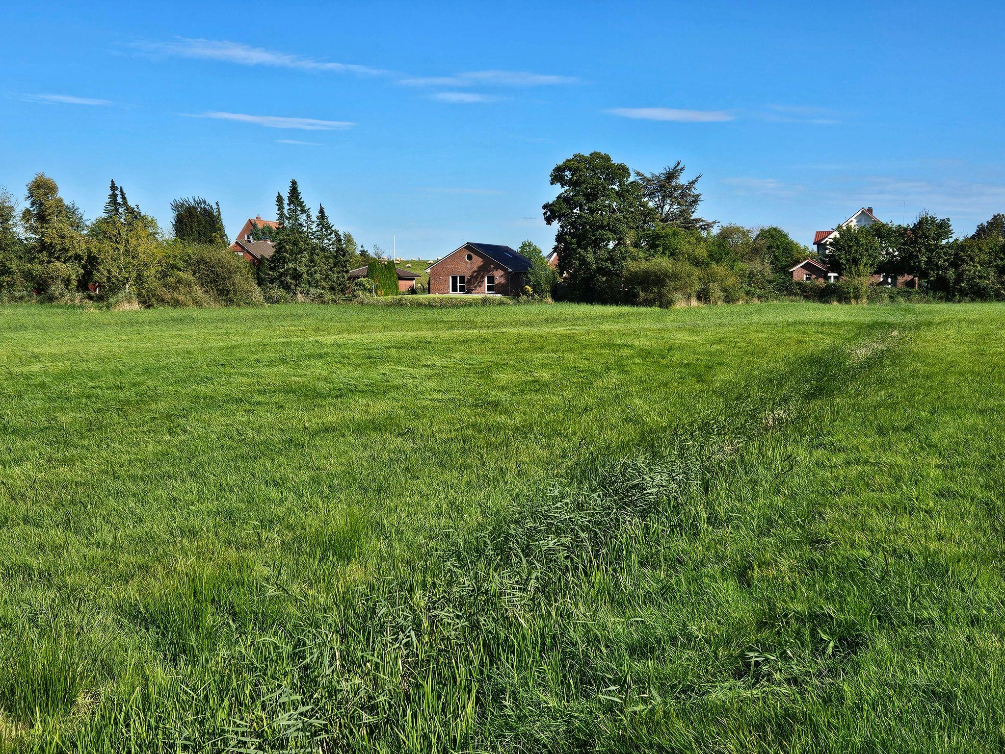 Unmittelbar am Abbenflether Elbdeich und Sandstrand, wo die dicken Pötte des Hamburger Hafens zum Greifen nah vorüberziehen, liegt unser nagelneues Ferienhaus Pagensand, als Ergänzung zu unserer bereits sehr beliebten Ferienwohnung. Genießen Sie die absolute Ruhe inmitten der herrlichen Natur des Kehdinger Landes auf einem eigenen Grundstück! Nur durch eine sehr ruhige Anwohnerstraße, die gleichzeitig Teil diverser Radwege ist, vom Deich getrennt, liegt vor dem Haus die Elbe mit ihrem feinen Sandstrand und den grasenden Schafen. Aus Küche und Wohnzimmer fällt der rückwärtige Blick über die Terrasse und den Garten in die Weite von Wiesen und Feldern, mit traumhaftem Wolkenspiel und romantischen Sonnenuntergängen am Himmel. Das gerade erst fertiggestellte Ferienhaus bietet Ihnen auf ca. 90 m² Wohnfläche mit zwei separaten Schlafzimmern Platz für 4 bis 5 Gäste, ein großzügiges Bad mit ebenerdiger Dusche sowie eine offene Küche mit angeschlossenem Wohn- und Essbereich. Ein hoher Sichtdachstuhl gibt diesem großen Raum eine besonders wohnliche Atmosphäre. Die gesamte Wohneinheit ist barrierefrei und behindertenfreundlich gestaltet. Gerade bei den Hundebesitzern unter den Gästen unserer schon bestehenden Ferienwohnung im ursprünglichen Kapitänshaus, sind der Abbenflether Strand und das Grünland der Deiche äußerst beliebt. Nach ausgiebigen Spaziergängen, Spielen im weichen Sand oder sogar einem erfrischenden Bad in der Elbe, können Sie sich mit Ihrem vierbeinigen Freund in einen abgeschlossenen Garten rund um ein geräumiges Ferienhaus zurückziehen. Zur Entspannung auf der Sonnenterrasse stehen Ihnen dabei natürlich Gartenmöbel, Tisch und Sonnenschirm sowie ein Holzkohlengrill zur Verfügung. Das Ferienhaus verfügt über zwei Kfz-Stellplätze und für Ihre eventuell mitgeführten Fahrräder - die aber natürlich auch vor Ort zu leihen sind - steht eine eigene Garage bereit.