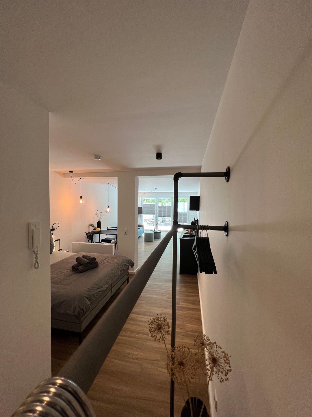 Im Eingangsbereich des Apartments befindet sich eine Garderobe. Innerhalb des Gebäudekomplexes steht dir eine Waschmaschine mit Waschmittel sowie ein Trockner zur Verfügung. Diese kannst du gegen eine Gebühr von jeweils 2,50 € je Wäsche bzw. Trocknung nutzen. Die Bezahlung und Reservierung der Maschinen läuft unkompliziert über die App „WeWash“. Ein Wäscheständer, ein Bügeleisen, ein Bügelbrett sowie ein Staubsauger stehen für dich im Waschraum zur Nutzung bereit.