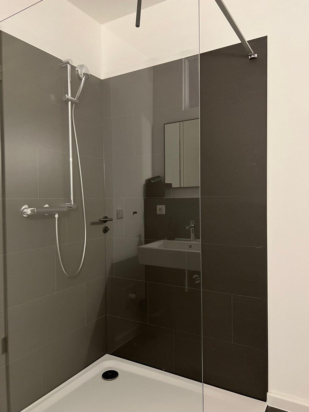 Das moderne Badezimmer mit Fußbodenheizung und großer Dusche hat eine Handtuchheizung und ausreichend Ablagemöglichkeiten für deine persönlichen Kosmetikprodukte. Handtücher, einen Haartrockner und Körperpflegeprodukte bekommst du von uns gestellt.