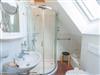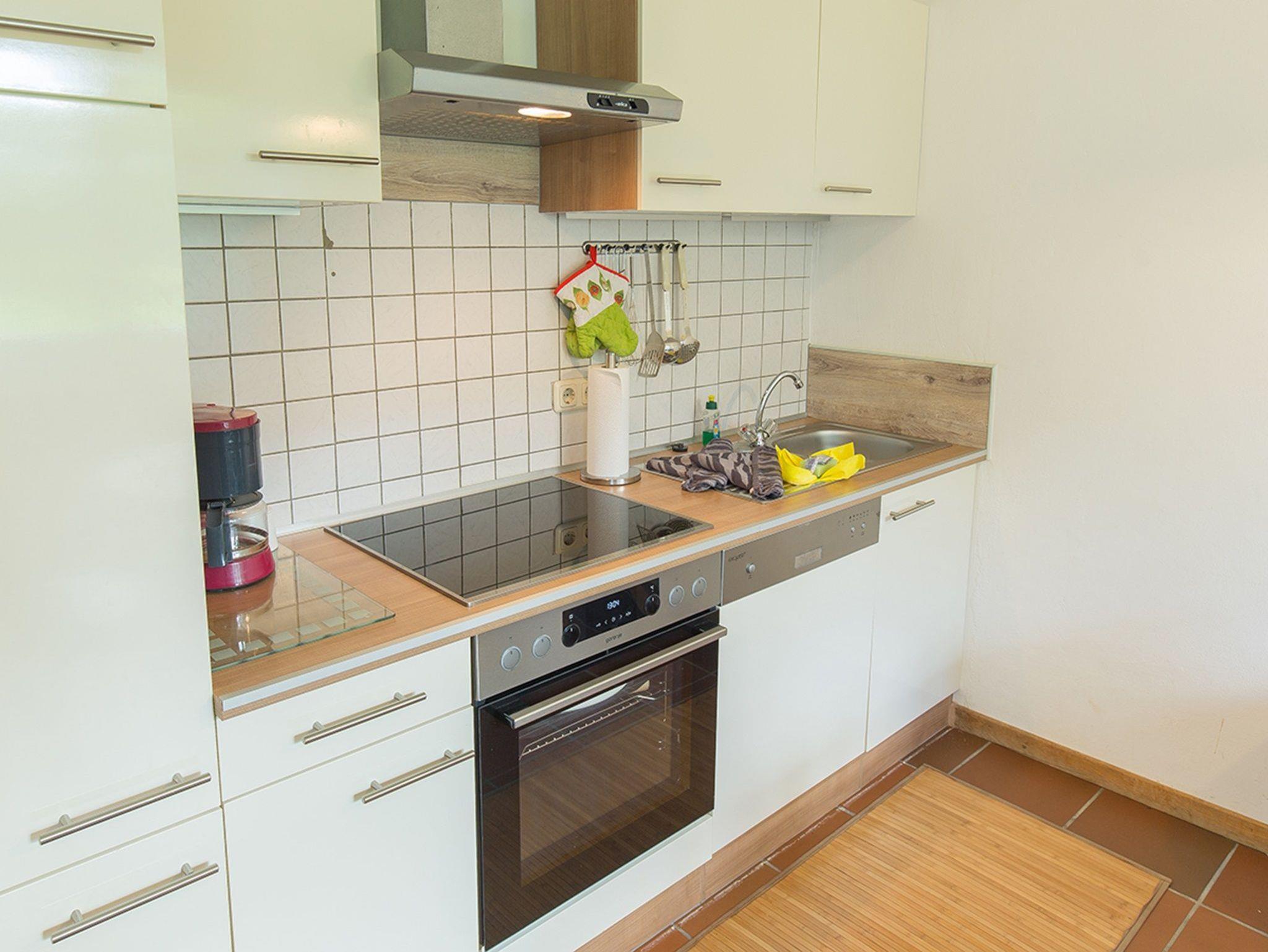 Ab Diele gelangen Sie in den großen gemütlichen Wohn-/Ess-/Kochbereich mit Kaminofen und dem ersten Badzimmer mit Wanne. Eine offene Holztreppe führt ins Obergeschoß zum zweiten Badezimmer mit Dusche sowie den beiden Schlafräumen. Ein Schlafzimmer hat ein komfortables Doppelbett und das andere insgesamt drei Einzelbetten. Nutzen Sie ihre eigene große Terrasse mit Blick ins Grüne.