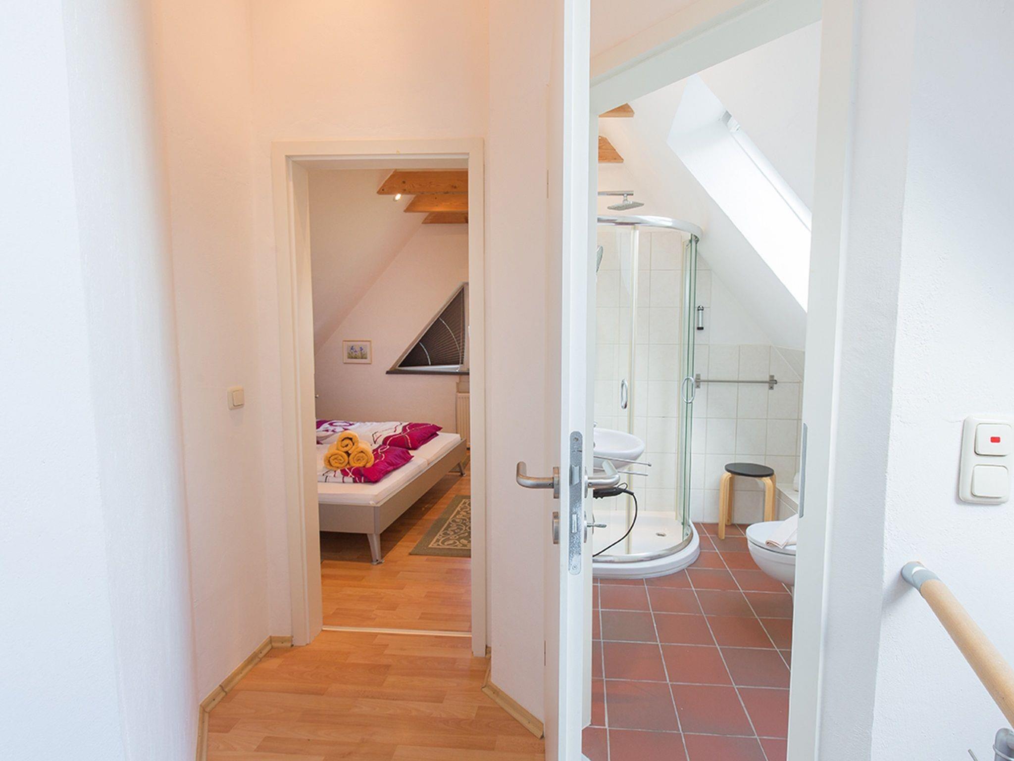Bis zu fünf Gäste haben Platz in der hundefreundlichen EG-Wohnung mit Haus-Charakter, 60 qm mit Terrasse auf zwei Etagen inklusive Gemeinschaftsnutzung der - unbeheizten - Poolhalle , der Sauna und der überdachten Spielscheune. Die ebenerdig zugängliche Wohnung befindet sich an der Nordseeküste mitten im Grünen auf unserem Reitlandhof Franke in Stadland.