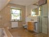 Im Spitzdach gibt es noch ein weiteres Schlafsofa (1,40m) und ein offenes Bad mit Badewanne und Waschtisch. Im Keller befindet sich die Sauna und eine Waschmaschine, die bei Bedarf genutzt werden kann.