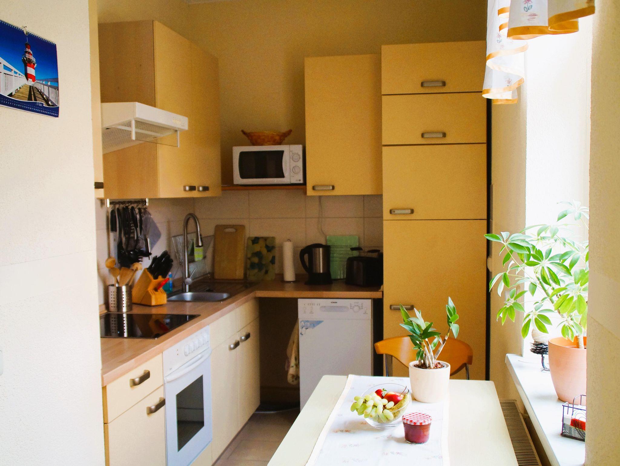 Die Küche ist komplett mit Ceranherd inklusive Backofen, Geschirrspüler, Kühlschrank mit Gefrierteil, Kaffeemaschine, Wasserkocher und Toaster sowie einem gemütlichen Essplatz ausgestattet.