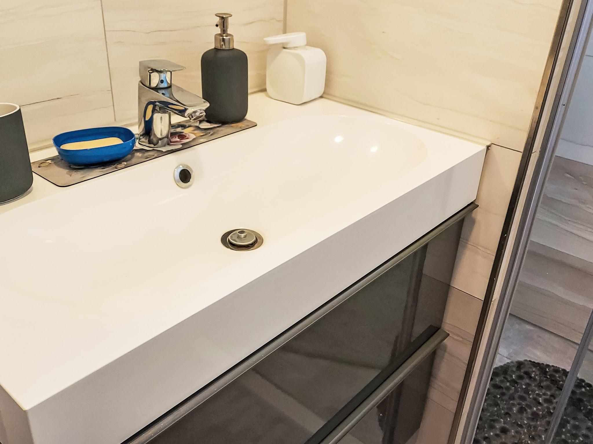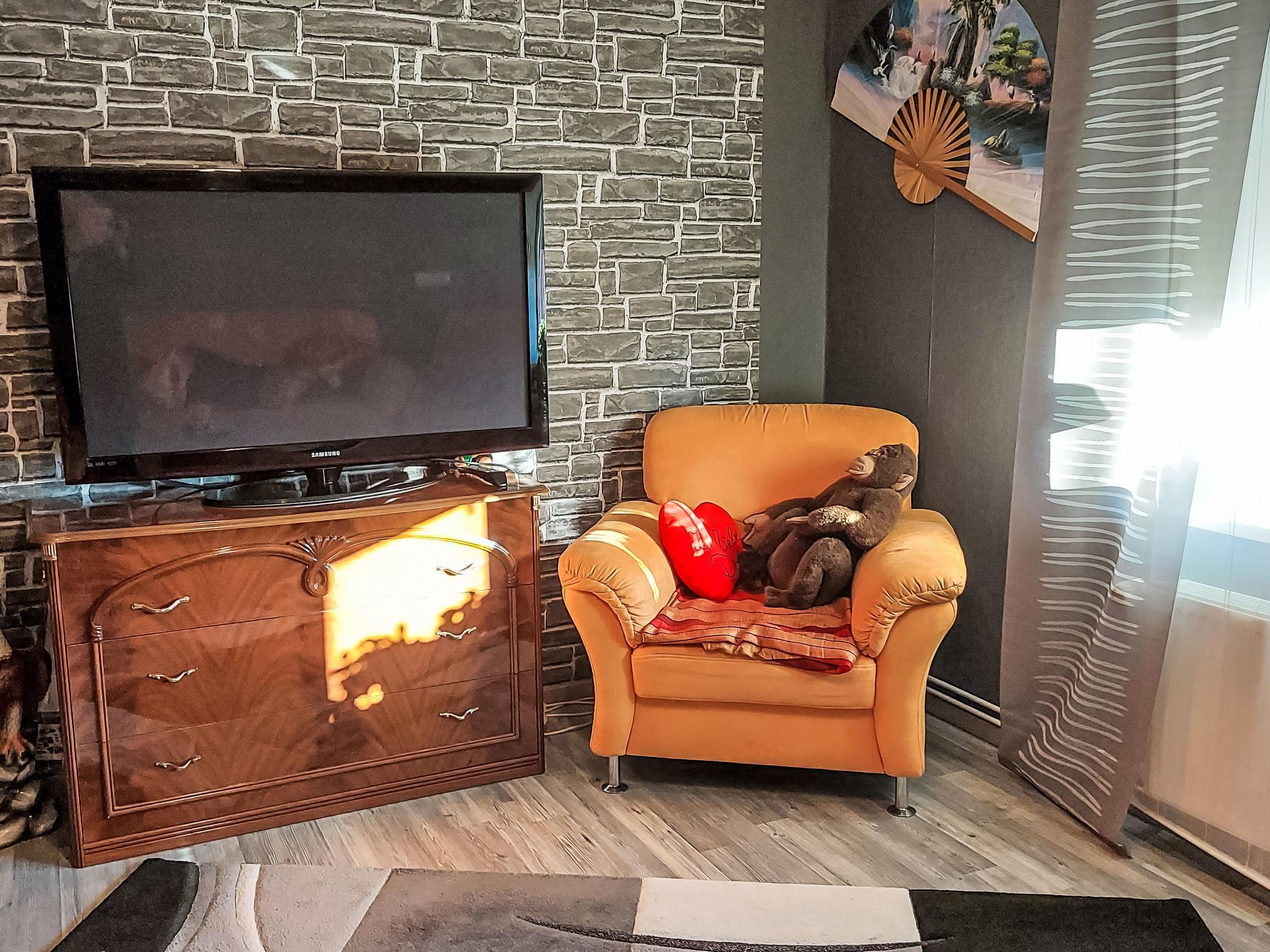 "Ludmilla", 2-room apartment 60 m2, on the upper floor. Cosy furnishings: living/sleeping room with 1 sofabed and digital TV. 1 room with 1 double bed (180 cm, length 200 cm). Kitchen (oven, dishwasher, 4 ceramic glass hob hotplates, toaster, kettle, microwave, freezer, electric coffee machine) with dining table. Shower/WC. Gas heating. Terrace 16 m2. Terrace furniture. Facilities: children's high chair, baby cot. Internet (WiFi, free). Please note: non-smokers only. Smoke alarm, fire extinguisher. Access to the terrace via the staircase.