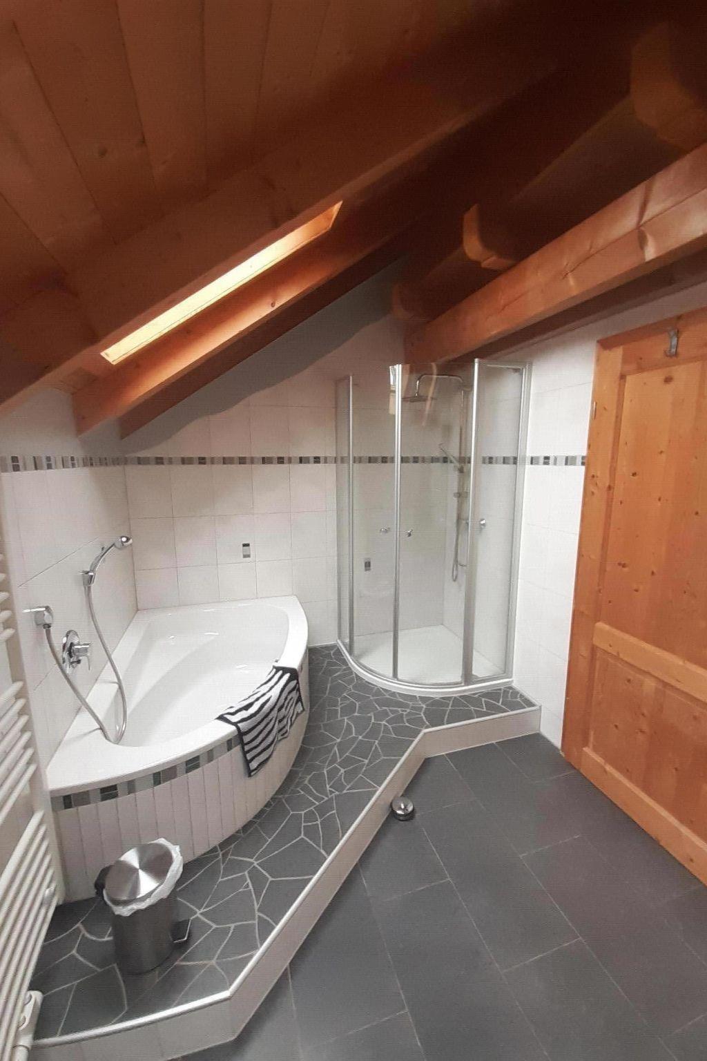The flat is located on the 1st floor of the house and is comfortably furnished on 135 square metres. The open-plan kitchen/living room has a rustic dining area. The open-plan kitchen is equipped with an oven with ceramic hob, fridge with freezer compartment, kettle, coffee machine, toaster, microwave and dishwasher. The kitchen also has a counter with two seats. The bathroom is equipped with a bathtub and a shower, towel radiator, washbasin with mirror and a wall-mounted WC. A separate guest WC is also available. The three bedrooms are accessible via the hallway. The bedrooms are each furnished with a double bed and a further single bed, bedside tables with lamps round off the cosy atmosphere. Wardrobes provide plenty of space for luggage and clothes. The sofa beds from Voglauer in the living room offer three further sleeping options.