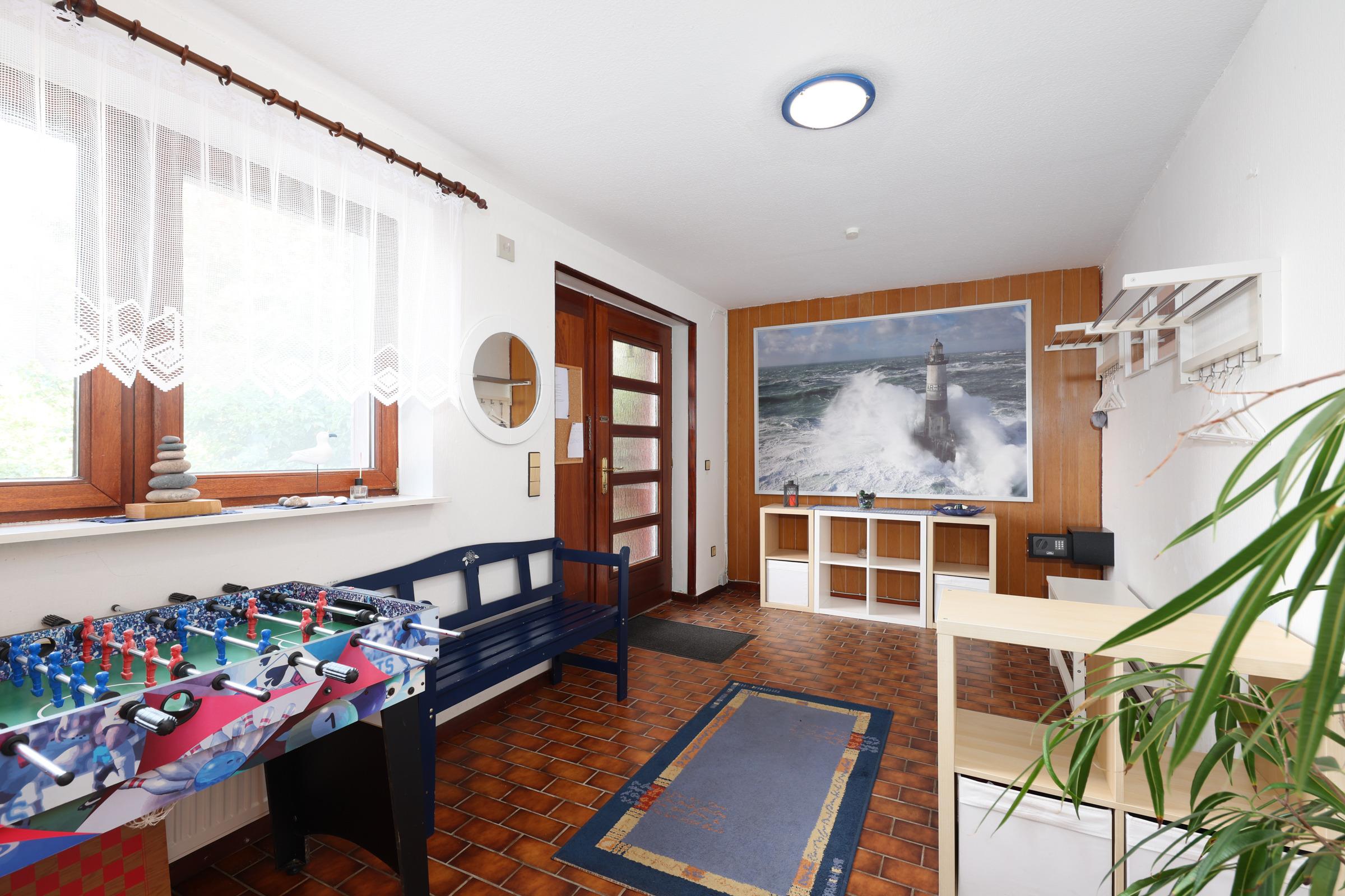 Das großes Haus mit Kamin und großem Garten lädt zu einem unbeschwerten, familienfreundlichen Urlaub ein. Das Grundstück liegt in Feldrandlage und ist durch Zaun und Hecke geschützt. Im naturnahen Garten ist ausreichend Platz zum Toben. Zusätzlich gibt es für die Kinder eine Schaukel, Darts, Tischtennis, Kicker, Gesellschaftsspiele, Trampolin und vieles mehr.