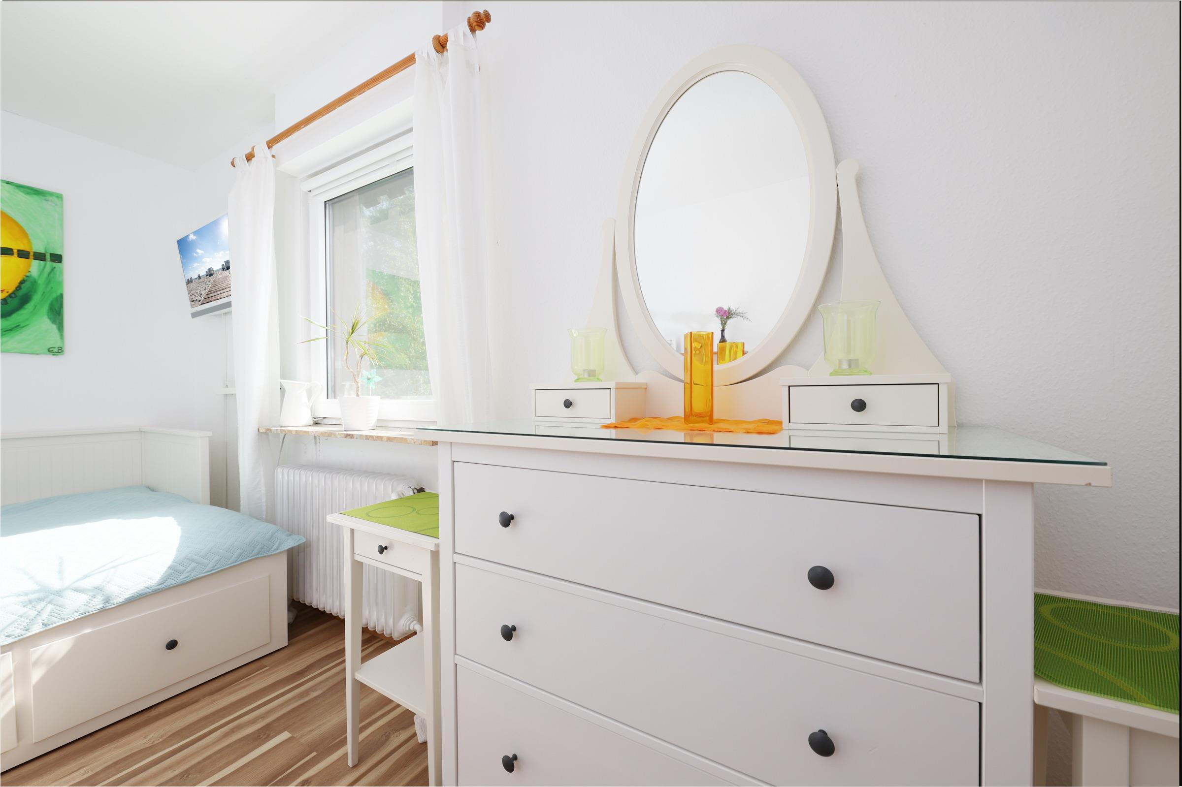Schlafzimmer 3: 1 Doppelbett (je 80x200 cm), Kommode, Verdunkelung: Gardinen, Platz für ein Babybett vorhanden