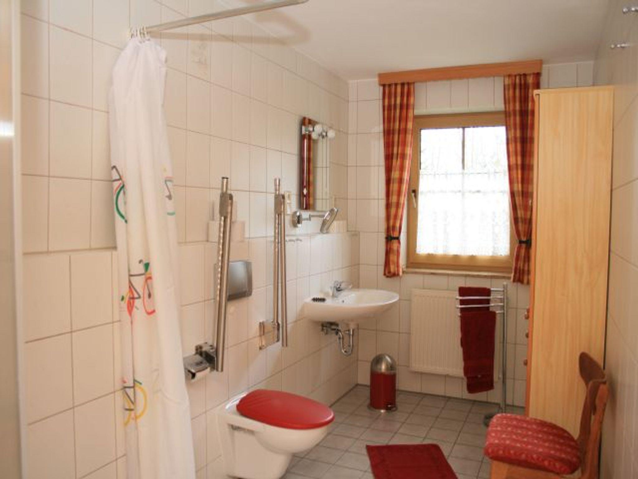 Unsere FeWo Schweinchen ist rollstuhlgeeignet und bietet Ihnen auf 75 qm Platz für 2 bis 4 Personen, ein Bad mit ebenerdiger Dusche und erforderlichen Haltegriffen, zwei Schlafzimmer und eine Wohnküche mit komplett ausgestatteter Küchenzeile und ebenerdigem Zugang über die Terrasse zum Garten. Extra breite Türen.