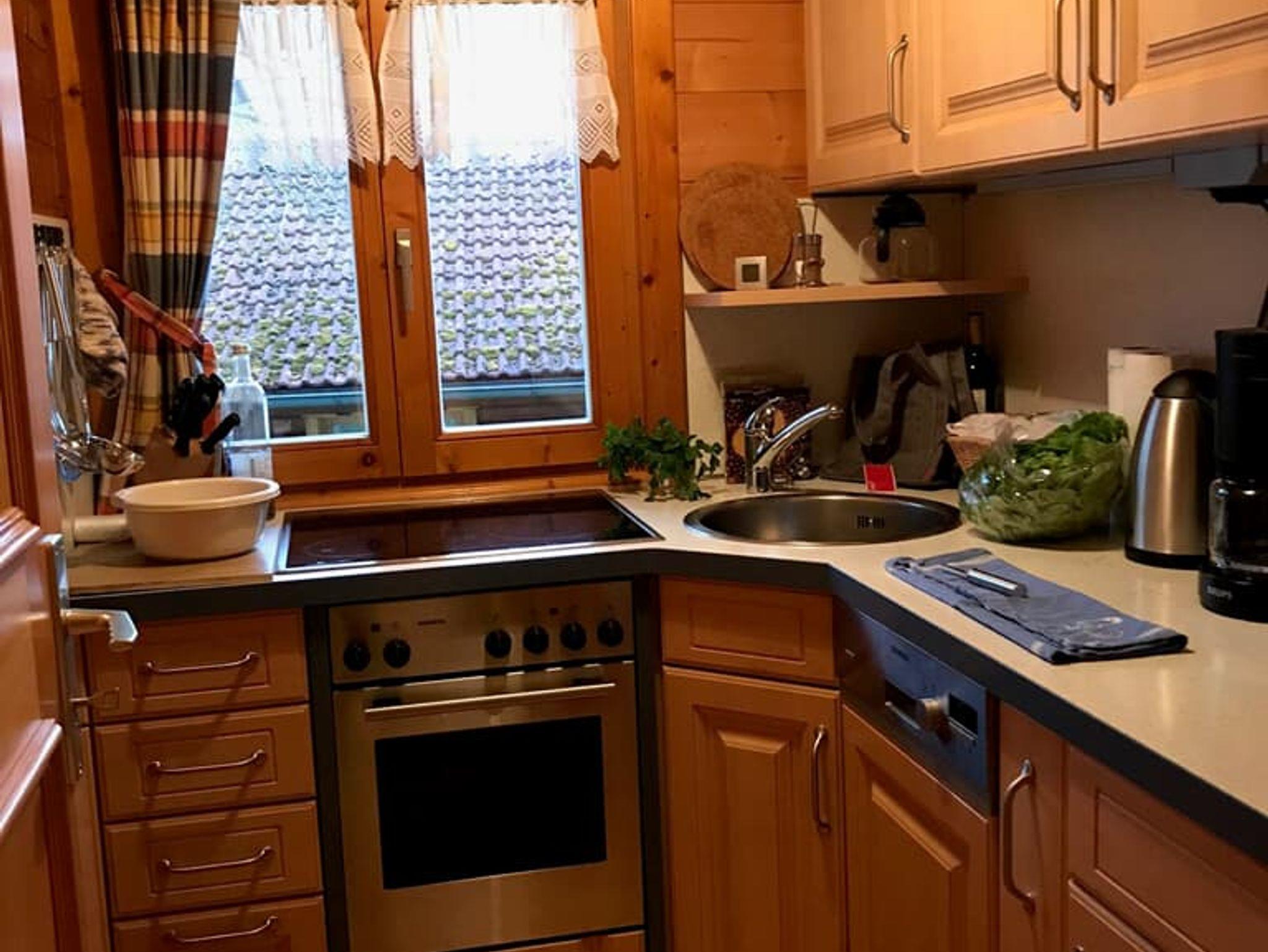 Die Möbel im Haus sind massiv. Zwischen Sitzgruppe und dem Durchgang zu den Schlafzimmern befindet sich ein Raumteiler, der auch als Schrank für Geschirr genutzt wird. Die kleine Küche ist komplett ausgestattet mit 4-Platten-Herd (Ceranfeld) und Backofen, Kühlschrank mit ***-Fach, Geschirrspüler, Mikrowelle, Kaffeemaschine und div. Klein-Elektrogeräten. Geschirr und Bestecke sind für 10 Personen vorhanden und auch Töpfe und Pfannen mit dem nötigen Zubehör werden Sie in unterschiedlichen Größen vorfinden.