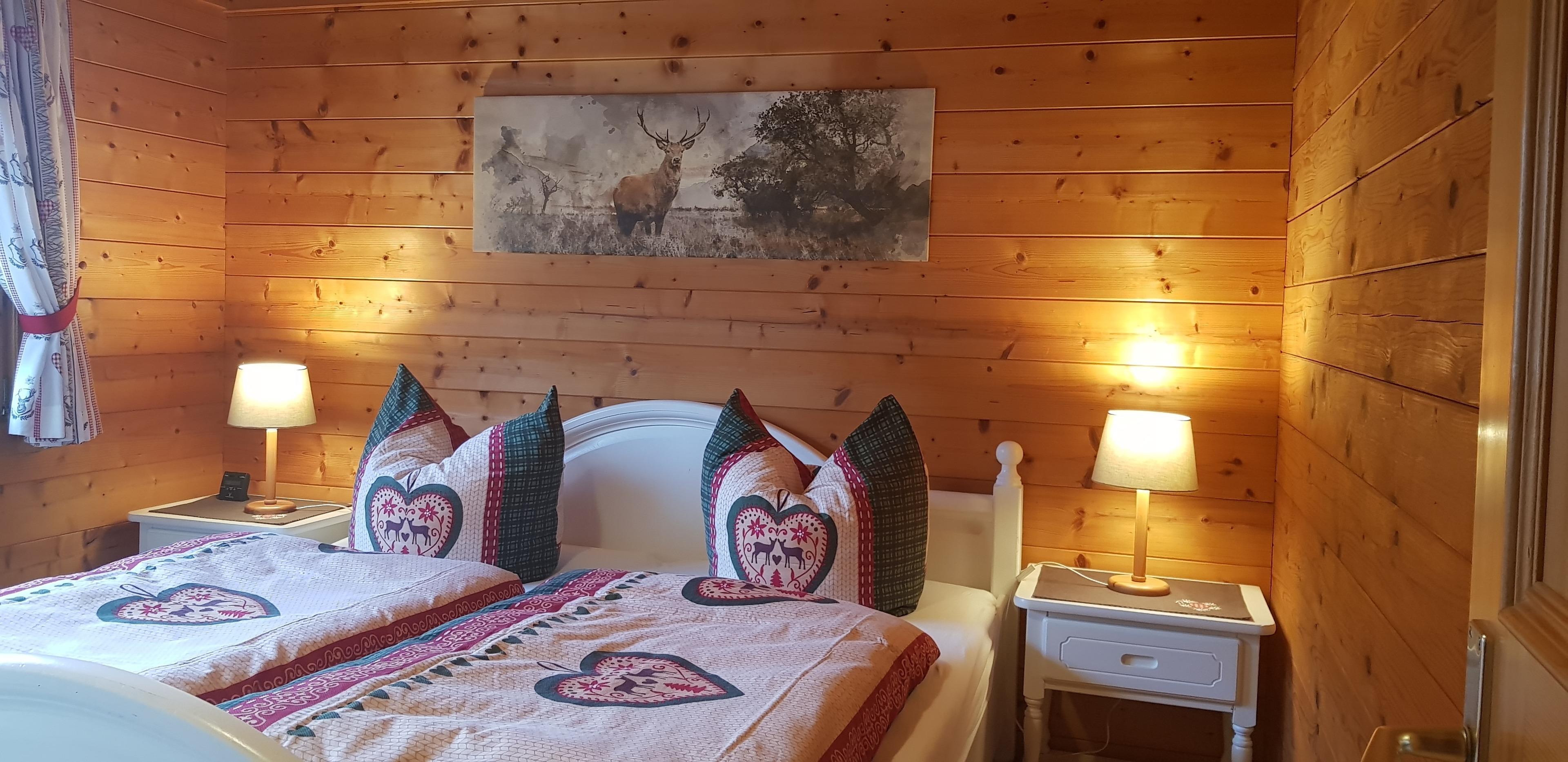 1 Schlafzimmer mit Doppelbett und grossem 3-türigen Kleiderschrank.
