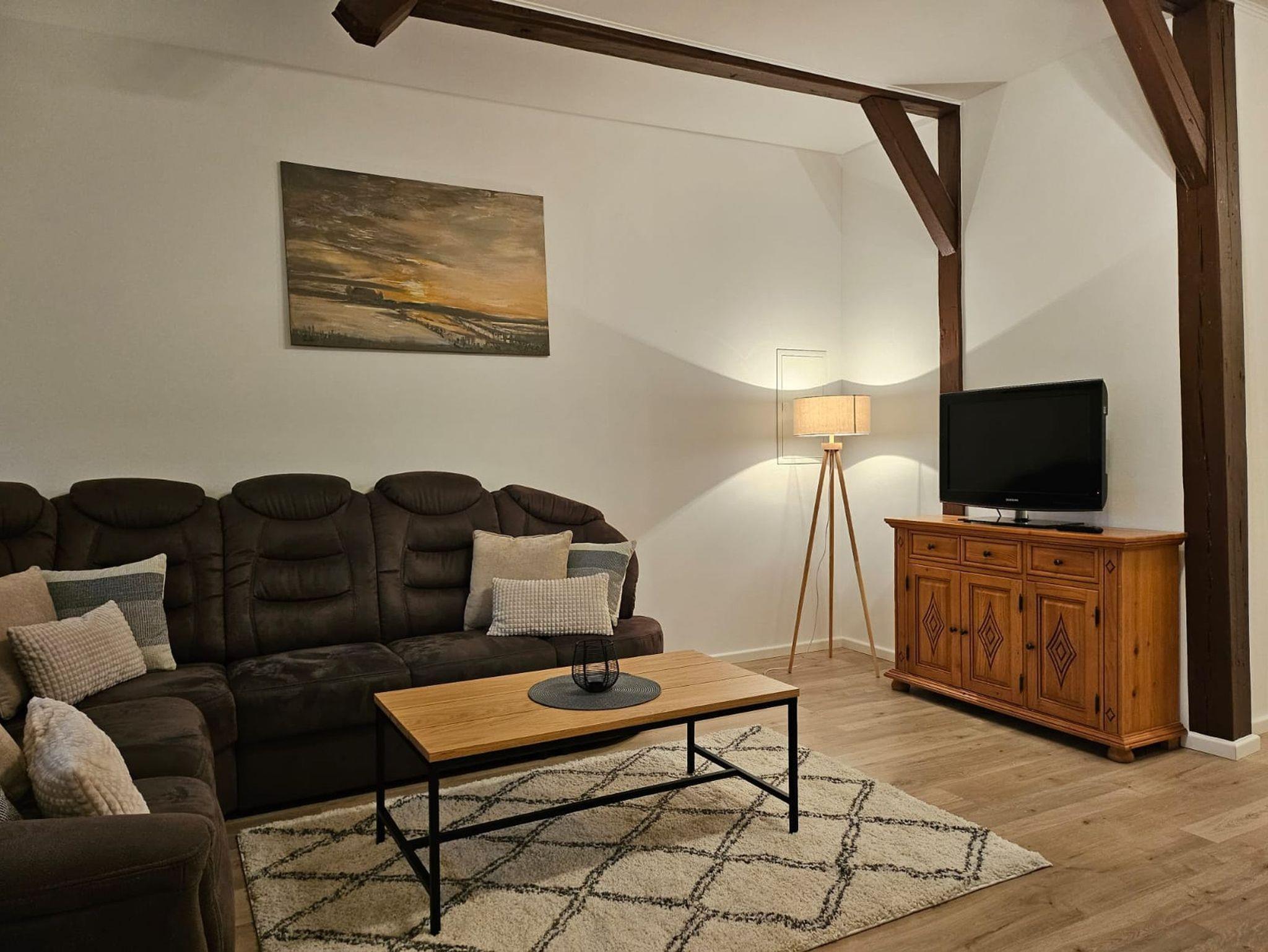 Die Ferienwohnung Mariannenhof für bis zu 4 Personen (plus 1 Kleinkind) befindet sich im Obergeschoss des Herrenhauses und ist über eine Außentreppe und die Dachterrasse erreichbar. Die Wohnung hat ein sehr behagliches Ambiente und bietet einen schönen Ausblick auf die Landschaft.
