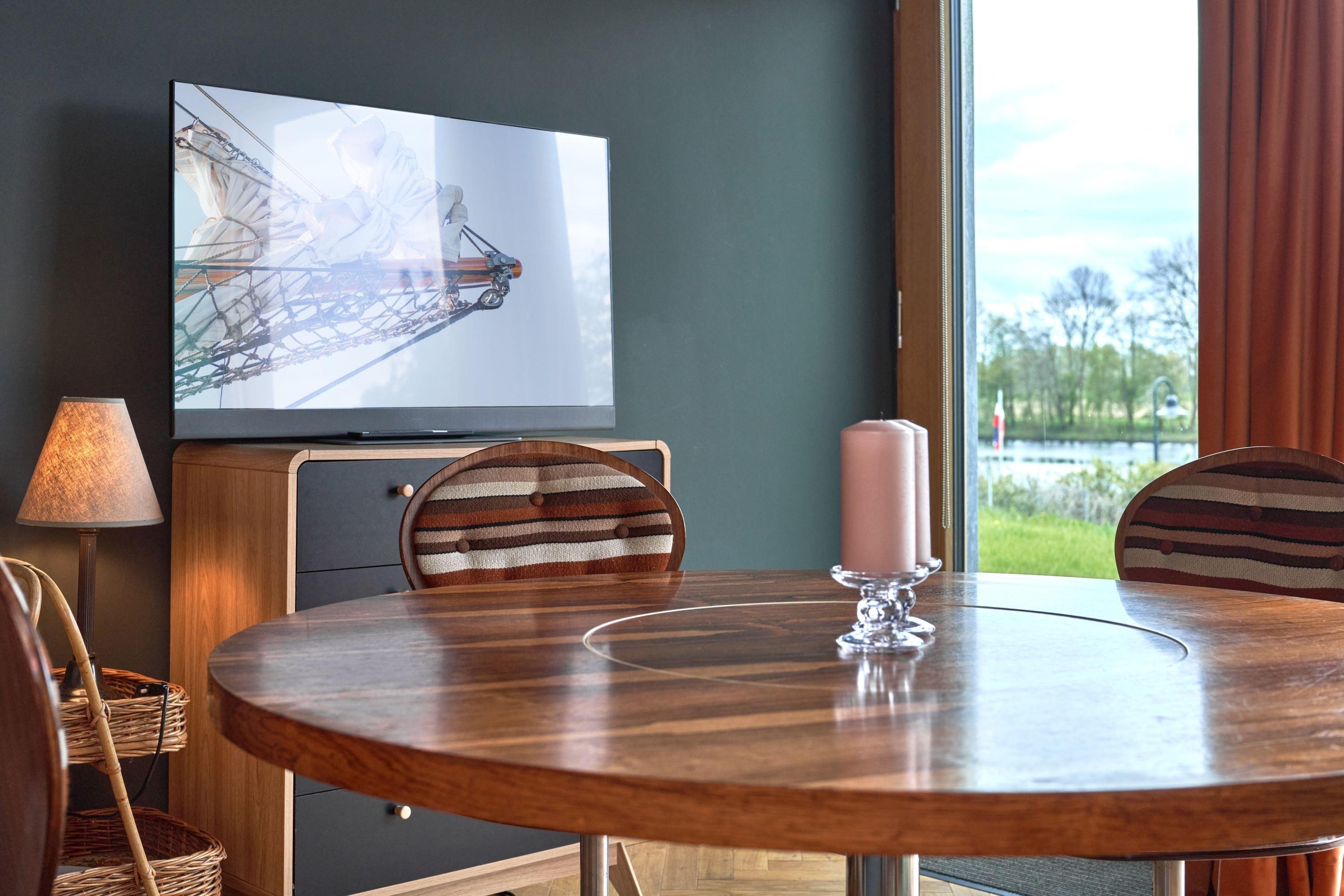 Sie ein komfortables Doppelbett – und das besondere Gefühl, morgens mit dem Blick auf die Eider aufzuwachen. Ein Moment, der bleibt.