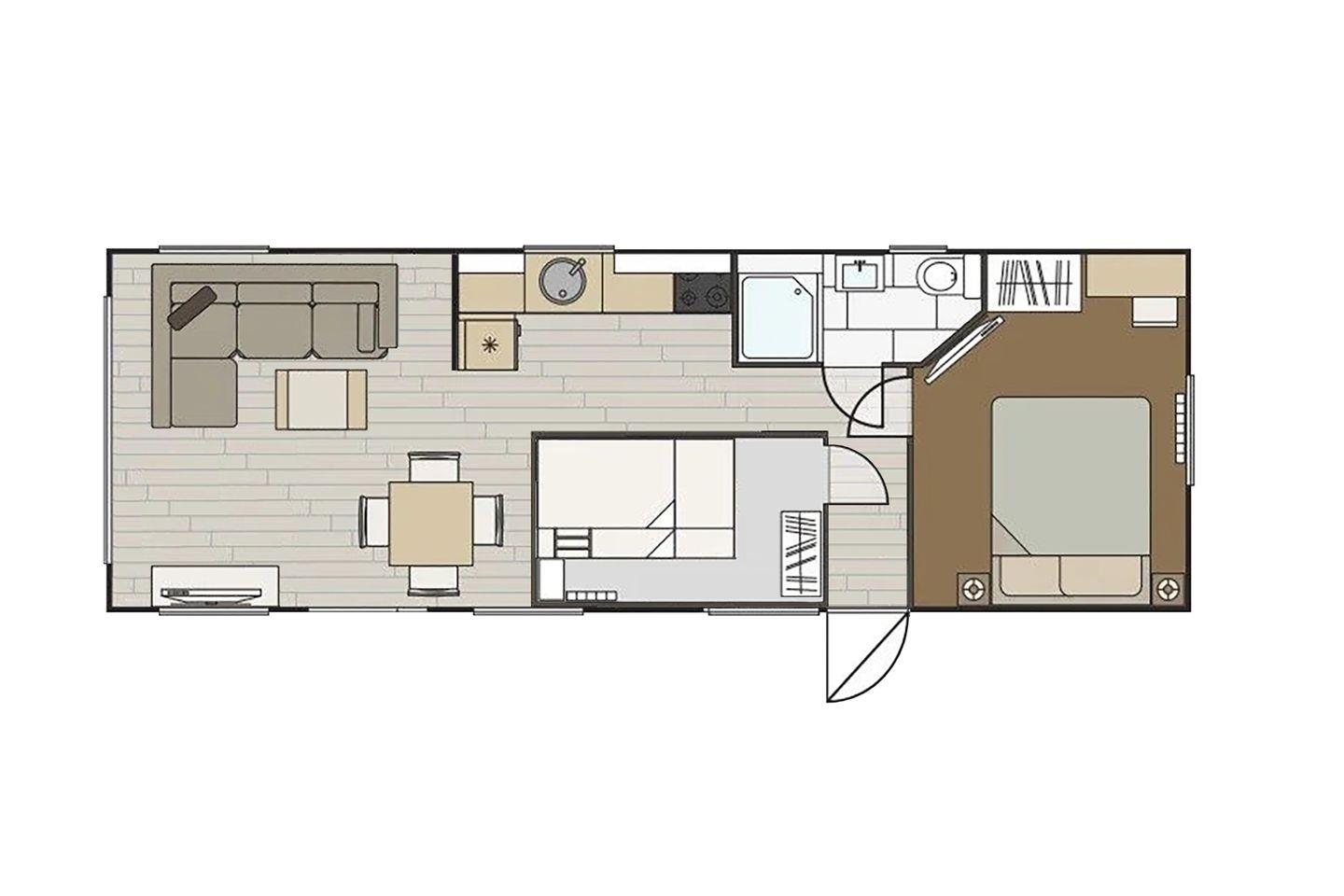 Willkommen im Eiderufer 3, deinem gemütlichen Mini-Ferienhaus im Ferienpark Süderstapel – ideal für eine erholsame Auszeit inmitten der Natur! Auf ca. 40 m² erwartet dich ein liebevoll gestalteter Wohlfühlort für bis zu 4 Personen. Das Ferienhaus verfügt über ein Schlafzimmer mit einem komfortablen Doppelbett (130 x 200 cm) sowie ein weiteres Schlafzimmer mit zwei Einzelbetten (65 x 200 cm). Die gut ausgestattete Küche mit Backofen und Geschirrspüler sorgt für extra Komfort, sodass du mühelos leckere Mahlzeiten zubereiten kannst. Genieße dein Frühstück oder entspannte Abende auf der privaten Terrasse mit bequemen Gartenmöbeln. Die direkt angrenzende Marina bietet zahlreiche Möglichkeiten für Wassersport und Bootsausflüge, während eine nahegelegene Badestelle an warmen Tagen für Erfrischung sorgt. Bitte beachte: Im Eiderufer 3 sind Haustiere nicht erlaubt. Wenn du mit Hund reisen möchtest, stehen dir unsere haustierfreundlichen Unterkünfte Eiderufer 1 und Eiderufer 2 zur Verfügung. Erkunde malerische Landschaften, charmante Städte und vielseitige Freizeitangebote und lass dich von der idyllischen Atmosphäre verzaubern. Buche jetzt deinen Aufenthalt im Eiderufer 3 und genieße unvergessliche Tage an der Eider!