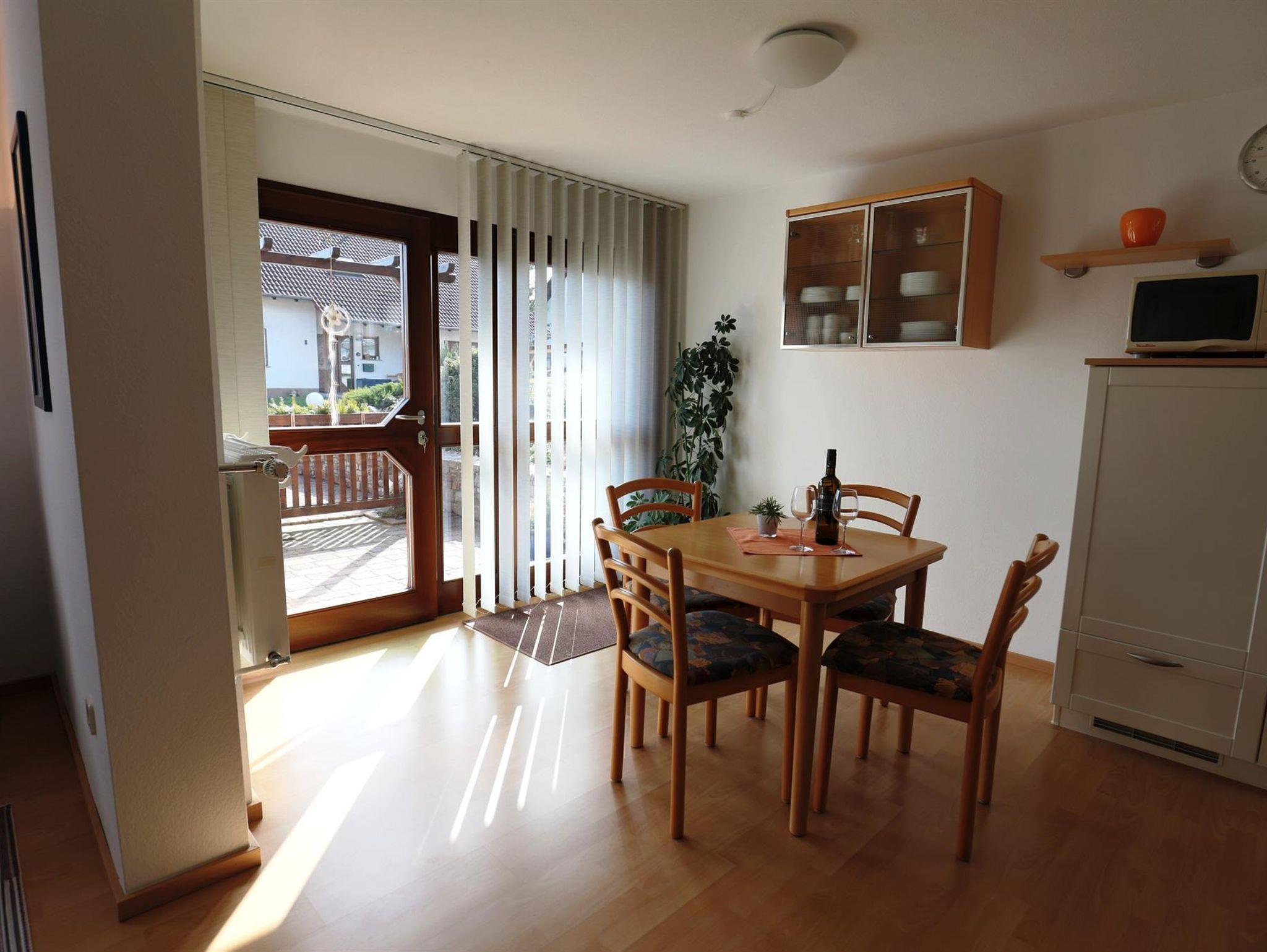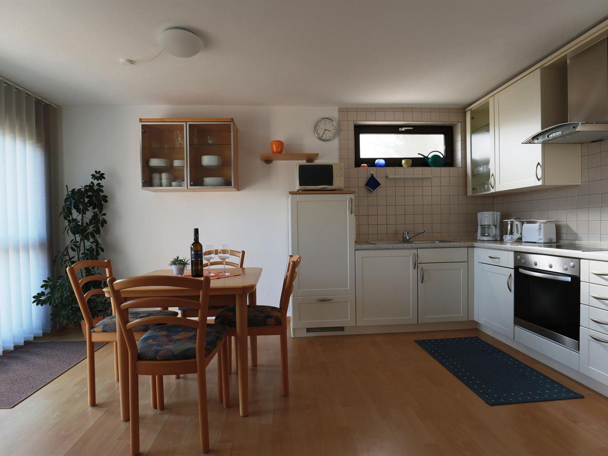 Die im Parterre unseres Hauses gelegene geräumige und moderne Ferienwohnung mit separatem Eingang bietet Ihnen sowohl Ruhe als auch Bequemlichkeit. Die Wohnung ist hell und geschmackvoll eingerichtet, verfügt über einen Wohn-/ Essraum mit moderner Einbauküche, ein Schlafzimmer mit Doppelbett und eine Dusche mit WC. Eine Schlafcouch im Wohnzimmer bietet zwei zusätzliche Schlafmöglichkeiten.