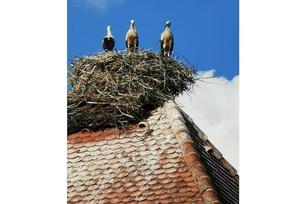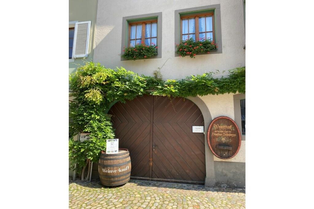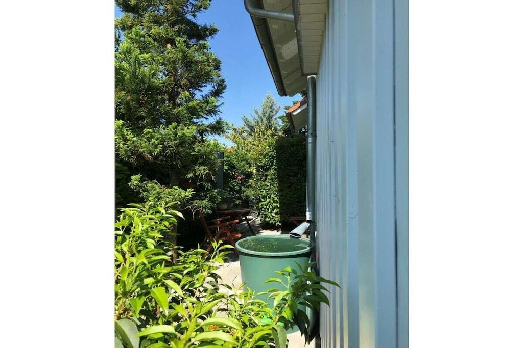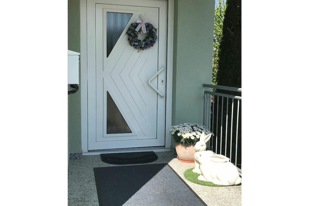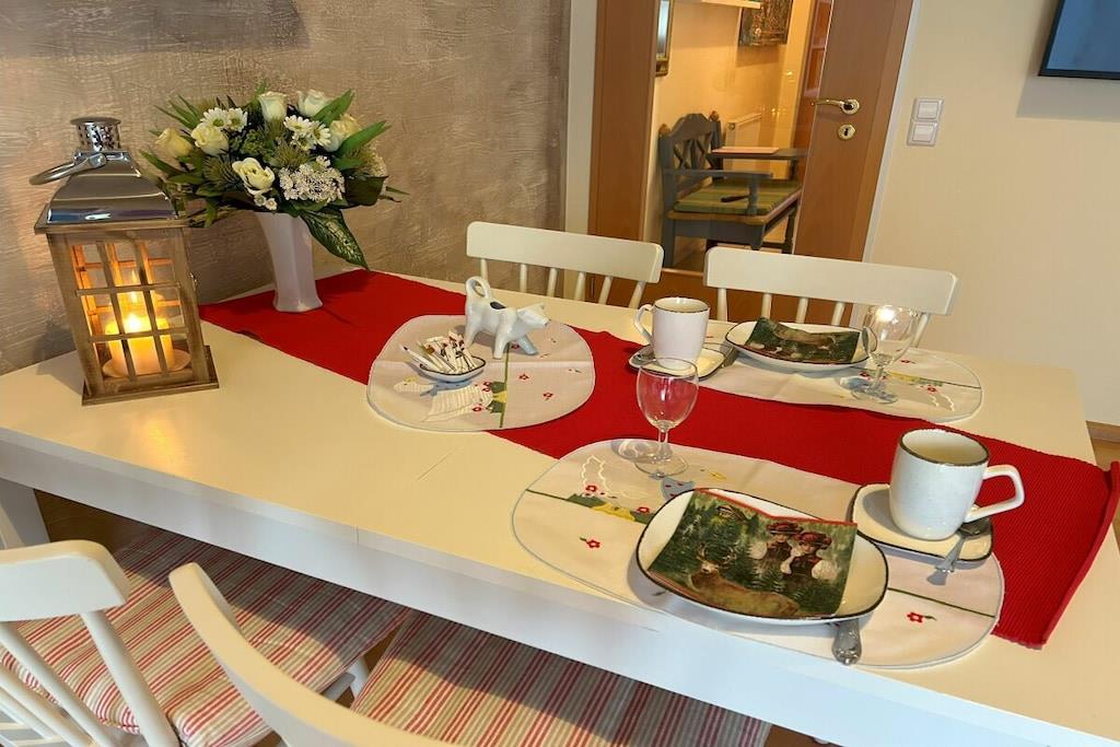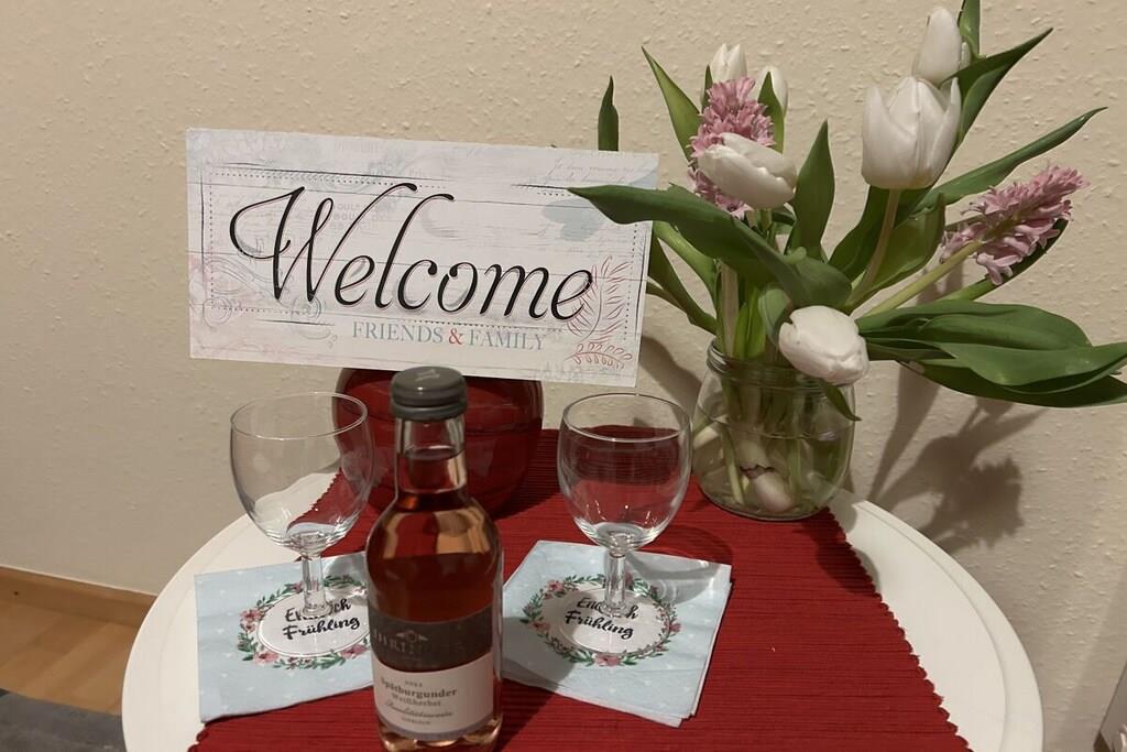 A small, comfortably furnished holiday apartment invites you to be our guest. The fitted kitchen, a shower room with toilet and mirrored cabinet, the living room with dining corner, 2 sofa beds opposite each other and an adjoining small terrace can be found on the ground floor. A wooden staircase leads you from the bright living room, furnished in Scandinavian style, to the 1st floor and to the gallery, which gives you a clear view of the lower living room. From here you reach the spacious bedroom, with a double bed, wardrobe and desk, where you can work, read or retreat in peace if you wish. The car can be parked on the street. We offer a lockable shed for your bicycles.