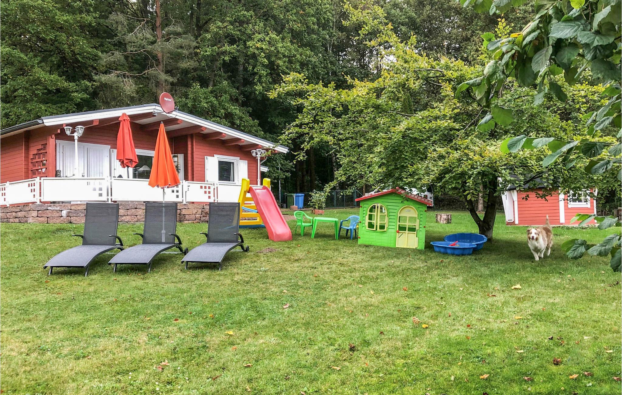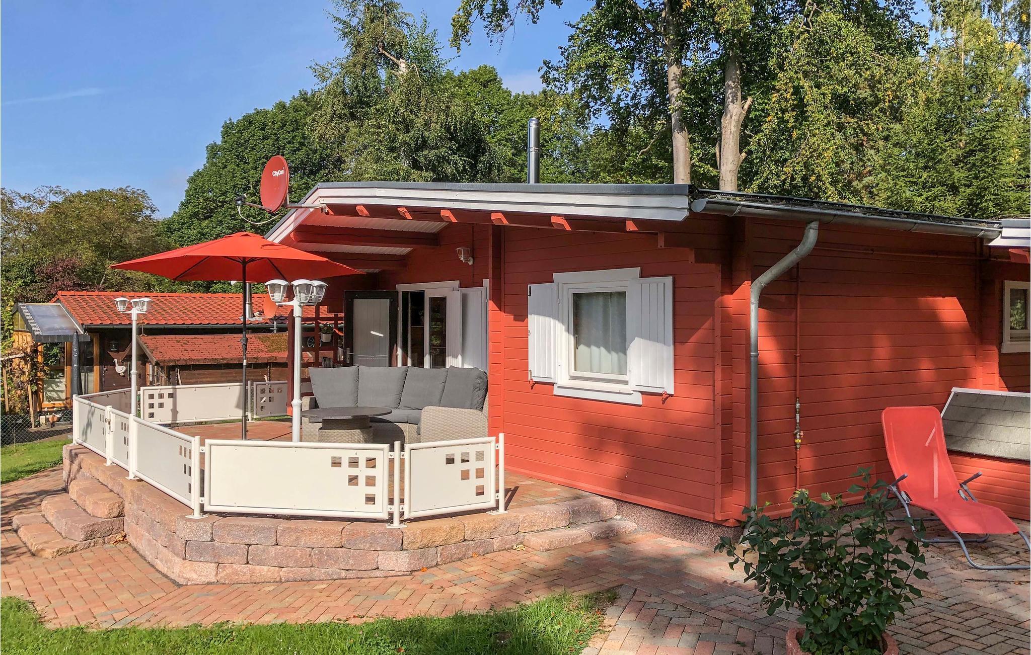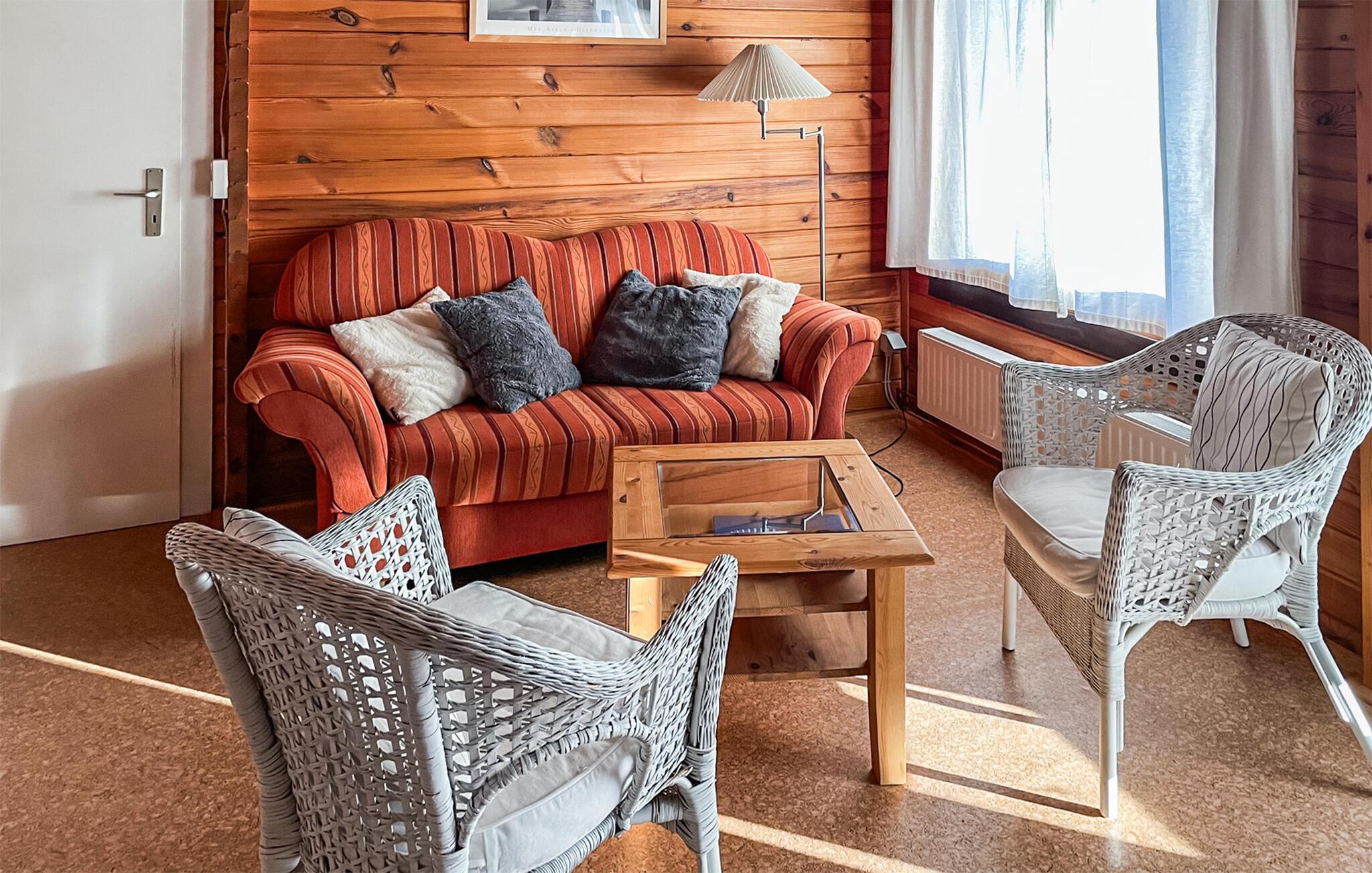 Kærligheden til Sverige var det, der inspirerede de venlige husejere til at skabe en oase af ro og afslapning. Det smagfulde og komfortabelt indrettede sommerhus, der grænser op til en skov, imponerer med sit typiske mørkerøde farveskema og øje for detaljer. Den hyggelige stue integrerer et køkken med keramisk kogeplade, hvorfra du har direkte adgang til terrassen, hvor havemøbler og liggestole i høj kvalitet er tilgængelige.