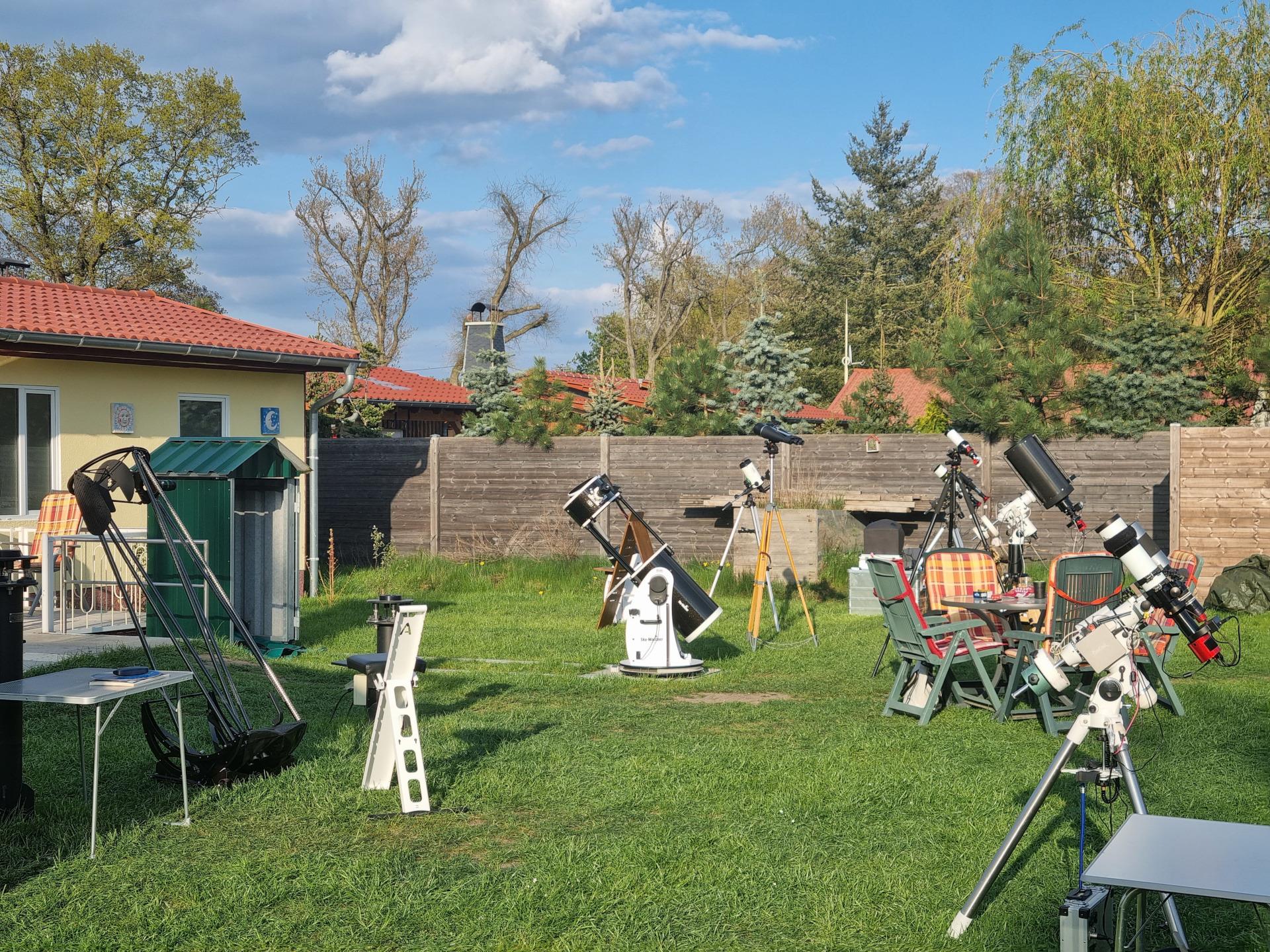 Hinter dem Haus befindet sich eine kleine Sternwarte mit Teleskopen zum Beobachten von Sternen, Planeten, Galaxien und vieles mehr. Detlef Zemlin bietet Sternenführungen bei klarem Himmel an.