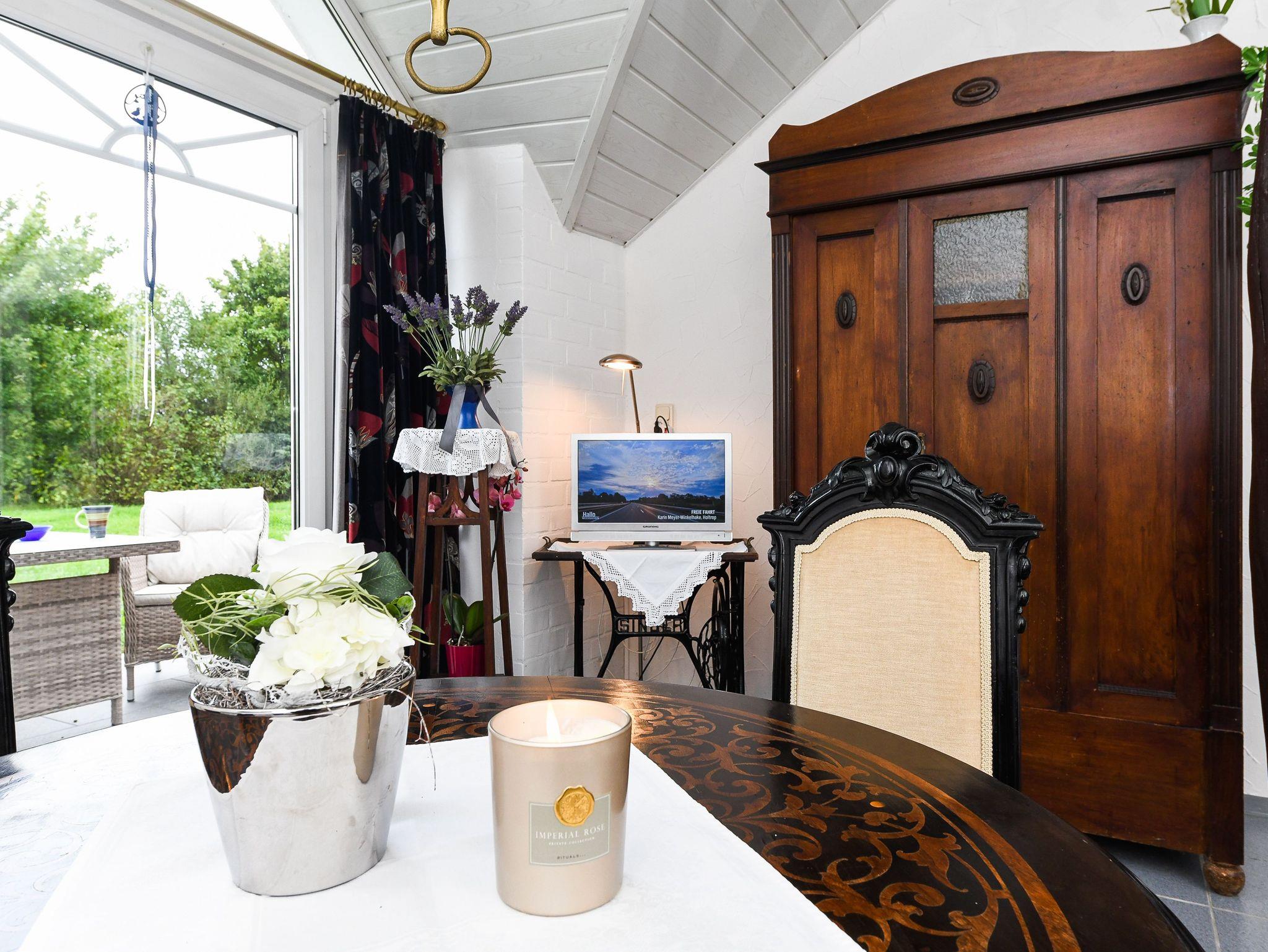 Im Herbst und Winter machen Sie es sich vor dem Kaminofen gemütlich. Die geschmackvolle, ostfriesisch-ländliche Einrichtung und Bilder hiesiger Künstler machen den besonderen Charme des Ferienhaus perfekt.