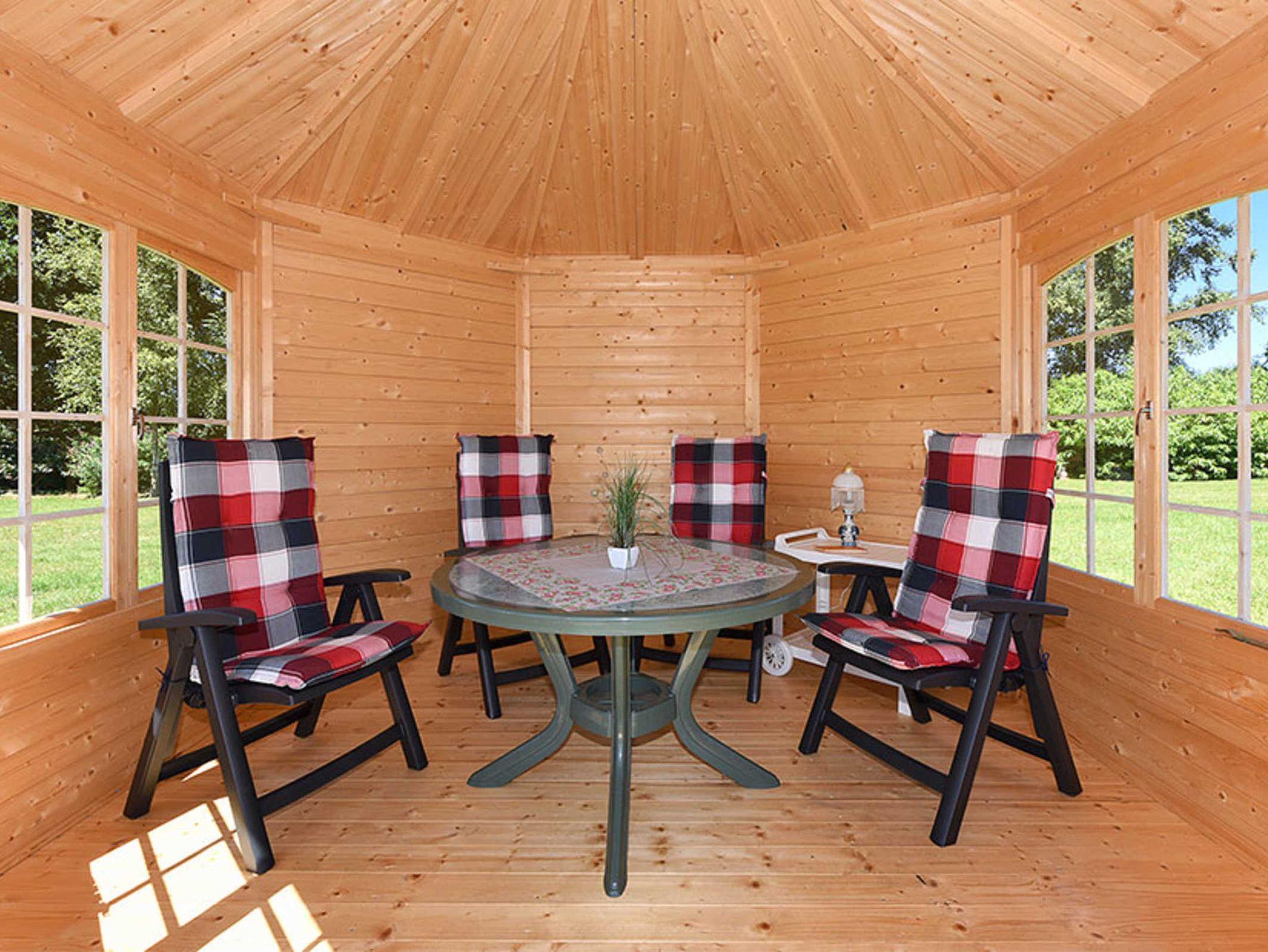 Größe ca. 75 Quadratmeter, Wohnraum mit integrierter Küche und Essgruppe, Schlafzimmer, zweites separates Schlafzimmer, Badezimmer mit Dusche, Waschtisch und WC, Erdgeschoss, Gartenpavillion (möbliert), Sitzgruppe im Garten, Strandkorb, Parkplatz (eigene Parkplätze direkt am Haus), optimal für 2 bis 4 Personen.