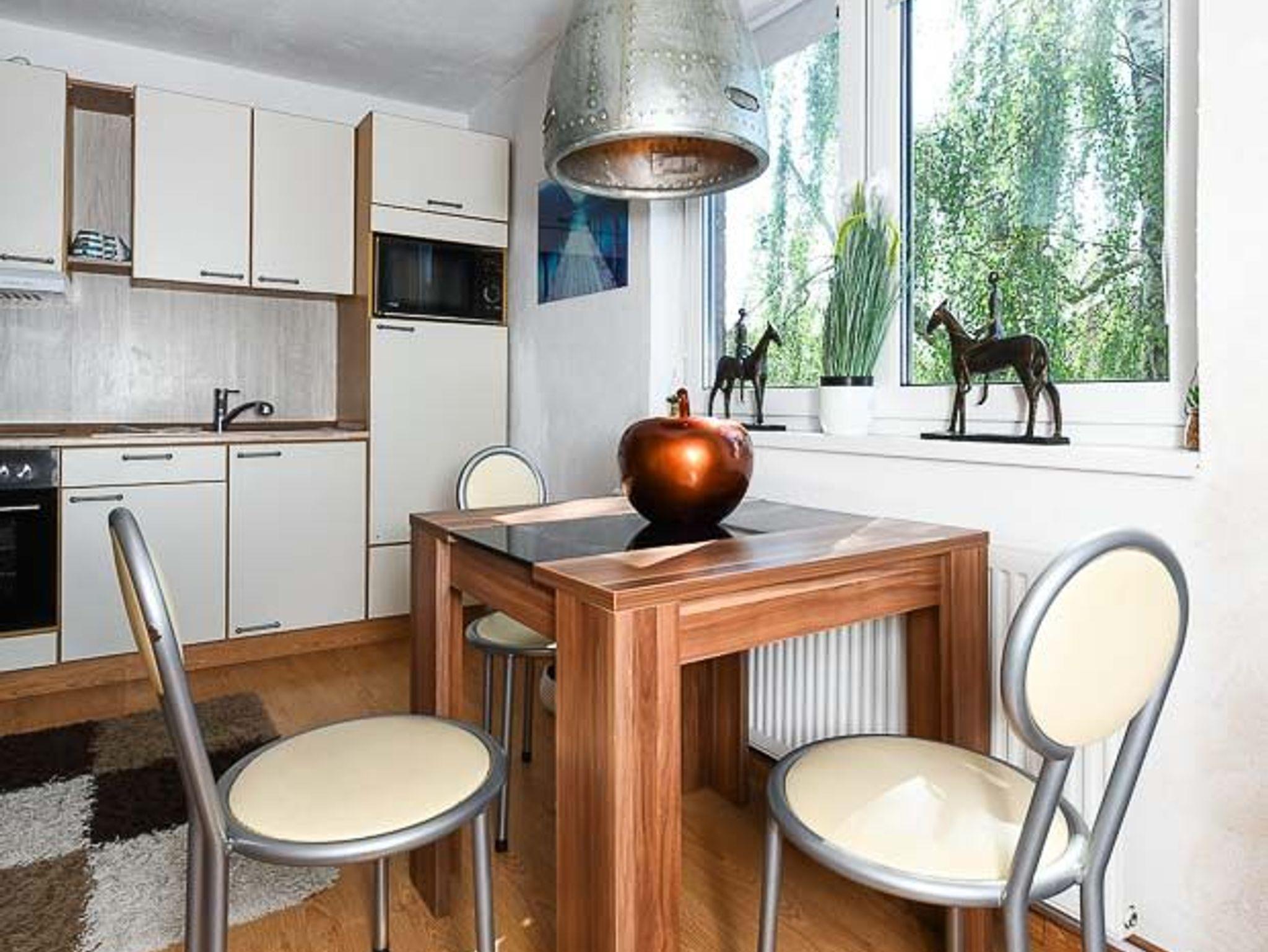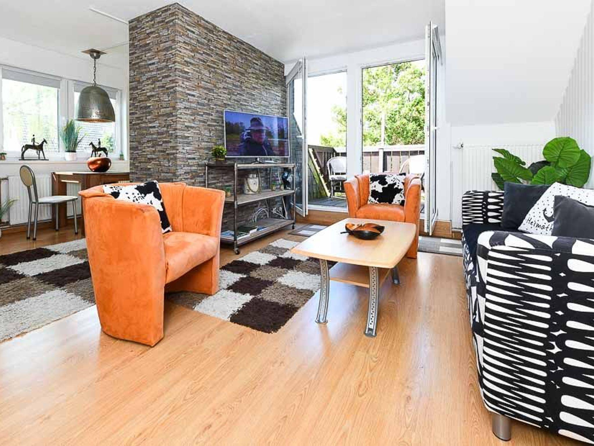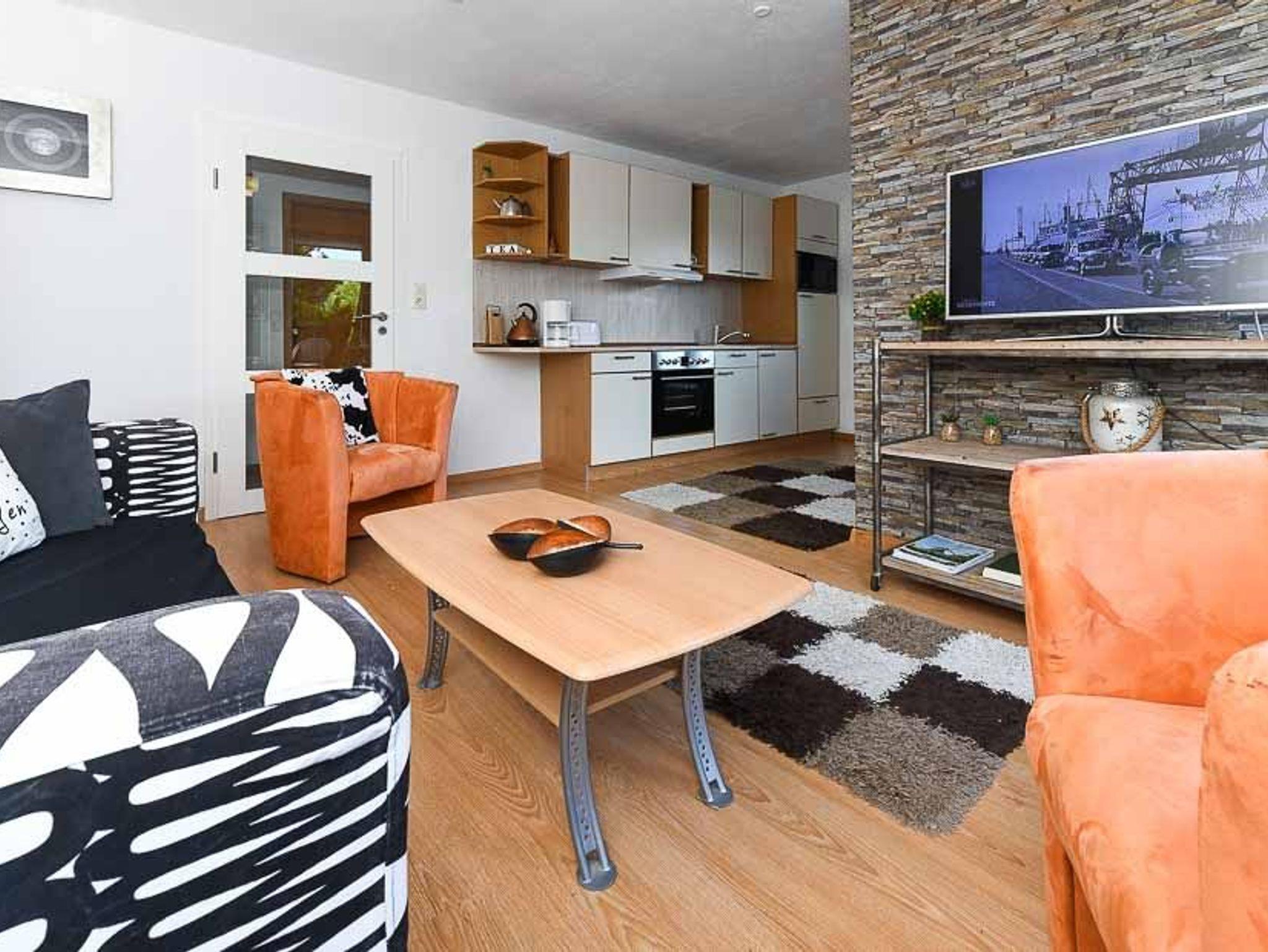 Größe ca. 40 Quadratmeter, Wohnzimmer mit integrierter Küche, Schlafzimmer, Badezimmer mit Dusche, Waschtisch und WC, Obergeschoss, Balkon, optimal für 1 bis 2 Personen und zusätzlich ein Kleinkind.