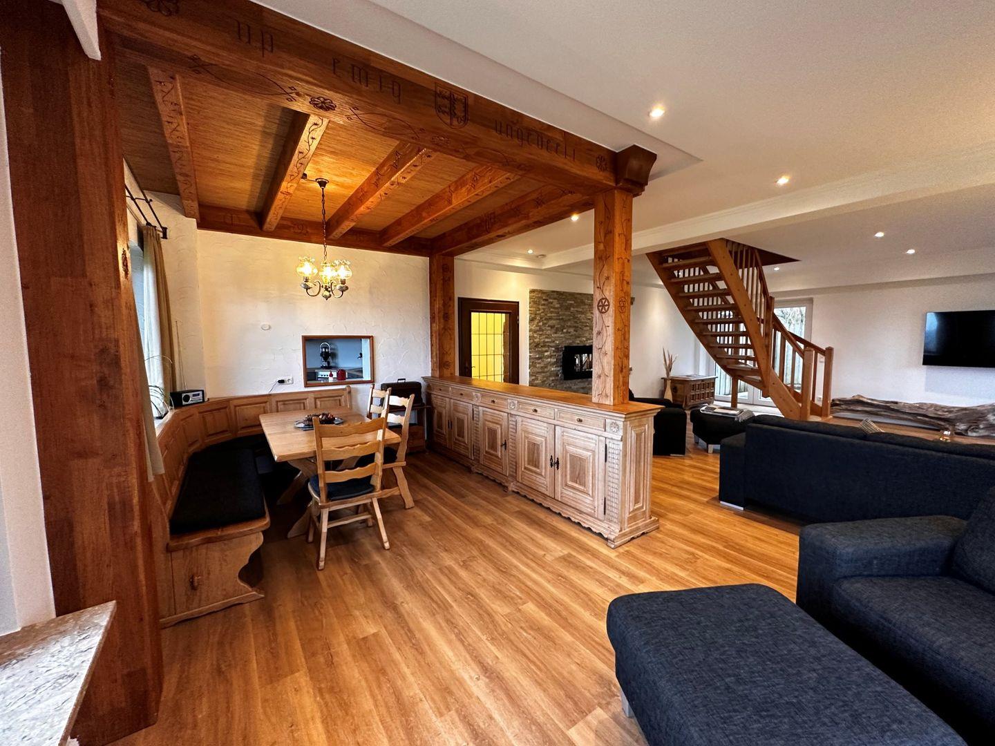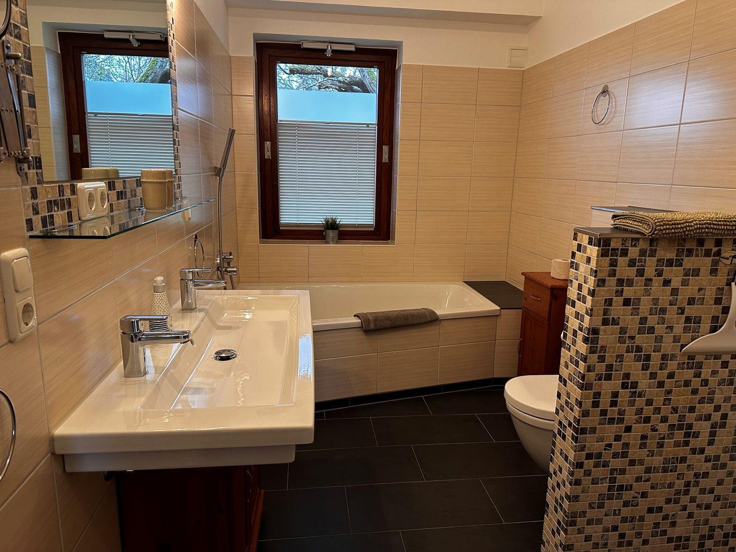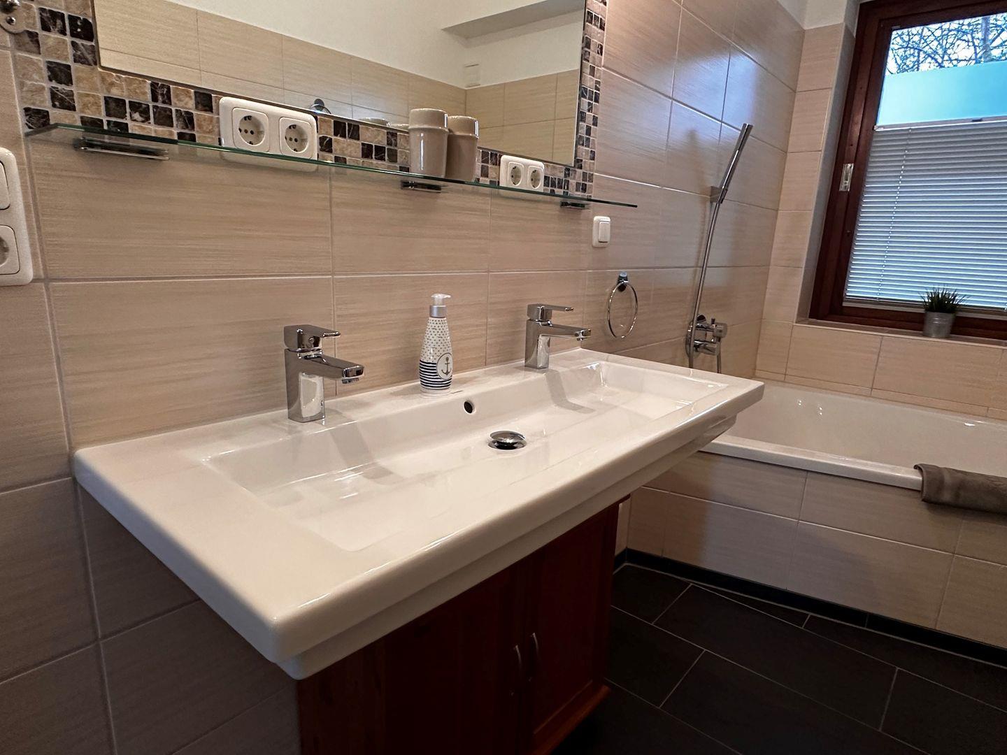 Die Ferienhaushälfte Habel erstreckt sich über 3 Etagen. Im EG befindet sich der Wohn- und Essraum mit Küche, sowie ein Schlafzimmer mit Doppelbett. Auch ein Tageslichtbadezimmer mit Badewanne , bodengleiche Regendusche, Doppelwaschtisch und Fußbodenheizung darf nicht fehlen. Zwei weitere Schlafzimmer mit Doppelbett bzw. 2 Einzelbetten erreicht man in den beiden Obergeschossen. Selbstverständlich gibt es auch ein Duschbad mit WC in den Obergeschossen.